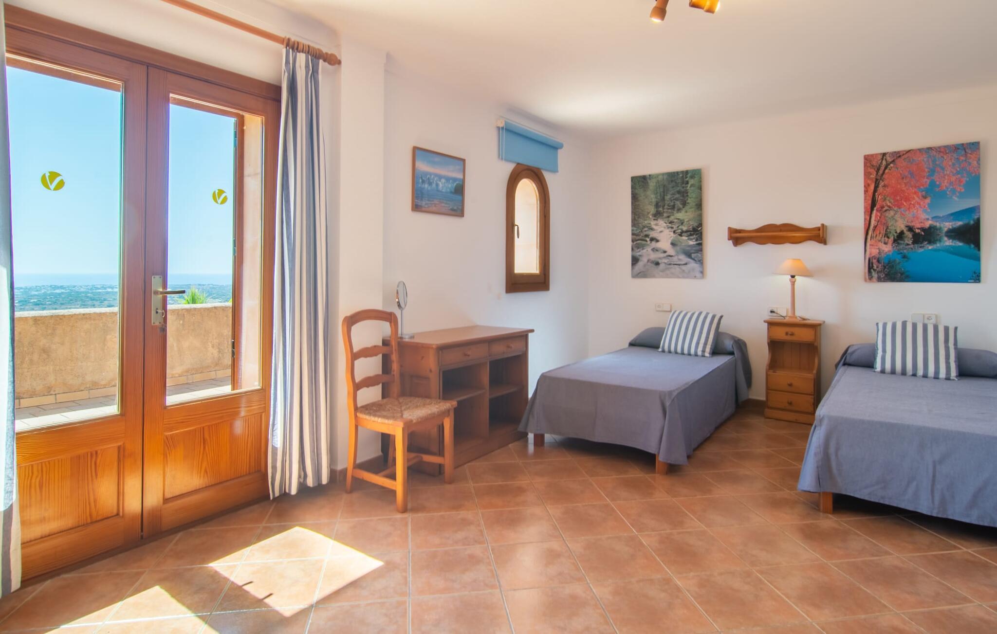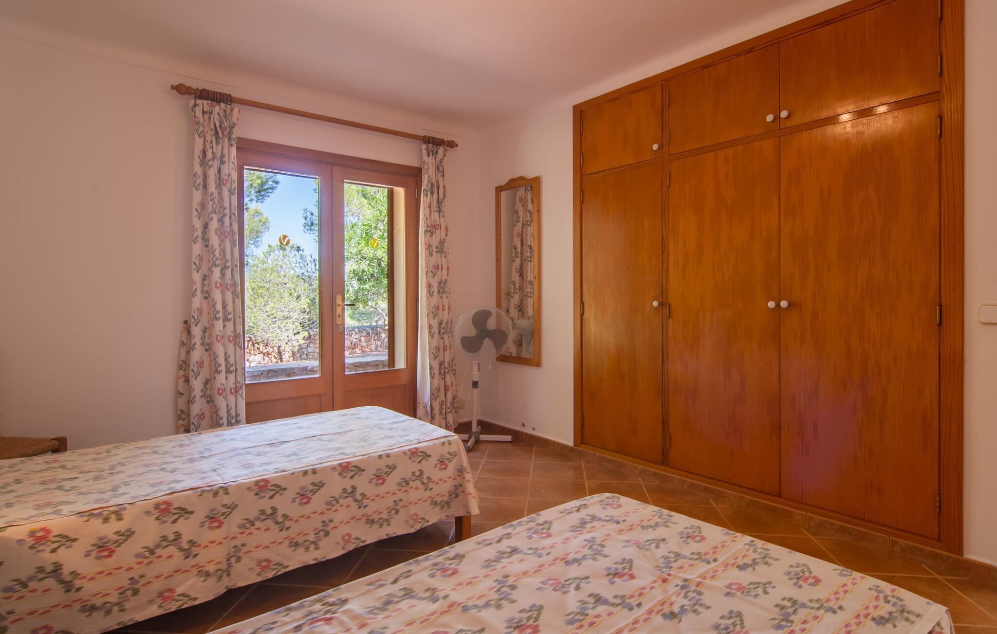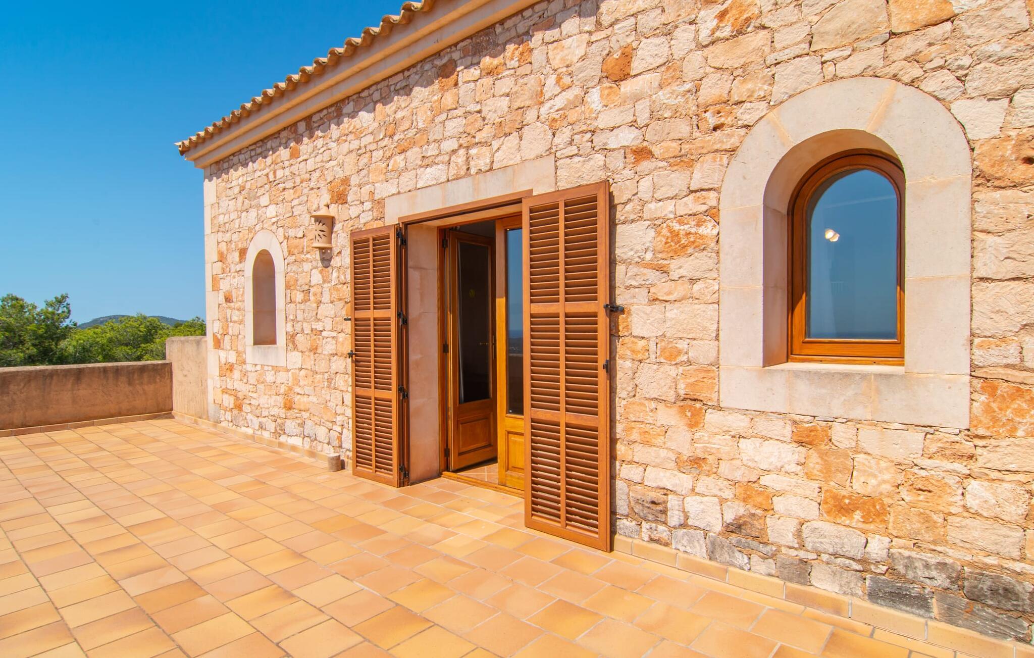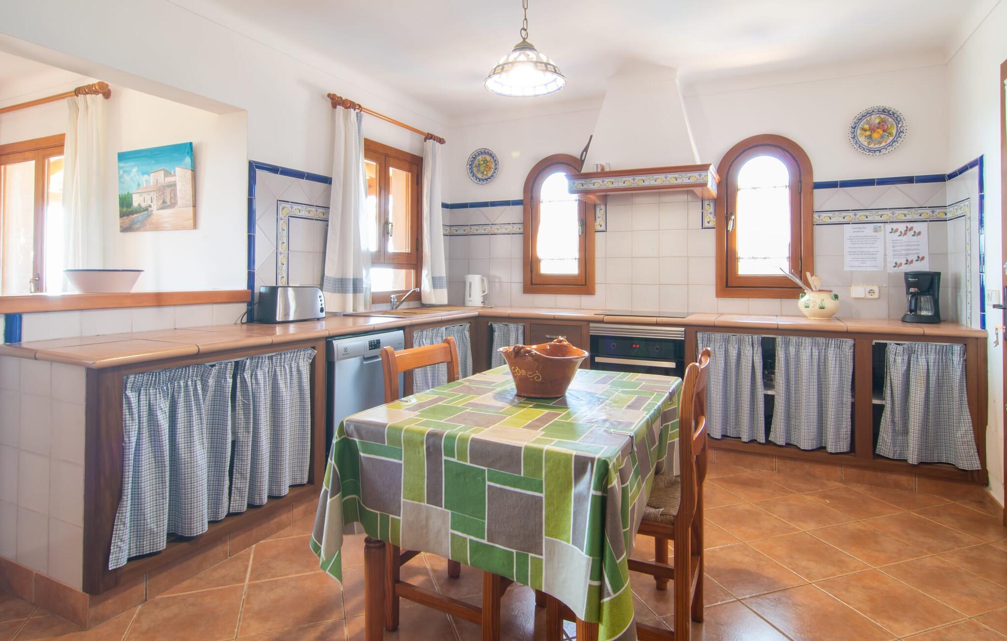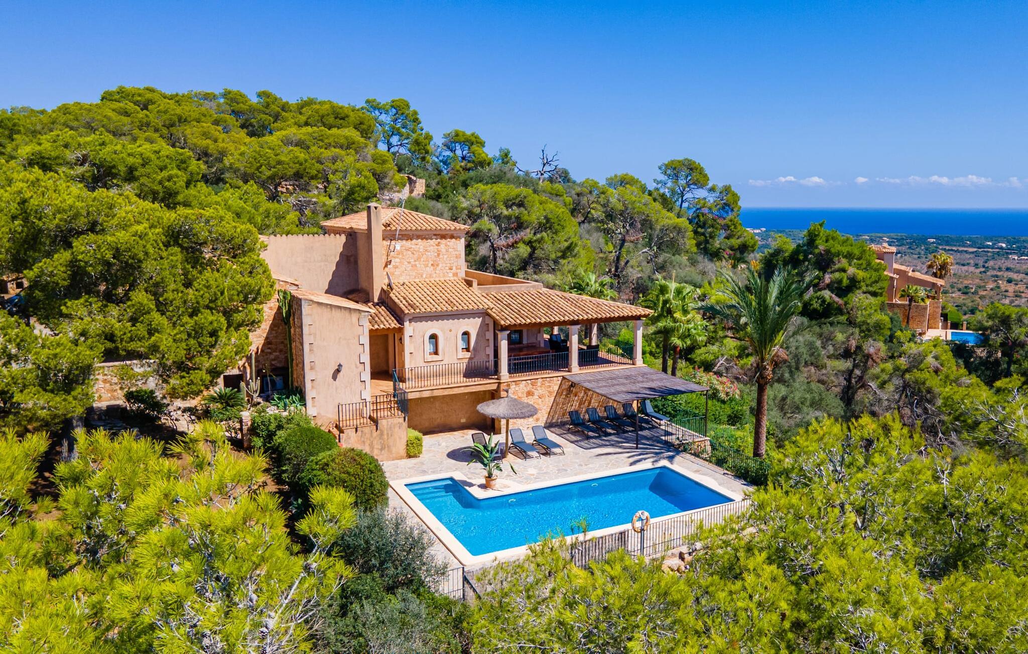 Beliggende i et bjerglandskab dekoreret med fyrreskove og tæt på havet, tilbyder fincaen "Es Puig s'Horta" et roligt tilflugtssted. Dette traditionelle feriehus i stenbrud legemliggør den autentiske mallorcanske livsstil, beliggende i en region uberørt af masseturisme med rig flora og betagende badebugter. Beliggenheden på bjergsiden byder på en rummelig swimmingpool og en rummelig solterrasse, der inviterer jer til at slappe af. Verandaen er udstyret med komfortable lounge siddepladser og et rustikt spisebord og er ideel til grillmad under stjernerne, suppleret med smuk havudsigt. Indenfor imponerer feriehuset med sin harmoniske indretning med mokkafarvede gulvfliser og træmøbler af høj kvalitet. Opholdsområdet har en dekorativ pejs, mens spisepladsen støder op til et køkken, der kombinerer moderne komfort med traditionel mallorcinsk charme. Fincaen kan rumme op til otte gæster og har fire soveværelser, hvoraf det ene har eget badeværelse. Hvert badeværelse afspejler komfort og typisk mallorcansk design, hvilket gør "Es Puig s'Horta" perfekt til familier eller venner, der ønsker at tilbringe en uforglemmelig ferie på Mallorca. Den velholdte finca rustica "Es Puig S'horta" ligger nær S'Horta på den sydlige del af øen, tæt på bjergene og kysten. Portocolom med sit livlige ugentlige marked er ikke langt væk. Gør jeres indkøb i S'Horta eller oplev de smukke sandstrande i Cala Sa Nau eller Cala D'Or, mindre end 10 minutters kørsel væk. Aircondition i ejendommen er inkluderet i prisen, men dets brug er begrænset til kl. 22.00 til kl.