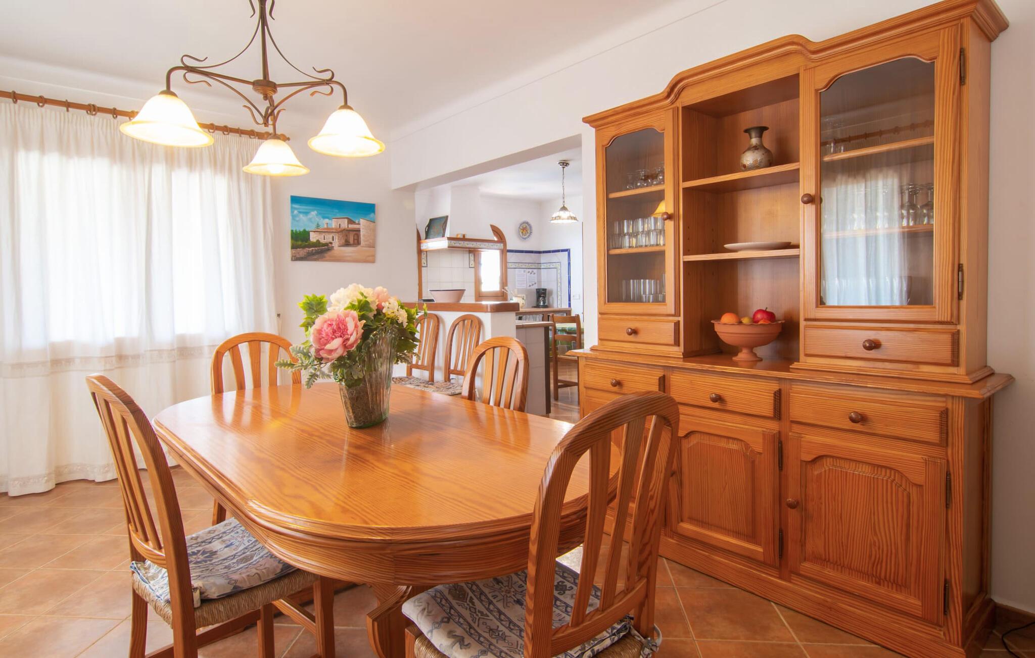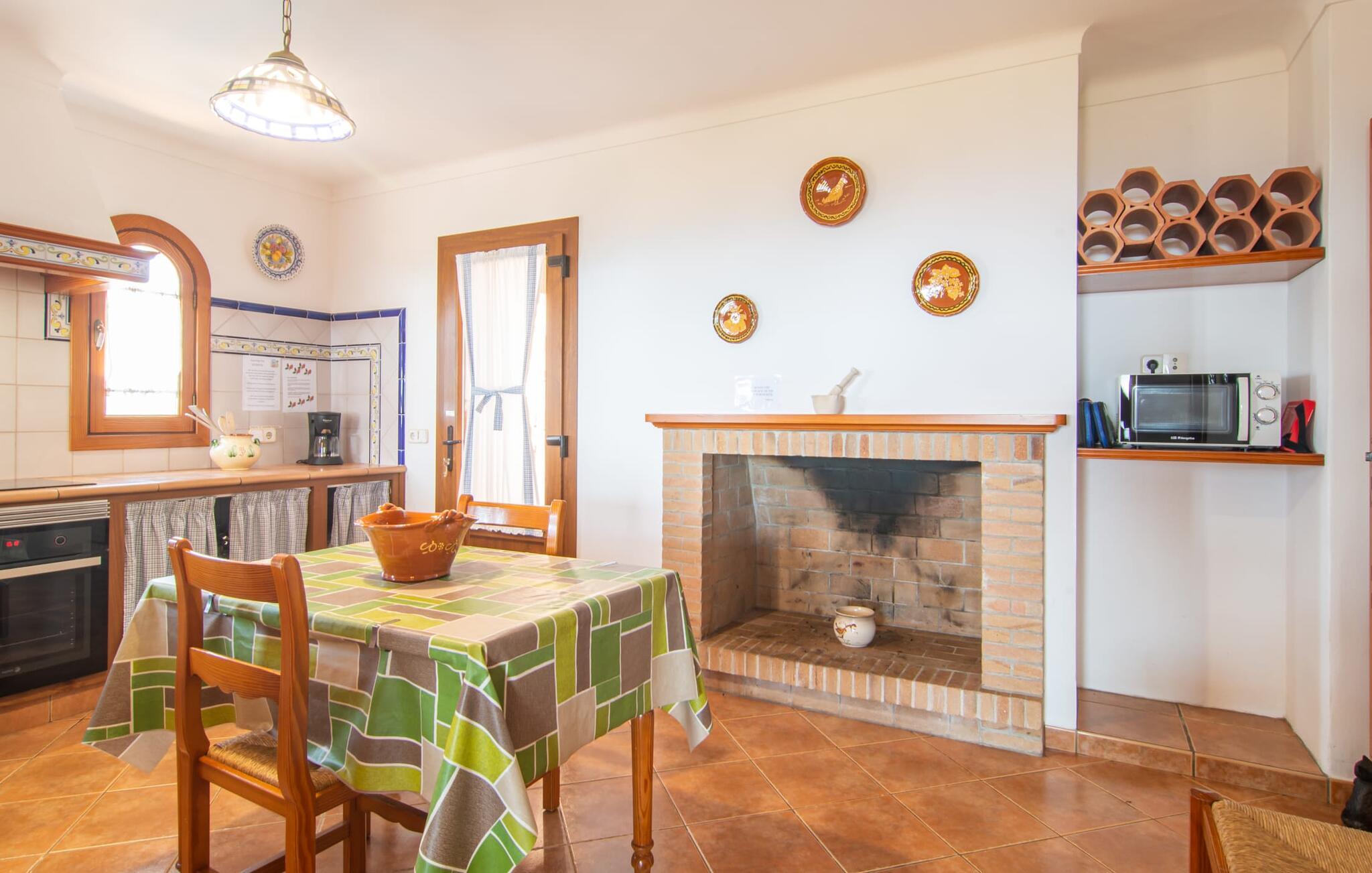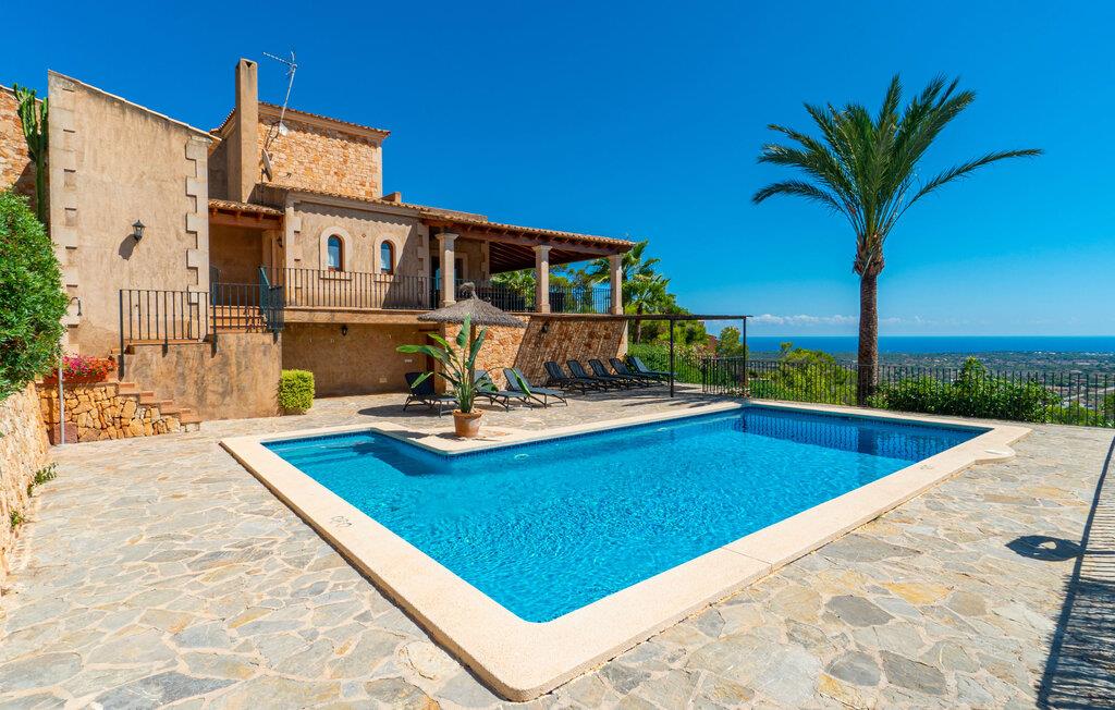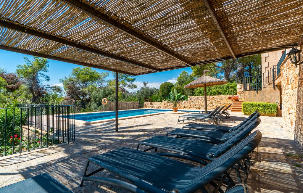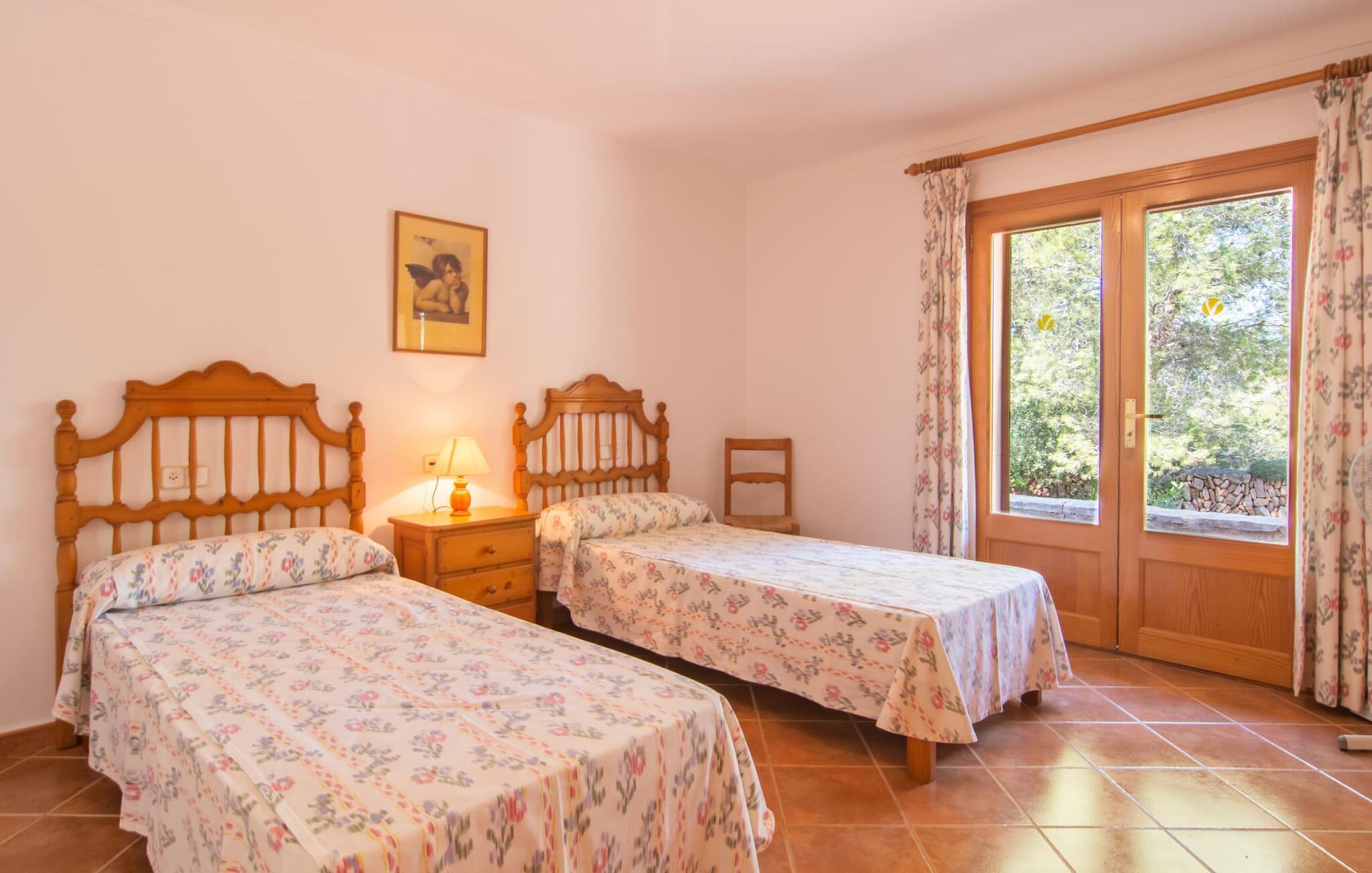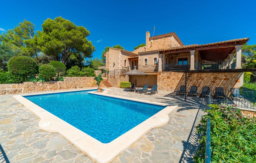 Beliggende i et bjerglandskab dekoreret med fyrreskove og tæt på havet, tilbyder fincaen "Es Puig s'Horta" et roligt tilflugtssted. Dette traditionelle feriehus i stenbrud legemliggør den autentiske mallorcanske livsstil, beliggende i en region uberørt af masseturisme med rig flora og betagende badebugter. Beliggenheden på bjergsiden byder på en rummelig swimmingpool og en rummelig solterrasse, der inviterer jer til at slappe af. Verandaen er udstyret med komfortable lounge siddepladser og et rustikt spisebord og er ideel til grillmad under stjernerne, suppleret med smuk havudsigt. Indenfor imponerer feriehuset med sin harmoniske indretning med mokkafarvede gulvfliser og træmøbler af høj kvalitet. Opholdsområdet har en dekorativ pejs, mens spisepladsen støder op til et køkken, der kombinerer moderne komfort med traditionel mallorcinsk charme. Fincaen kan rumme op til otte gæster og har fire soveværelser, hvoraf det ene har eget badeværelse. Hvert badeværelse afspejler komfort og typisk mallorcansk design, hvilket gør "Es Puig s'Horta" perfekt til familier eller venner, der ønsker at tilbringe en uforglemmelig ferie på Mallorca. Den velholdte finca rustica "Es Puig S'horta" ligger nær S'Horta på den sydlige del af øen, tæt på bjergene og kysten. Portocolom med sit livlige ugentlige marked er ikke langt væk. Gør jeres indkøb i S'Horta eller oplev de smukke sandstrande i Cala Sa Nau eller Cala D'Or, mindre end 10 minutters kørsel væk. Aircondition i ejendommen er inkluderet i prisen, men dets brug er begrænset til kl. 22.00 til kl.