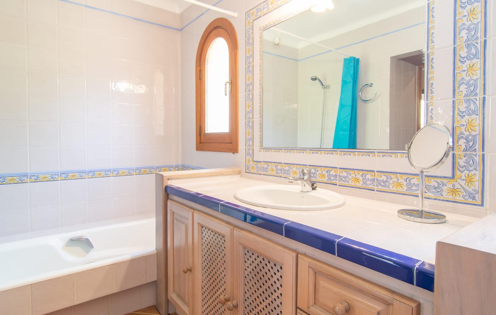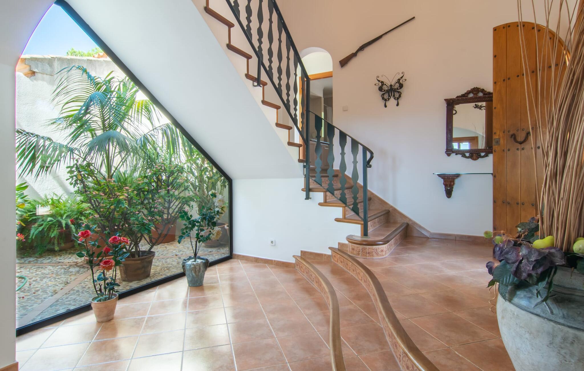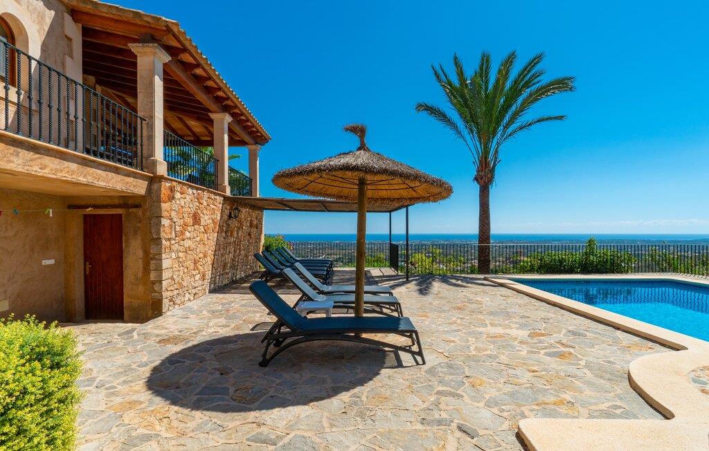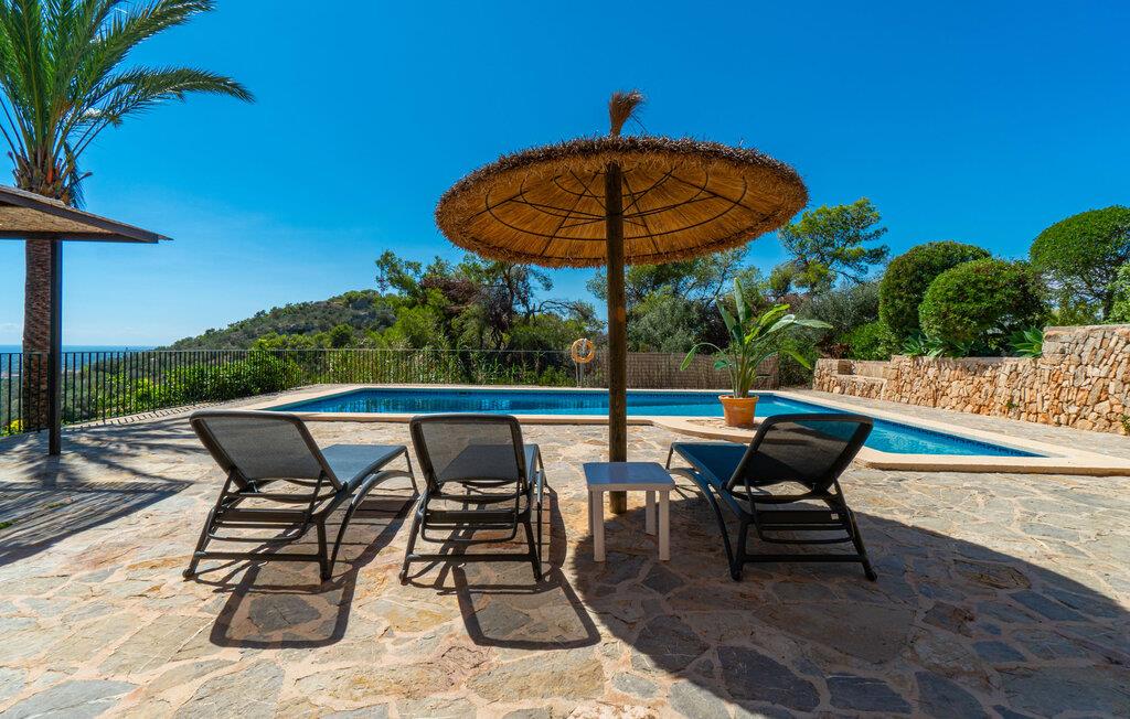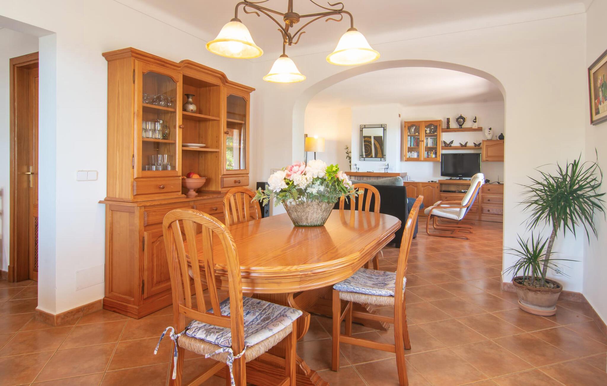 Beliggende i et bjerglandskab dekoreret med fyrreskove og tæt på havet, tilbyder fincaen "Es Puig s'Horta" et roligt tilflugtssted. Dette traditionelle feriehus i stenbrud legemliggør den autentiske mallorcanske livsstil, beliggende i en region uberørt af masseturisme med rig flora og betagende badebugter. Beliggenheden på bjergsiden byder på en rummelig swimmingpool og en rummelig solterrasse, der inviterer jer til at slappe af. Verandaen er udstyret med komfortable lounge siddepladser og et rustikt spisebord og er ideel til grillmad under stjernerne, suppleret med smuk havudsigt. Indenfor imponerer feriehuset med sin harmoniske indretning med mokkafarvede gulvfliser og træmøbler af høj kvalitet. Opholdsområdet har en dekorativ pejs, mens spisepladsen støder op til et køkken, der kombinerer moderne komfort med traditionel mallorcinsk charme. Fincaen kan rumme op til otte gæster og har fire soveværelser, hvoraf det ene har eget badeværelse. Hvert badeværelse afspejler komfort og typisk mallorcansk design, hvilket gør "Es Puig s'Horta" perfekt til familier eller venner, der ønsker at tilbringe en uforglemmelig ferie på Mallorca. Den velholdte finca rustica "Es Puig S'horta" ligger nær S'Horta på den sydlige del af øen, tæt på bjergene og kysten. Portocolom med sit livlige ugentlige marked er ikke langt væk. Gør jeres indkøb i S'Horta eller oplev de smukke sandstrande i Cala Sa Nau eller Cala D'Or, mindre end 10 minutters kørsel væk. Aircondition i ejendommen er inkluderet i prisen, men dets brug er begrænset til kl. 22.00 til kl.