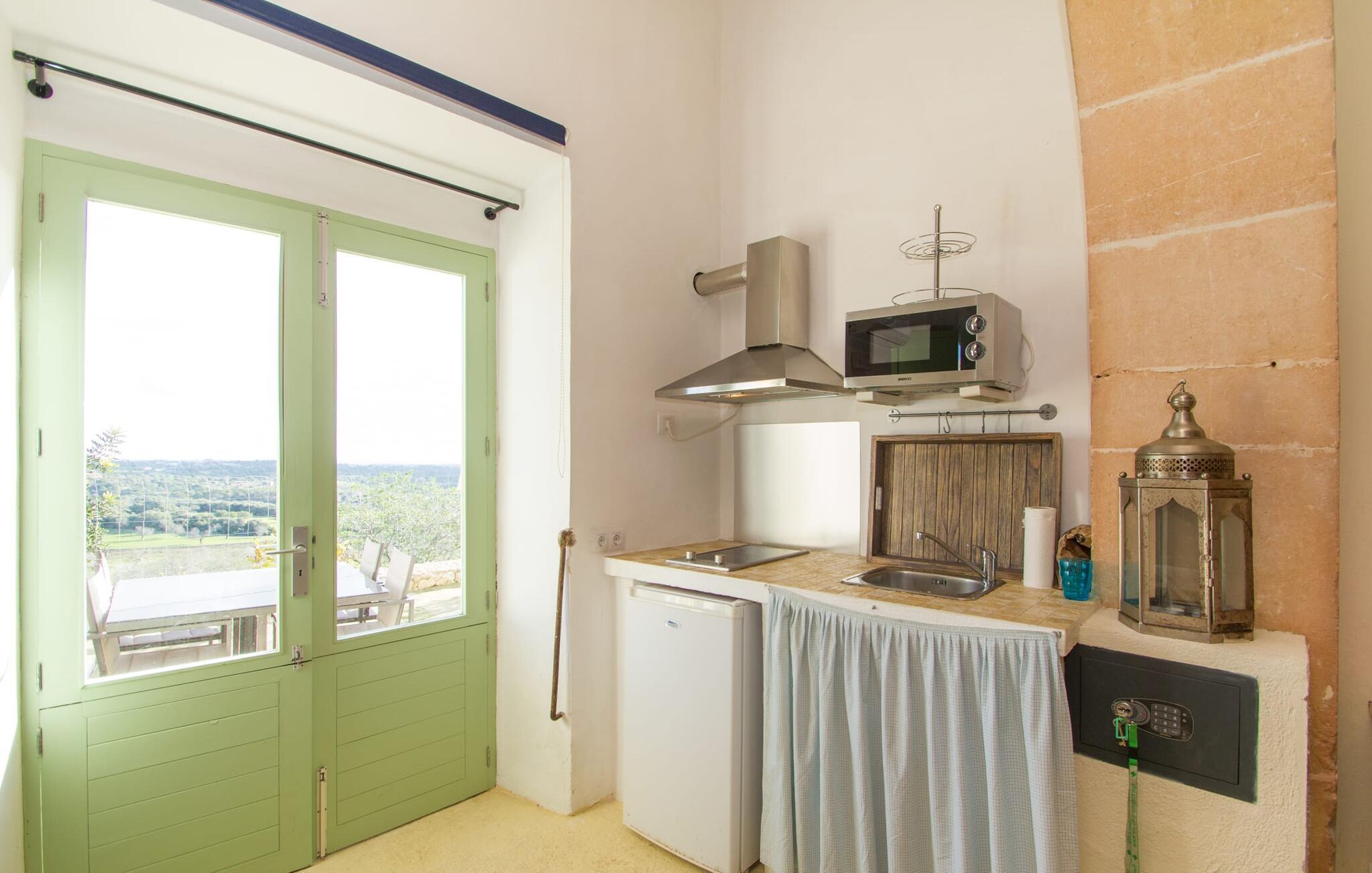 "Es Pujol Botiga" er et helt unikt tilflugtssted. Beliggende i det fantastiske naturlandskab i det sydlige Mallorca, tilbyder det en fredelig oase for dem, der søger ro, mens det forbliver bekvemt tæt på kysten for en række aktiviteter. Dette er et feriehus i Fincallorca. Denne typiske mallorcanske agroturismo-ejendom kombinerer charmen ved en privat villa med faciliteter i hotelstil. Den store grund er smukt anlagt og har forskellige siddepladser, en legeplads og en fælles pool, perfekt til afslapning og svømning. Den panoramiske terrasse og det private møblerede område inviterer dig til at slappe af og nyde under den dybblå himmel. Indvendigt kombinerer ejendommen traditionelle stenelementer, en imponerende bue, synlige bjælkelofter og lyse vægge med moderne møbler. Det rummelige opholdsområde kombinerer madlavning, spisning og sove, mens det en-suite badeværelse har bruseniche og dobbelt håndvask. Villaen er ideel til et par og tilbyder aircondition, WiFi og et fladskærms-tv for komfort året rundt. Dette er en af otte ejendomme på ejendommen, herunder "Es Pujol Alejandra", "Es Pujol Pedrito", "Es Pujol Paissa", "Es Pujol Carlota", "Es Pujol Ametlera", "Es Pujol Cas Amitger" og "Es Pujol Peladora", som kan bookes via vores hjemmeside. Denne ejendom har en rolig beliggenhed tæt på stranden i Cala d'Or, som ligger 15 minutters kørsel derfra. Nyd havnepromenaden, butikker, barer og restauranter eller tilbring en sjov dag på stranden i byens bugt. Calonge (3,5 km) og S'Alqueria Blanca (2,6 km) er ideelle til daglige indkøb, mens Santanyi, kun 8 km væk, byder på adskillige shoppingmuligheder, nattelivsmuligheder og restauranter.