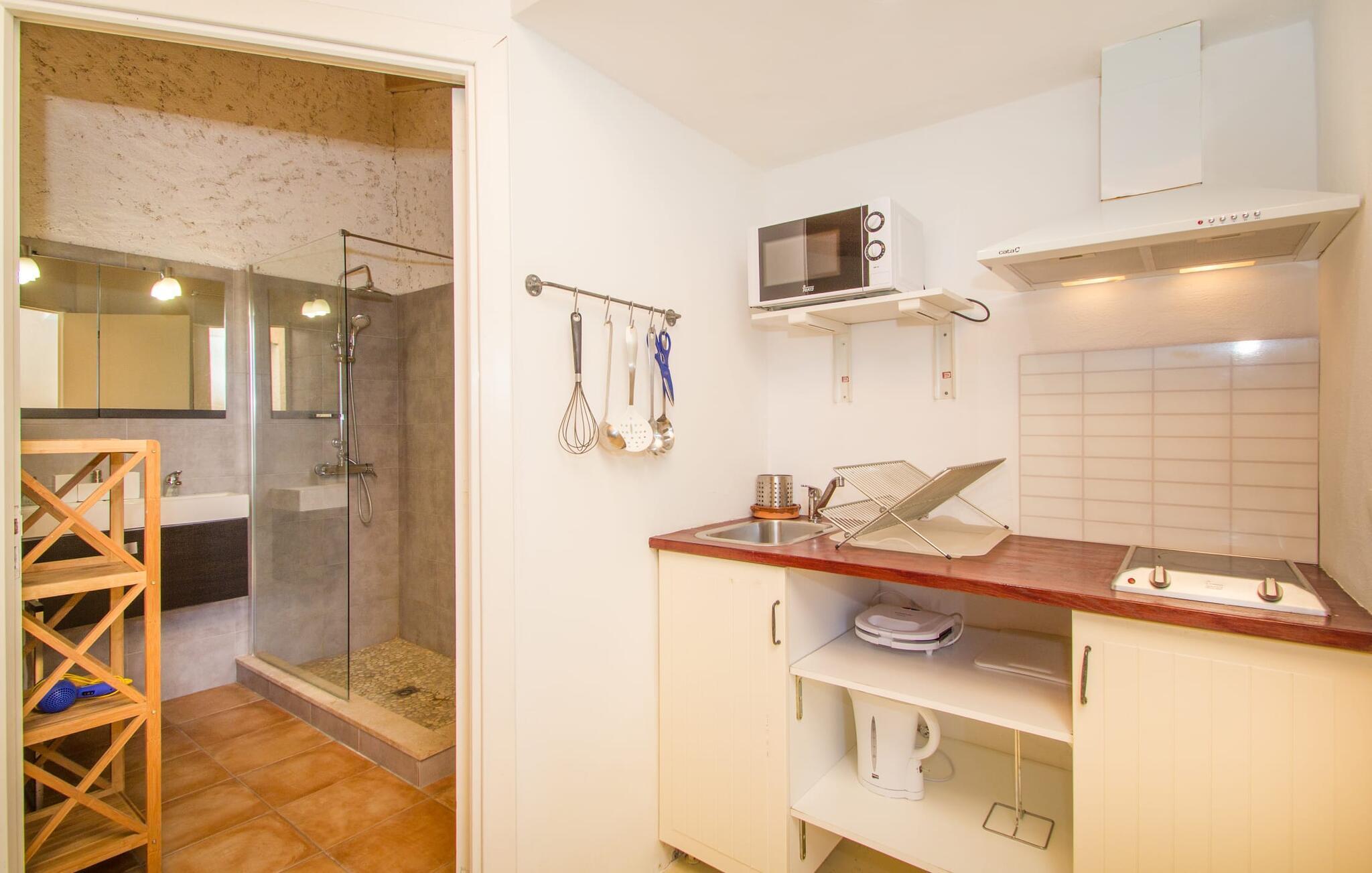 Hvilket sted, hvilket panorama! Og hele stedet er smagt til med en god portion originalitet, for "Es Pujol Carlota" er ikke et almindeligt sted. En ferie i dette hyggelige og elegant designede hjem vil være en særlig form for fornøjelse! Placeringen, omgivet af fantastiske naturlandskaber i den sydlige del af øen, er det ideelle sted for dem, der søger fred og ro. På grund af sin bekvemme beliggenhed nær kysten byder det også på utallige muligheder for udflugter og aktiviteter, og huset lader derfor - omgivet af stor grund - intet tilbage at ønske. Denne typiske mallorcanske agroturismo-ejendom er en blanding af villa og hotel med i alt seks attraktive boligenheder. Dette er ideelt for alle, der værdsætter idyllen i en landlig villa, men ikke ønsker at gå glip af typiske hotelfaciliteter. Forskellige siddemuligheder og nicher i udearealet, hvoraf nogle er anlagt som en skøn have, inviterer til afslapning af hjertens lyst. Her får børnene også noget for pengene, da legepladsen med diverse lege- og sportsudstyr lover sjov og variation. Måske får børn og voksne nye venner undervejs? Det sjove ved at svømme er selvfølgelig også meget vigtigt her. I det (fælles) 13 m bassin, som du nemt kan nå via brede trin, kan du svømme længder og forfriske dig på varme dage. Brug er muligt fra maj til oktober. Du kan slappe af af hjertens lyst på liggestolene på panoramaterrassen og bare lade tankerne vandre og lave ingenting i et stykke tid - du er trods alt på ferie. Dit eget møblerede område ved siden af huset byder på vidunderlige steder at nyde dine måltider i velkendt selskab. Hvilke smukke rammer for en fornøjelig morgenmad her om morgenen under en dybblå himmel! Dette er et Fincallorca feriehus. Charmen ved dette feriehus ligger i den vellykkede kombination af gammel bygningsstruktur og stilfuld, moderne indretning, suppleret med små dekorative detaljer såsom smukke lys og typisk mallorcansk kunst. Naturstenselementer, klassiske synlige bjælkelofter og lyse vægge indrammer overbevisende det muntre interiør og udstråler en varme, der straks får dig til at føle dig godt tilpas. Dette hyggelige midlertidige hjem har to soveværelser (det ene med aircondition), et brusebad og en stue/spisestue med et tekøkken, der er velegnet til daglig brug. Dette hyggelige feriehus er perfekt til et par eller en familie med to voksne og op til to børn. Ægte komfort: Klimaanlægget/varmen sikrer behagelige indendørstemperaturer året rundt. Wi-Fi og et fladskærms-tv med satellitforbindelse er også tilgængelige. Der er et pengeskab, hvor du kan opbevare dine værdifulde genstande. Alle babyer i din gruppe kan bruge babysengen og højstolen. Under dit ophold bør du helt sikkert tage et kig på de forskellige tilbud i det omkringliggende område. Saltpander, kaktushaver og naturlige strande taler for sig selv. Cala d'Or emmer af Ibiza-flair med sine hvidmalede huse og eksklusive barer og butikker. Der er en lille havn, en promenade med mange gode restauranter, et supermarked, et bageri, et apotek osv. Santanyi, kun 8 km væk, byder på adskillige indkøbsmuligheder, natteliv og spisemuligheder. Den såkaldte Hamburg Hill af de rige og berømte er hjemsted for high society, mens byens bugt er et perfekt sted for en sjov dag på stranden. Hvorfor ikke forlade villaen og køre op ad vejen mod Porto Cristo og lade dig friste af de mange små blindgyder til at tage spontane omveje? Denne enhed er en af otte lejeboliger på ejendommen. De andre hedder "Es Pujol Alejandra", "Es Pujol Pedrito", "Es Pujol Paissa", "Es Pujol Botiga", "Es Pujol Ametlera", "Es Pujol Cas Amitger" og "Es Pujol Peladora" - og alle disse kan bookes hos Fincallorca. Feriehuset "Es Pujol Carlota" er det perfekte sted for en afslappende ferie i naturen. Denne familievenlige ejendom har en rolig beliggenhed tæt på stranden i Cala d'Or. Du kan nå sidstnævnte efter en kort 15-minutters kørsel og kan nyde havnepromenaden, butikker, barer og restauranter. Du kan nemt gøre dine daglige indkøb i Calonge (3,5 km) og S'Alqueria Blanca (2,6 km).