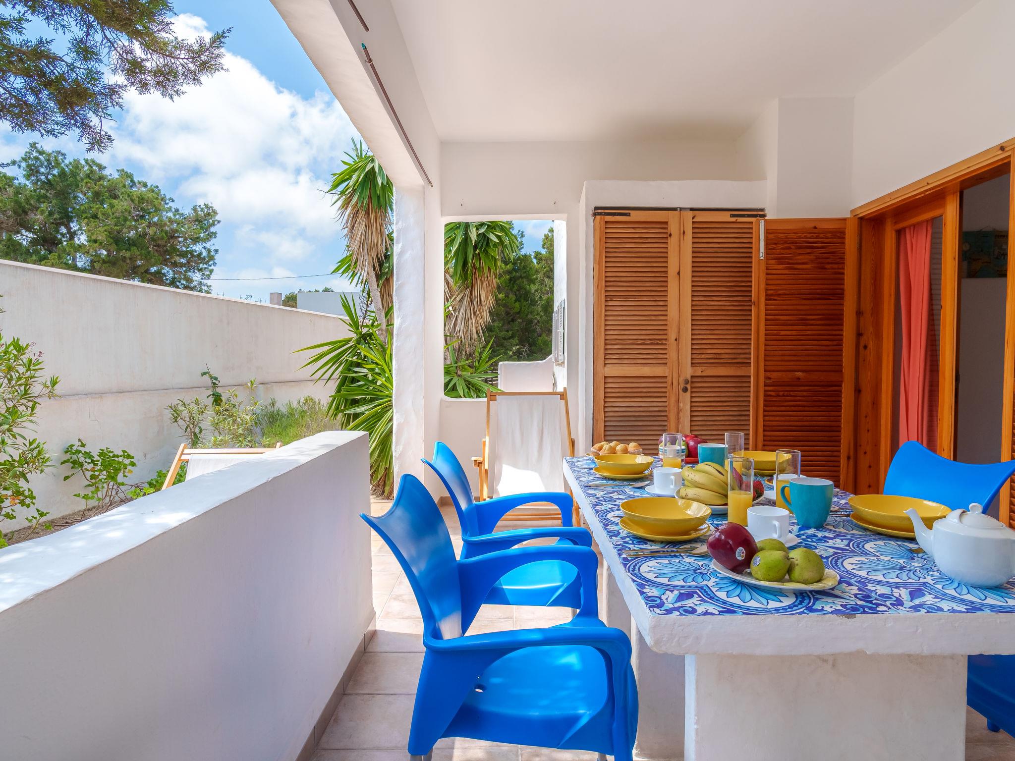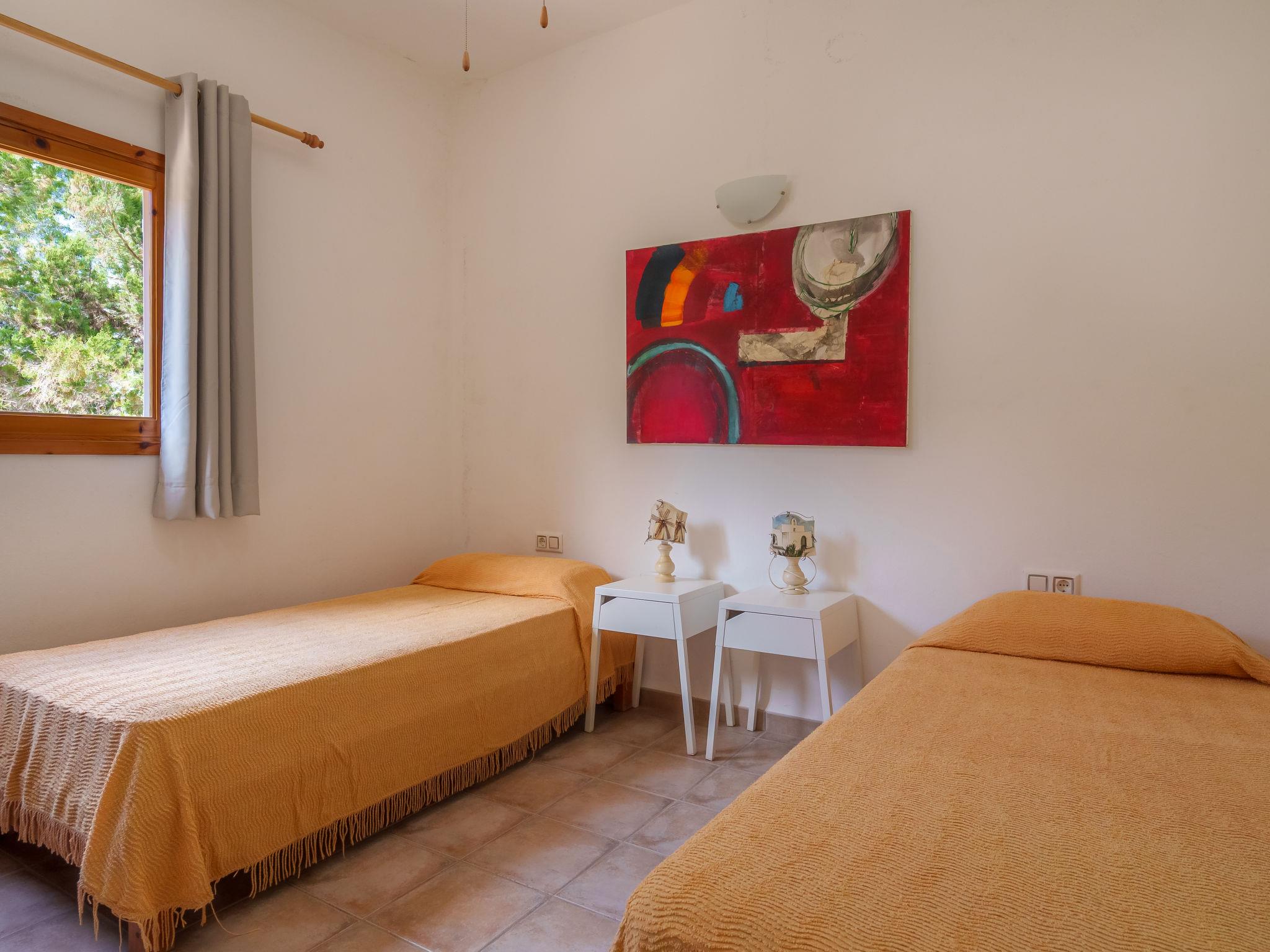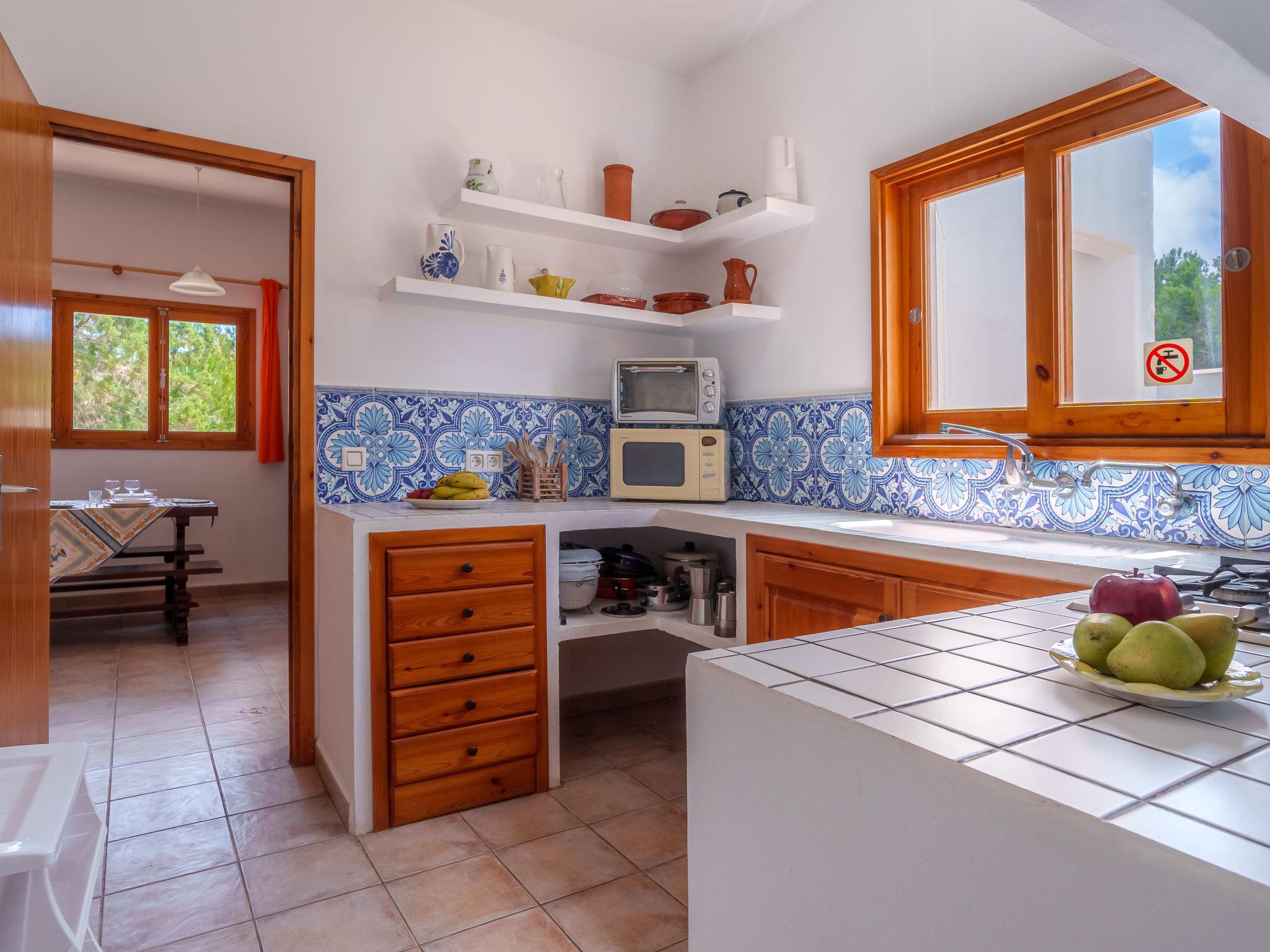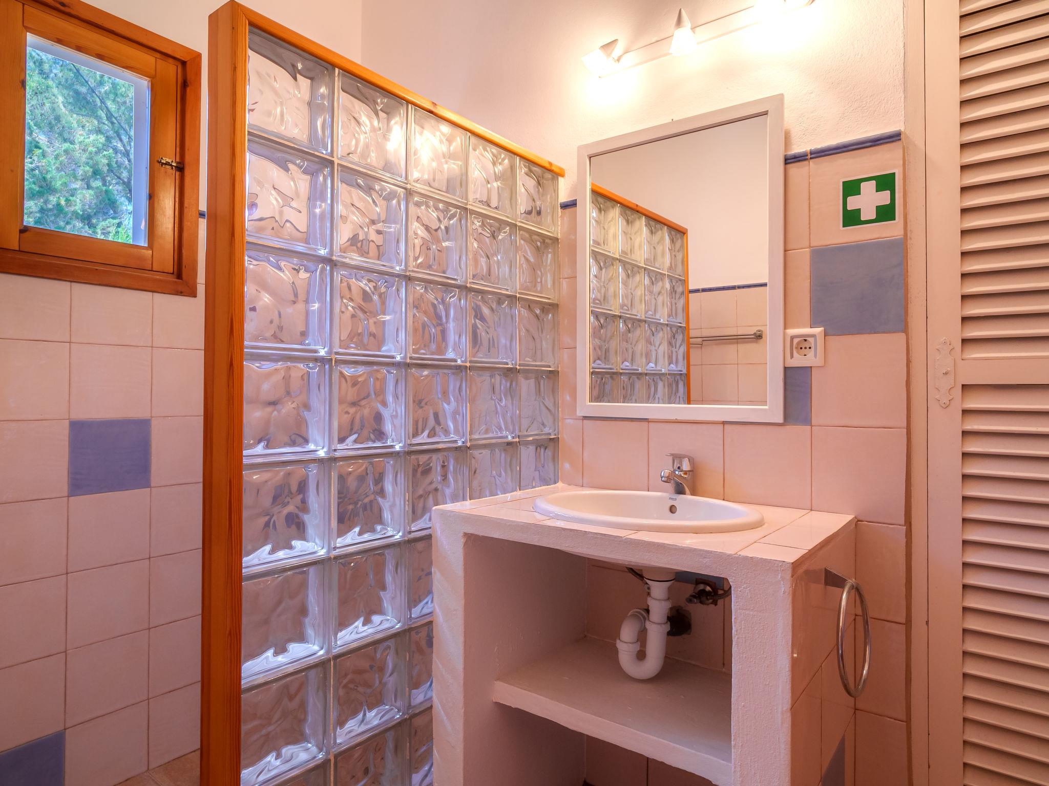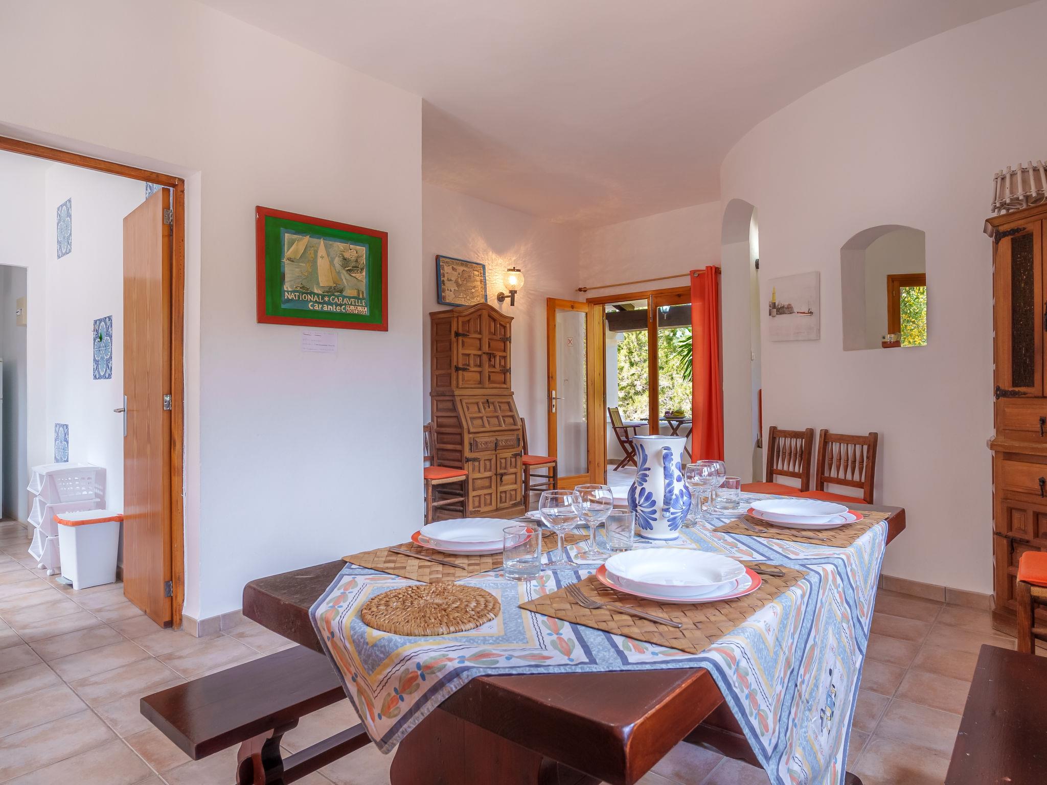 "Es Pujols", 5-room house 100 m2. Object suitable for 6 adults. Practical and cosy furnishings: open large dining room with dining table, digital TV and fan. Exit to the patio. 1 large double bedroom with 1 french bed (150 cm, length 200 cm), fan. 1 large double bedroom with 2 beds (90 cm, length 200 cm), fan. 1 large double bedroom with 1 french bed (150 cm, length 200 cm), fan. Kitchen (3 hot plates, oven, dishwasher, toaster, kettle, microwave, freezer, electric coffee machine). 2 showers/WC. View of the sea, the garden, the countryside, the resort and the forest. Facilities: washing machine, iron, children's high chair, baby cot for up to 2 year olds, hair dryer. Internet (WiFi, free). Suitable for families. ET7554