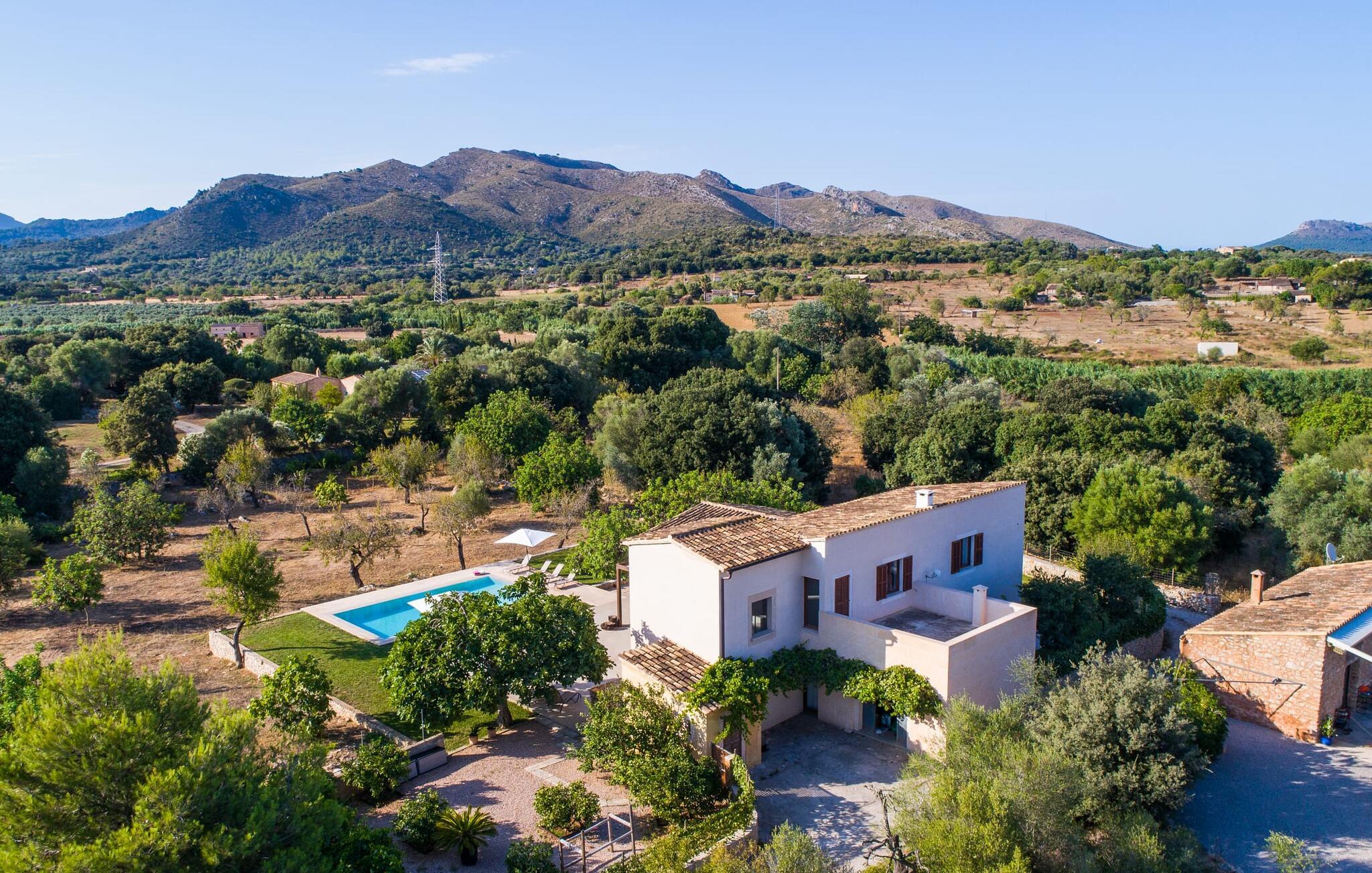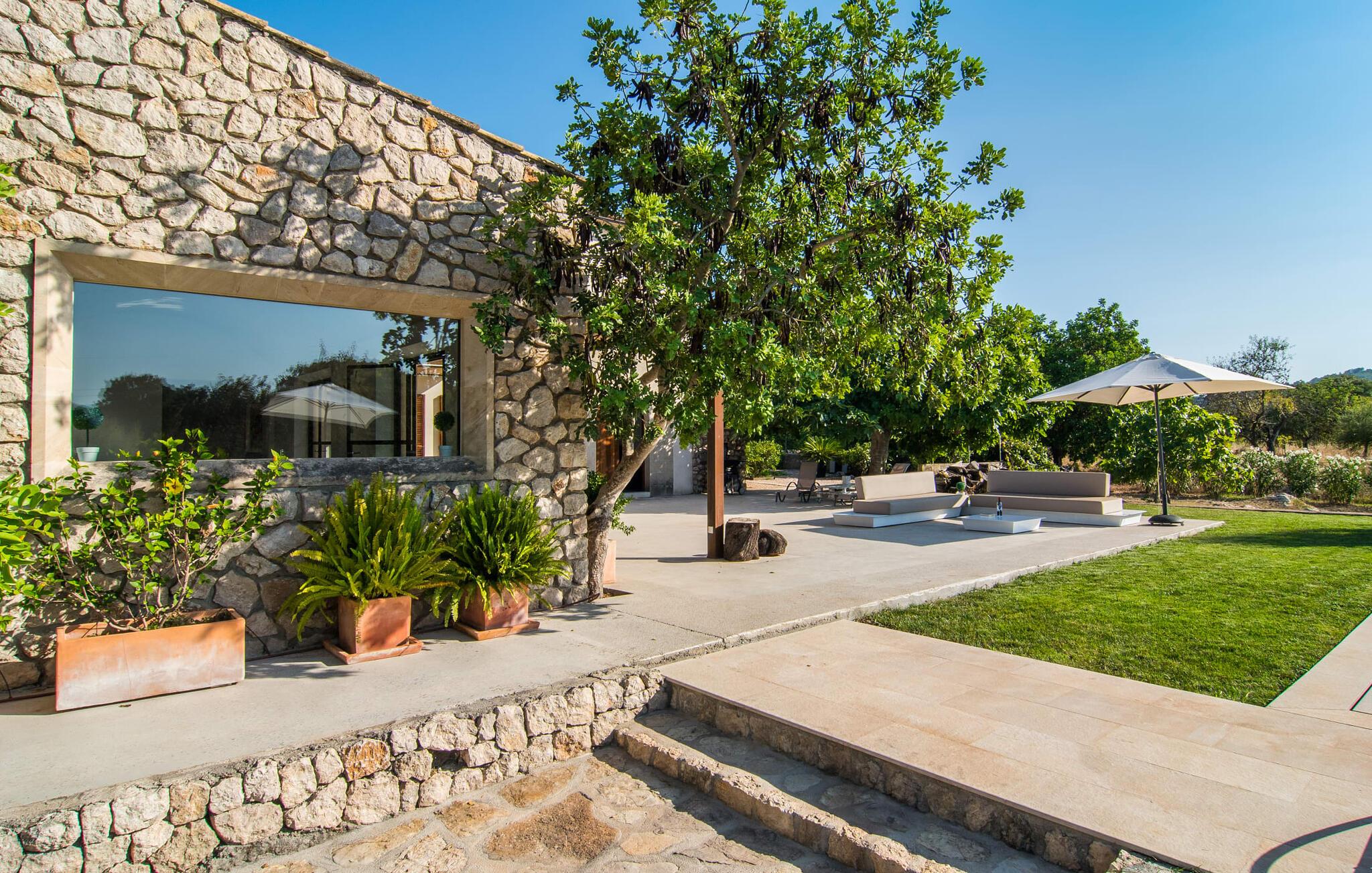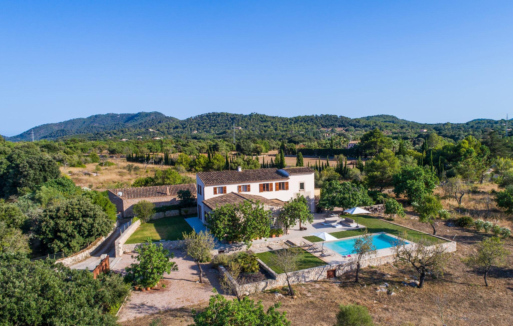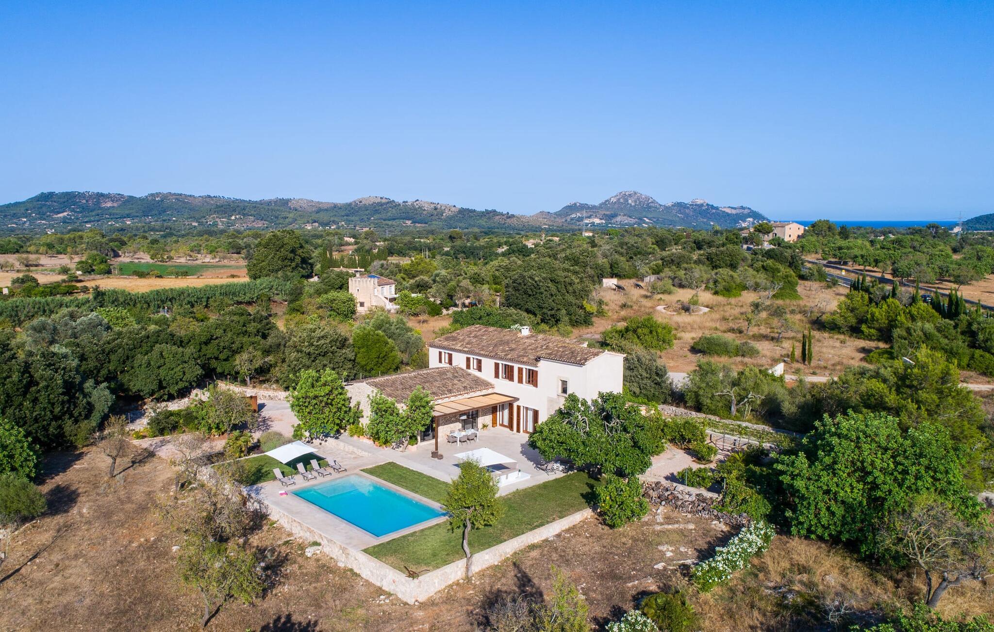 "Es Qanat" er et smukt designet oase, der tilbyder individuelle ferier i rolige omgivelser omgivet af nabovillaer. Ejendommen strækker sig over 10.000 m² og dyrkes økologisk, hvilket understreger dets engagement i bæredygtighed. Ved ankomsten kan gæsterne nemt parkere tre biler og bliver mødt af lavvandede trin, der fører til terrassen, poolen og haven. Den rummelige terrasse foran køkkenet og stuen giver masser af skygge om morgenen, hvilket gør det til et ideelt sted at spise morgenmad under træerne. Swimmingpoolen er ideel for fitness-entusiaster og har udsigt over de nærliggende sandstrande, kun en kort køretur væk. Interiøret byder på rummelige, lyse værelser i to etager. På første sal er der soveværelse med integreret badeværelse og forværelse, der ligner en suite. I stueetagen er der yderligere to soveværelser og et fælles badeværelse med bruser og nem adgang til pool og udendørs bruser. "Es Qanat" er et eksempel på moderne design, især i køkkenområdet, som passer perfekt ind i boligarealet og tilbyder en betagende udsigt over de omkringliggende bakker i Artà og Capdepera. Denne ejendom er en perfekt blanding af komfort, stil og naturlig skønhed. Den ultramoderne villa "Es Qanat" ligger kun 3 km fra Artàs caféer og restauranter og det nærmeste supermarked og tæt på Torrent de Canyamel: kun 10 minutter til Canyamel og de berømte Caves of Artà. Med Ma-4040 kan I nå Capdepera og Cala Ratjada, den naturlige strand Cala Agulla, Cala Son Moll eller den fine sandbugt Cats på ingen tid. Golfentusiaster kan vælge mellem to golfbaner i umiddelbar nærhed.