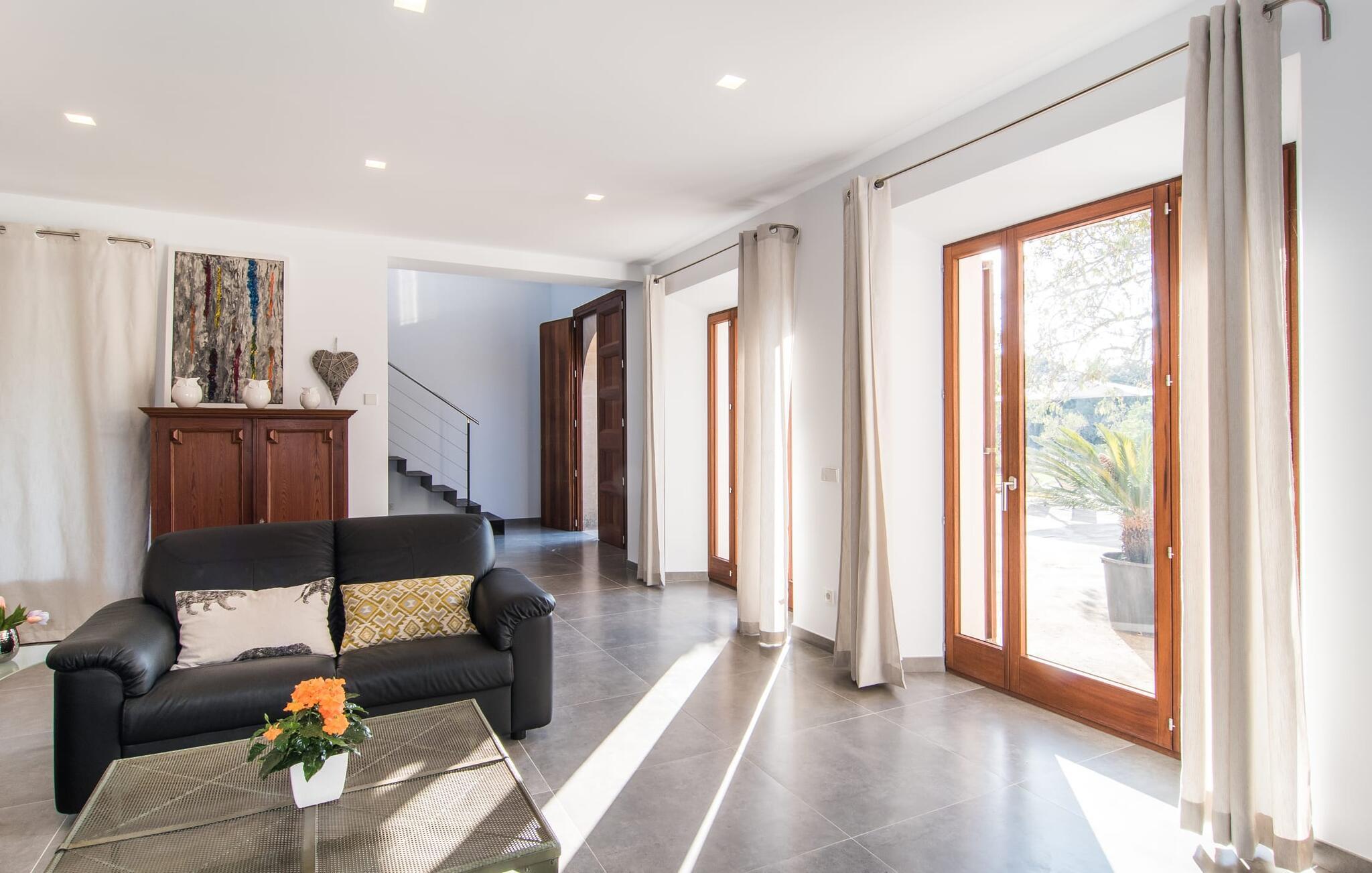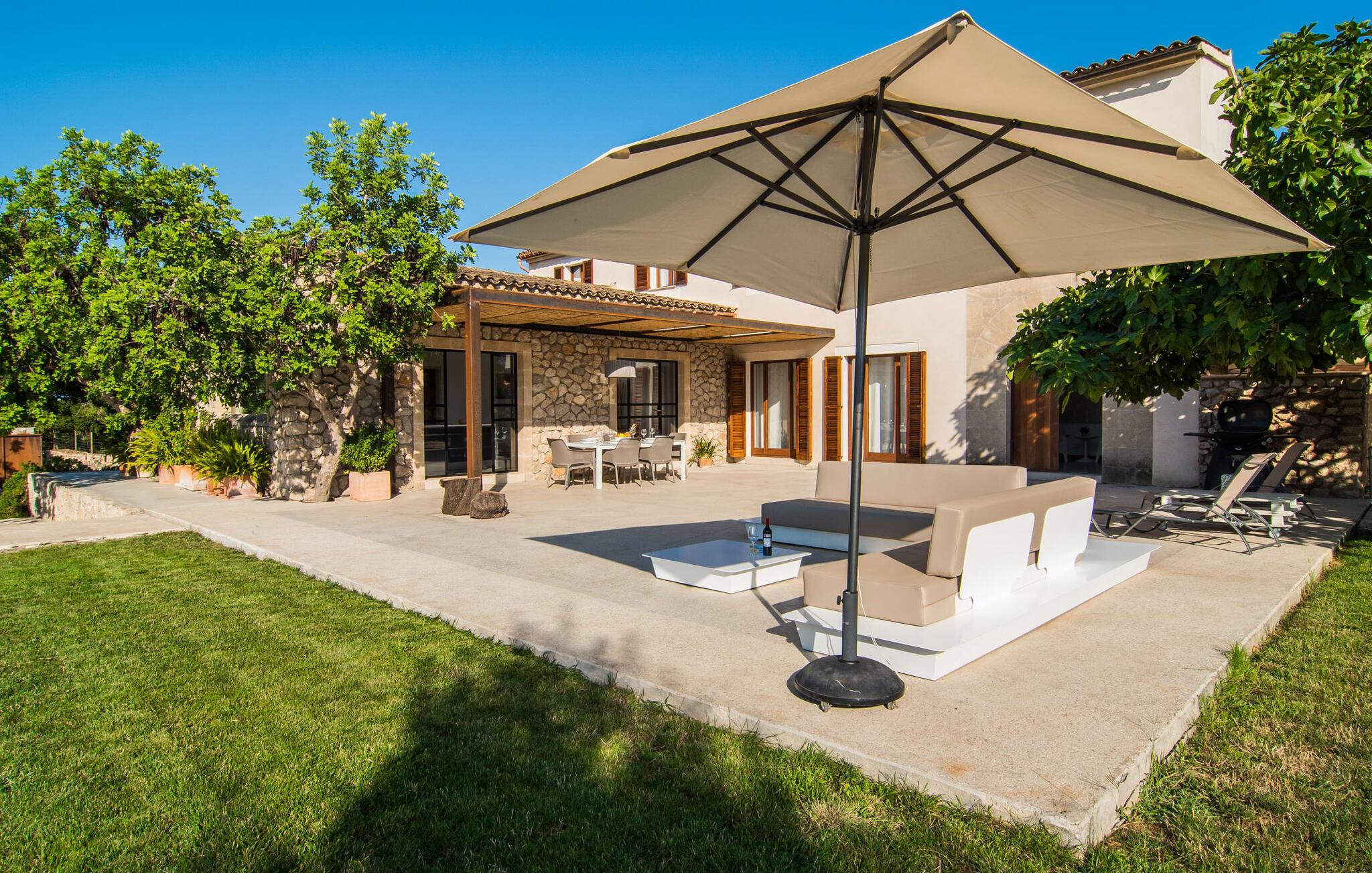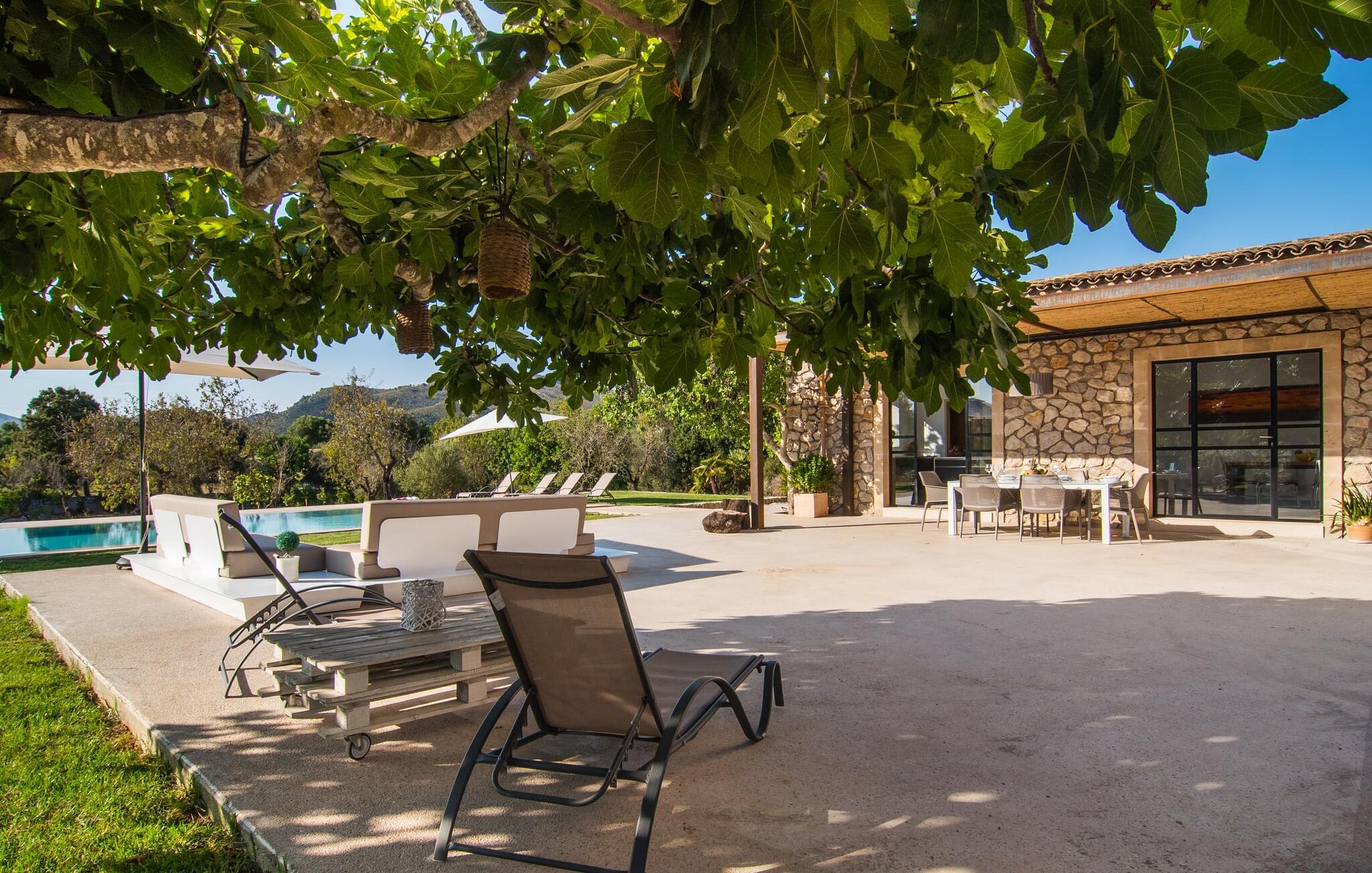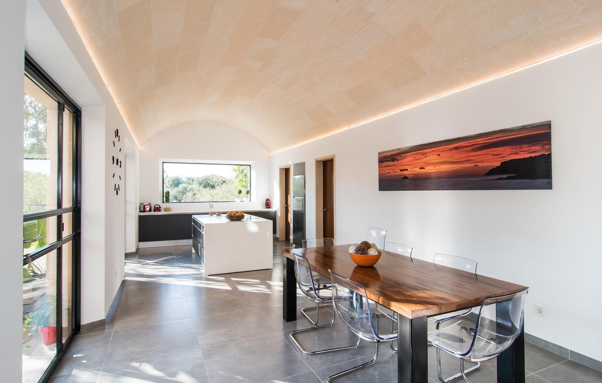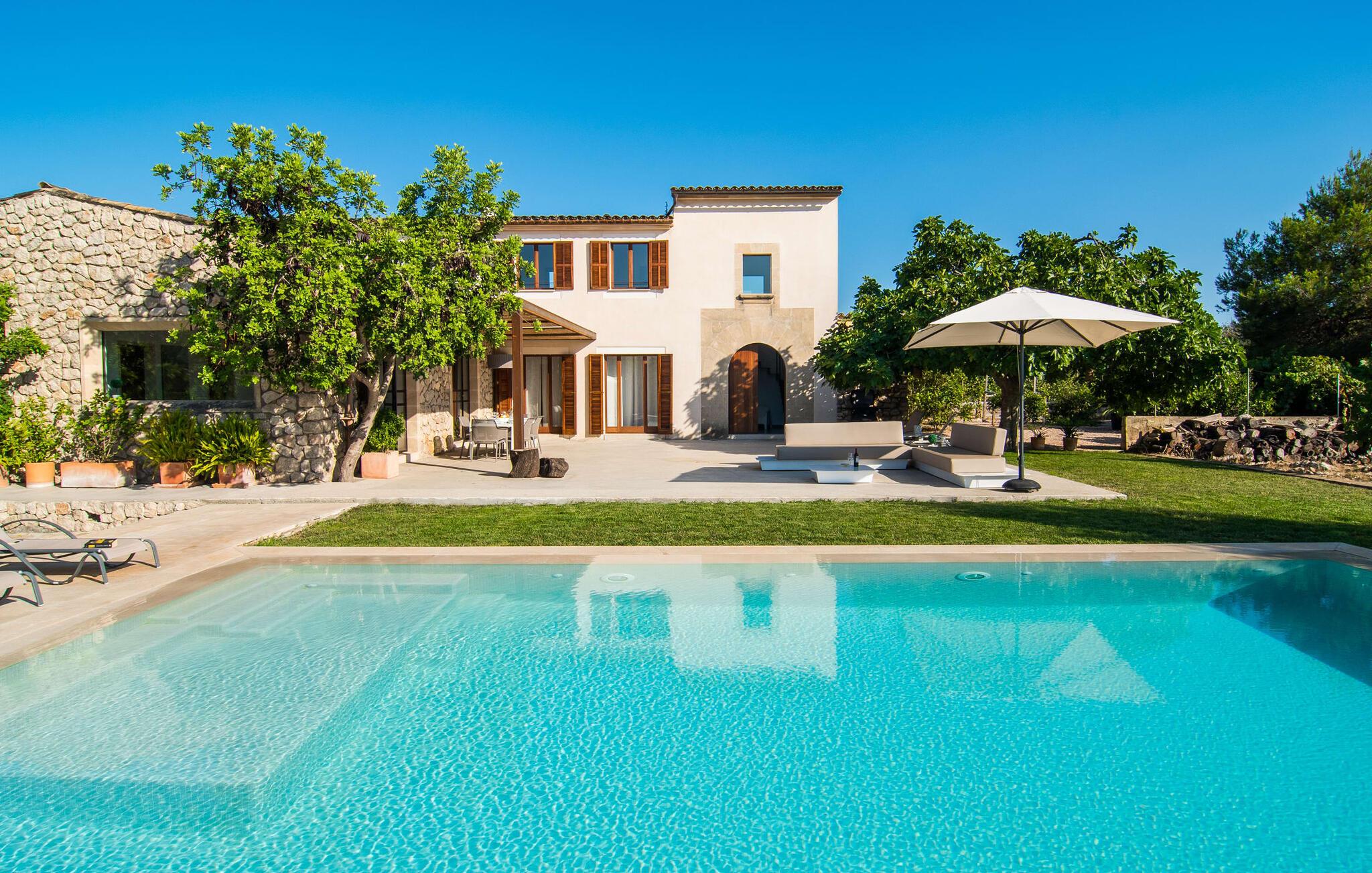 "Es Qanat" er et smukt designet oase, der tilbyder individuelle ferier i rolige omgivelser omgivet af nabovillaer. Ejendommen strækker sig over 10.000 m² og dyrkes økologisk, hvilket understreger dets engagement i bæredygtighed. Ved ankomsten kan gæsterne nemt parkere tre biler og bliver mødt af lavvandede trin, der fører til terrassen, poolen og haven. Den rummelige terrasse foran køkkenet og stuen giver masser af skygge om morgenen, hvilket gør det til et ideelt sted at spise morgenmad under træerne. Swimmingpoolen er ideel for fitness-entusiaster og har udsigt over de nærliggende sandstrande, kun en kort køretur væk. Interiøret byder på rummelige, lyse værelser i to etager. På første sal er der soveværelse med integreret badeværelse og forværelse, der ligner en suite. I stueetagen er der yderligere to soveværelser og et fælles badeværelse med bruser og nem adgang til pool og udendørs bruser. "Es Qanat" er et eksempel på moderne design, især i køkkenområdet, som passer perfekt ind i boligarealet og tilbyder en betagende udsigt over de omkringliggende bakker i Artà og Capdepera. Denne ejendom er en perfekt blanding af komfort, stil og naturlig skønhed. Den ultramoderne villa "Es Qanat" ligger kun 3 km fra Artàs caféer og restauranter og det nærmeste supermarked og tæt på Torrent de Canyamel: kun 10 minutter til Canyamel og de berømte Caves of Artà. Med Ma-4040 kan I nå Capdepera og Cala Ratjada, den naturlige strand Cala Agulla, Cala Son Moll eller den fine sandbugt Cats på ingen tid. Golfentusiaster kan vælge mellem to golfbaner i umiddelbar nærhed.