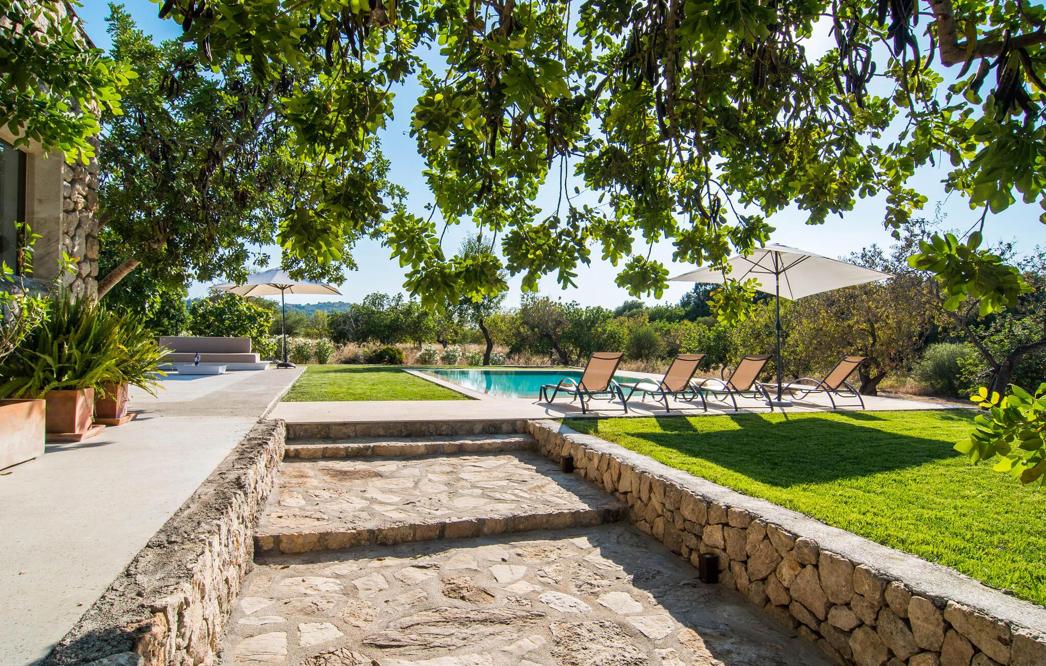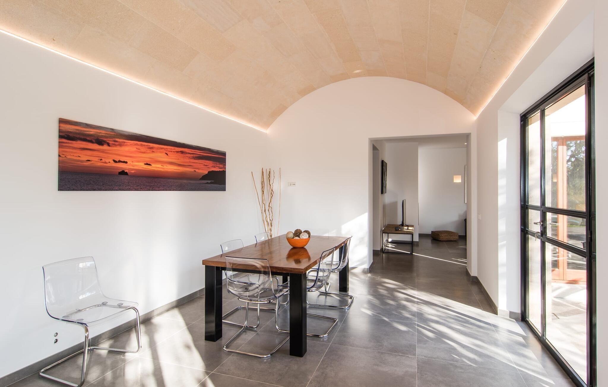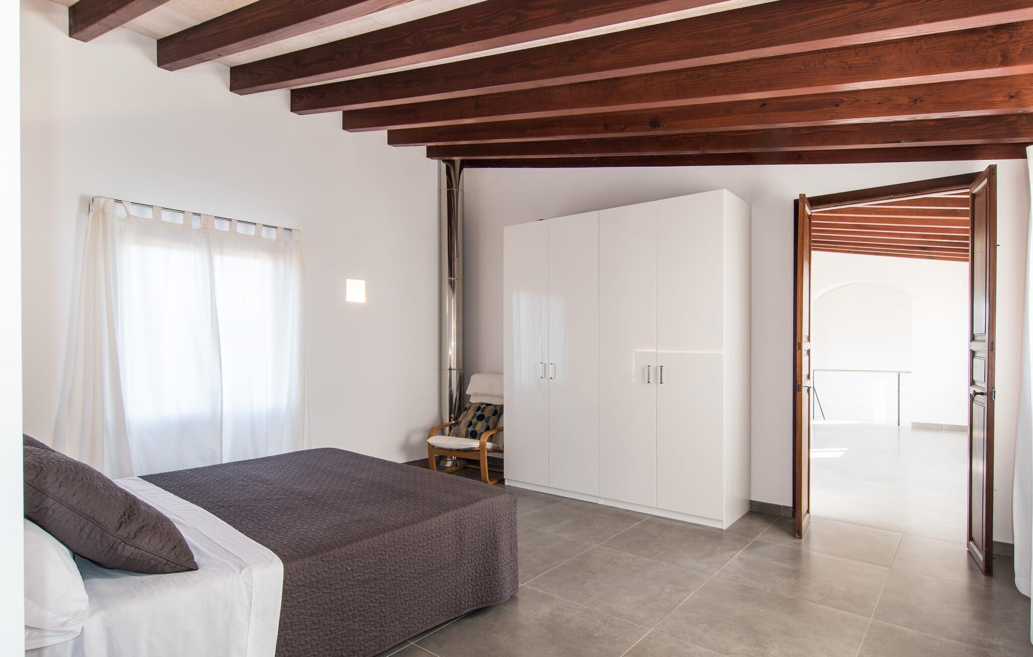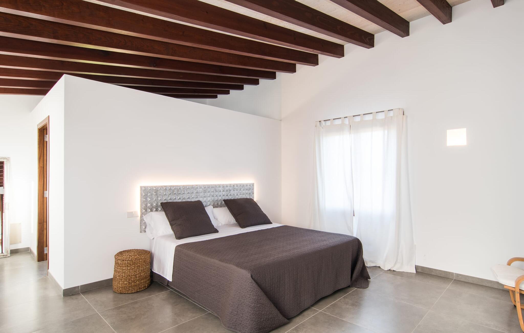 "Es Qanat" er et smukt designet oase, der tilbyder individuelle ferier i rolige omgivelser omgivet af nabovillaer. Ejendommen strækker sig over 10.000 m² og dyrkes økologisk, hvilket understreger dets engagement i bæredygtighed. Ved ankomsten kan gæsterne nemt parkere tre biler og bliver mødt af lavvandede trin, der fører til terrassen, poolen og haven. Den rummelige terrasse foran køkkenet og stuen giver masser af skygge om morgenen, hvilket gør det til et ideelt sted at spise morgenmad under træerne. Swimmingpoolen er ideel for fitness-entusiaster og har udsigt over de nærliggende sandstrande, kun en kort køretur væk. Interiøret byder på rummelige, lyse værelser i to etager. På første sal er der soveværelse med integreret badeværelse og forværelse, der ligner en suite. I stueetagen er der yderligere to soveværelser og et fælles badeværelse med bruser og nem adgang til pool og udendørs bruser. "Es Qanat" er et eksempel på moderne design, især i køkkenområdet, som passer perfekt ind i boligarealet og tilbyder en betagende udsigt over de omkringliggende bakker i Artà og Capdepera. Denne ejendom er en perfekt blanding af komfort, stil og naturlig skønhed. Den ultramoderne villa "Es Qanat" ligger kun 3 km fra Artàs caféer og restauranter og det nærmeste supermarked og tæt på Torrent de Canyamel: kun 10 minutter til Canyamel og de berømte Caves of Artà. Med Ma-4040 kan I nå Capdepera og Cala Ratjada, den naturlige strand Cala Agulla, Cala Son Moll eller den fine sandbugt Cats på ingen tid. Golfentusiaster kan vælge mellem to golfbaner i umiddelbar nærhed.