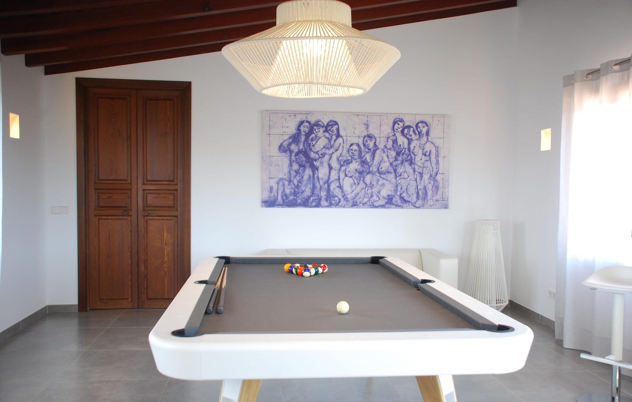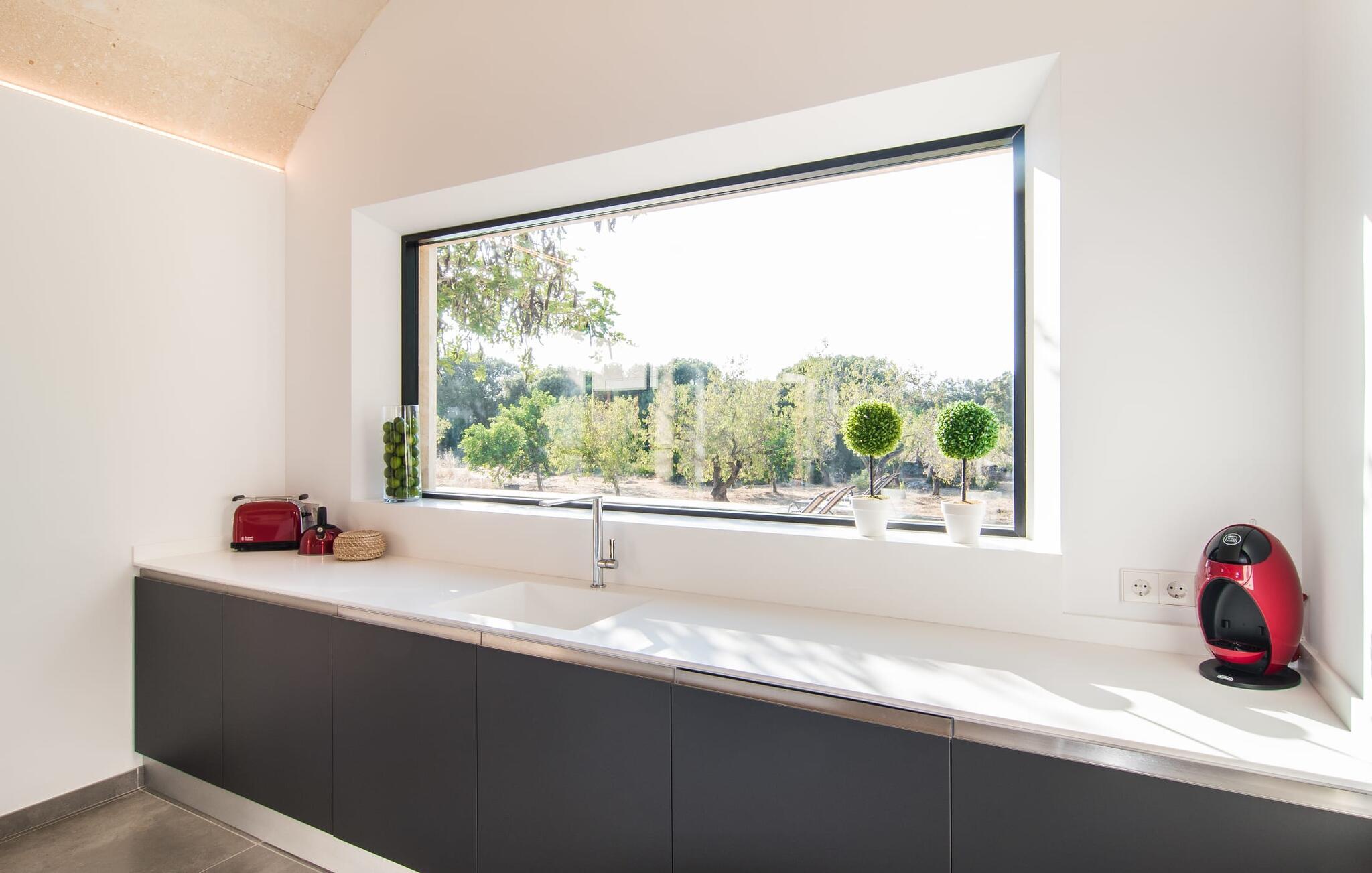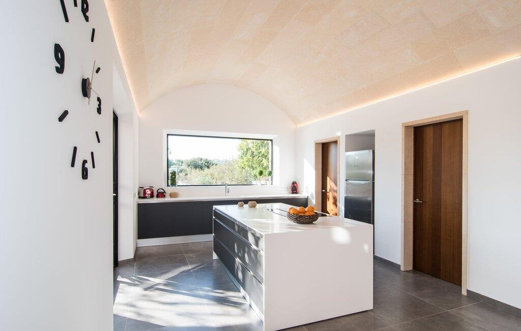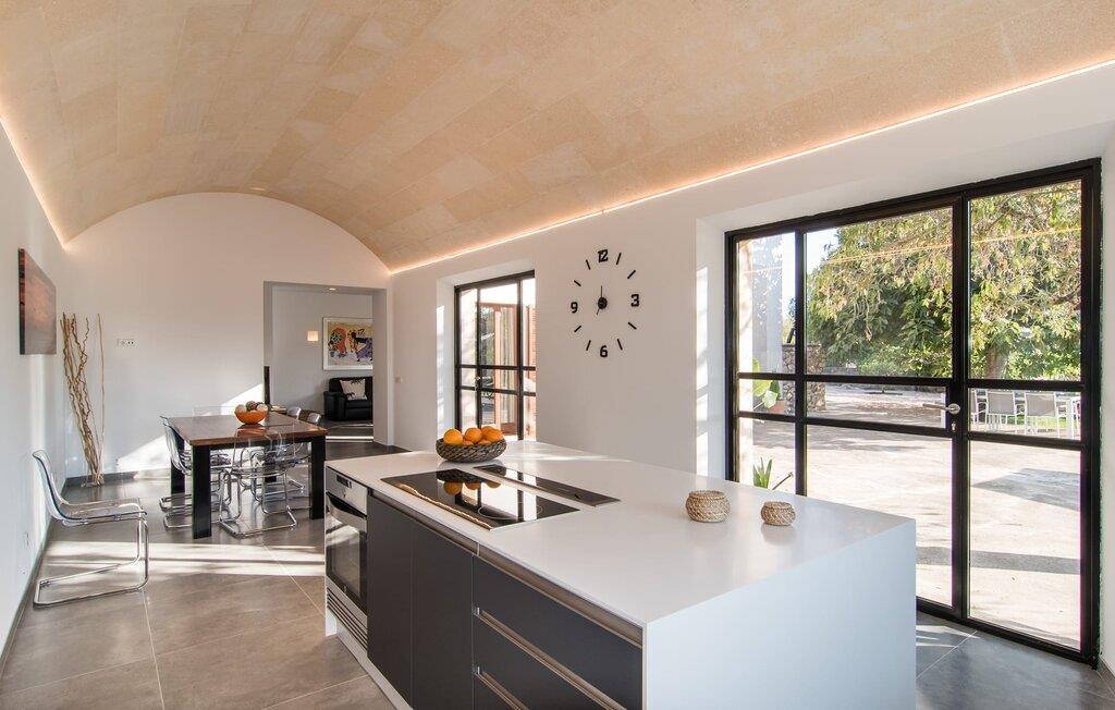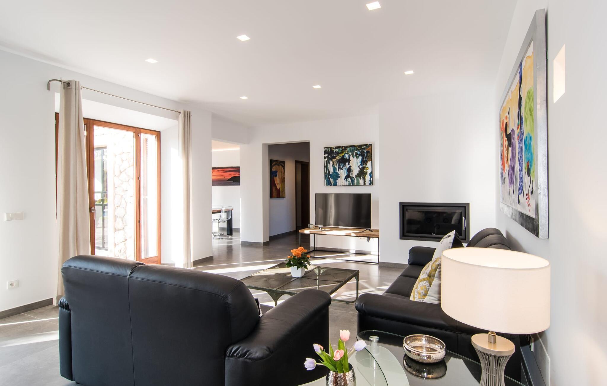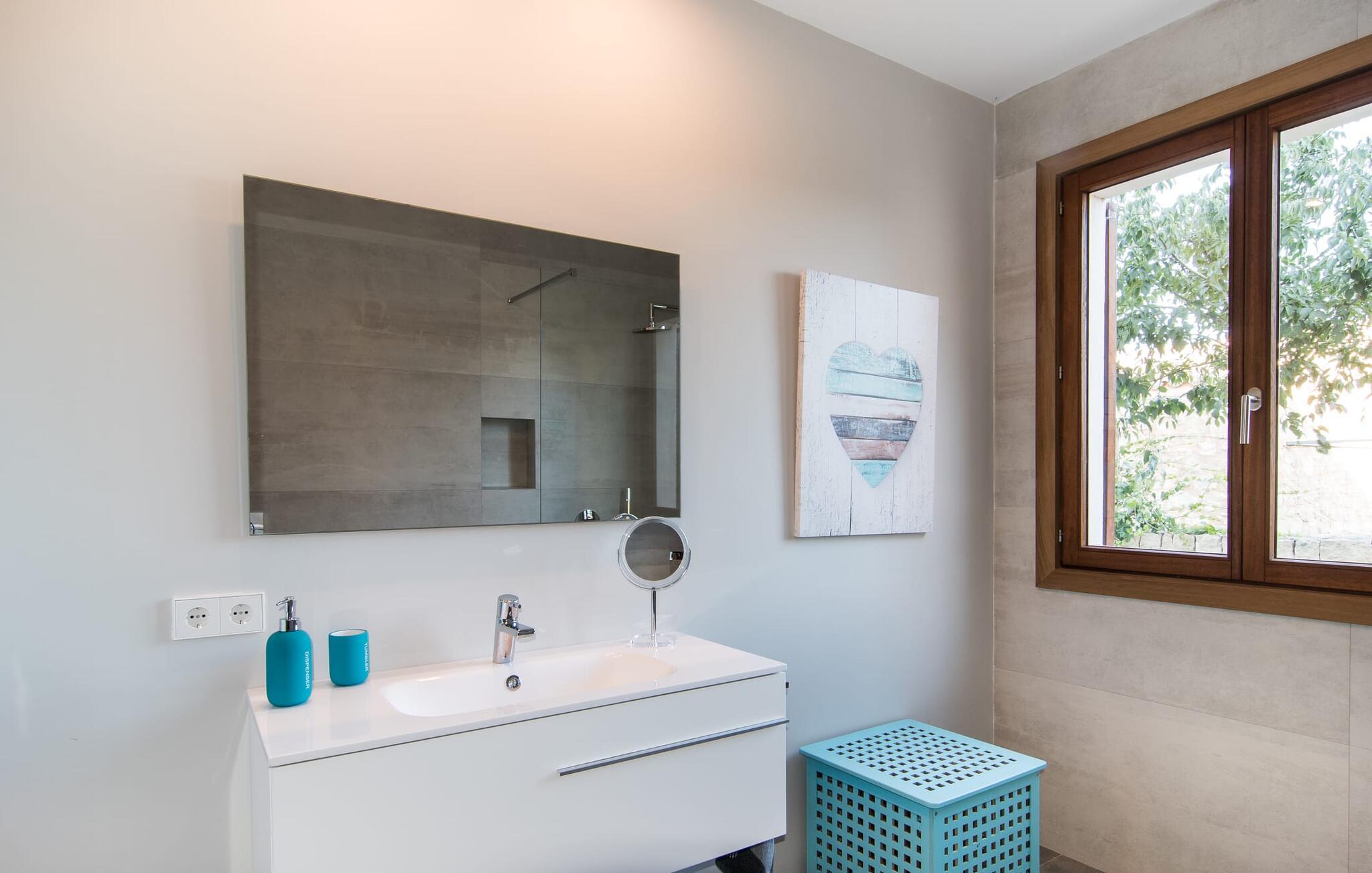 "Es Qanat" er et smukt designet oase, der tilbyder individuelle ferier i rolige omgivelser omgivet af nabovillaer. Ejendommen strækker sig over 10.000 m² og dyrkes økologisk, hvilket understreger dets engagement i bæredygtighed. Ved ankomsten kan gæsterne nemt parkere tre biler og bliver mødt af lavvandede trin, der fører til terrassen, poolen og haven. Den rummelige terrasse foran køkkenet og stuen giver masser af skygge om morgenen, hvilket gør det til et ideelt sted at spise morgenmad under træerne. Swimmingpoolen er ideel for fitness-entusiaster og har udsigt over de nærliggende sandstrande, kun en kort køretur væk. Interiøret byder på rummelige, lyse værelser i to etager. På første sal er der soveværelse med integreret badeværelse og forværelse, der ligner en suite. I stueetagen er der yderligere to soveværelser og et fælles badeværelse med bruser og nem adgang til pool og udendørs bruser. "Es Qanat" er et eksempel på moderne design, især i køkkenområdet, som passer perfekt ind i boligarealet og tilbyder en betagende udsigt over de omkringliggende bakker i Artà og Capdepera. Denne ejendom er en perfekt blanding af komfort, stil og naturlig skønhed. Den ultramoderne villa "Es Qanat" ligger kun 3 km fra Artàs caféer og restauranter og det nærmeste supermarked og tæt på Torrent de Canyamel: kun 10 minutter til Canyamel og de berømte Caves of Artà. Med Ma-4040 kan I nå Capdepera og Cala Ratjada, den naturlige strand Cala Agulla, Cala Son Moll eller den fine sandbugt Cats på ingen tid. Golfentusiaster kan vælge mellem to golfbaner i umiddelbar nærhed.