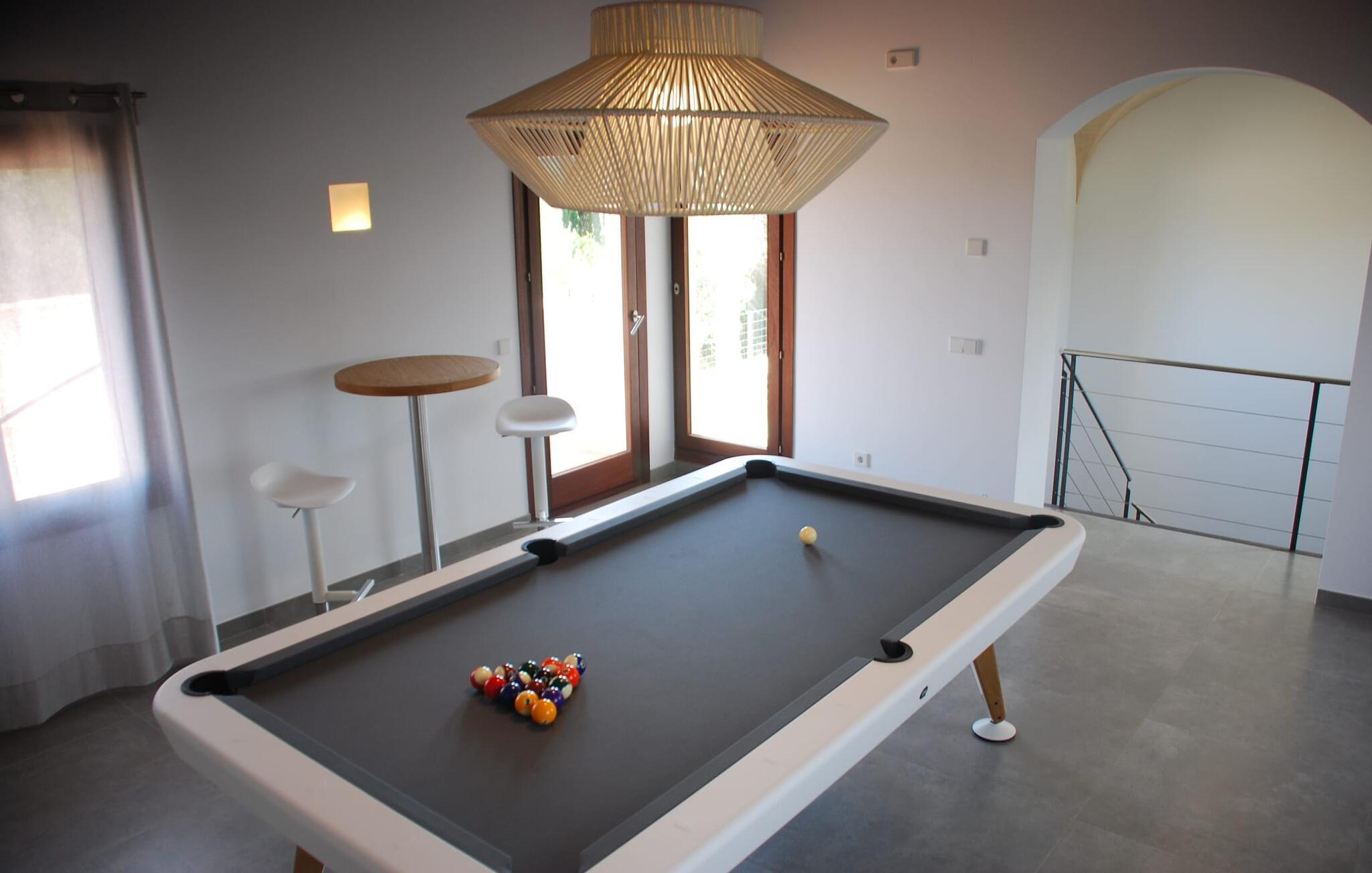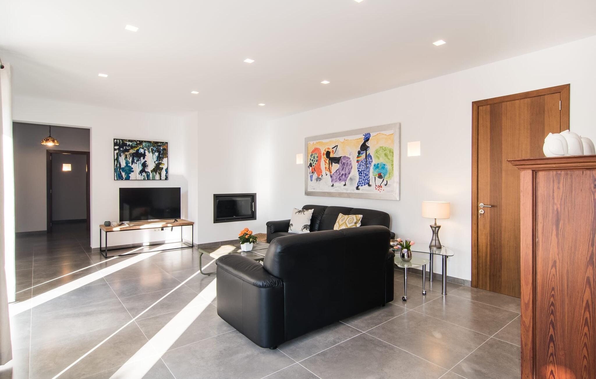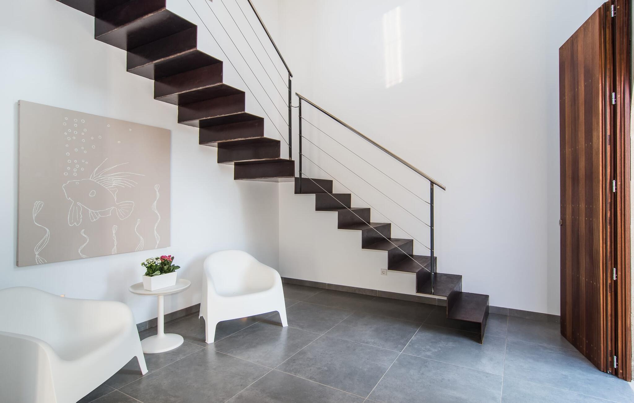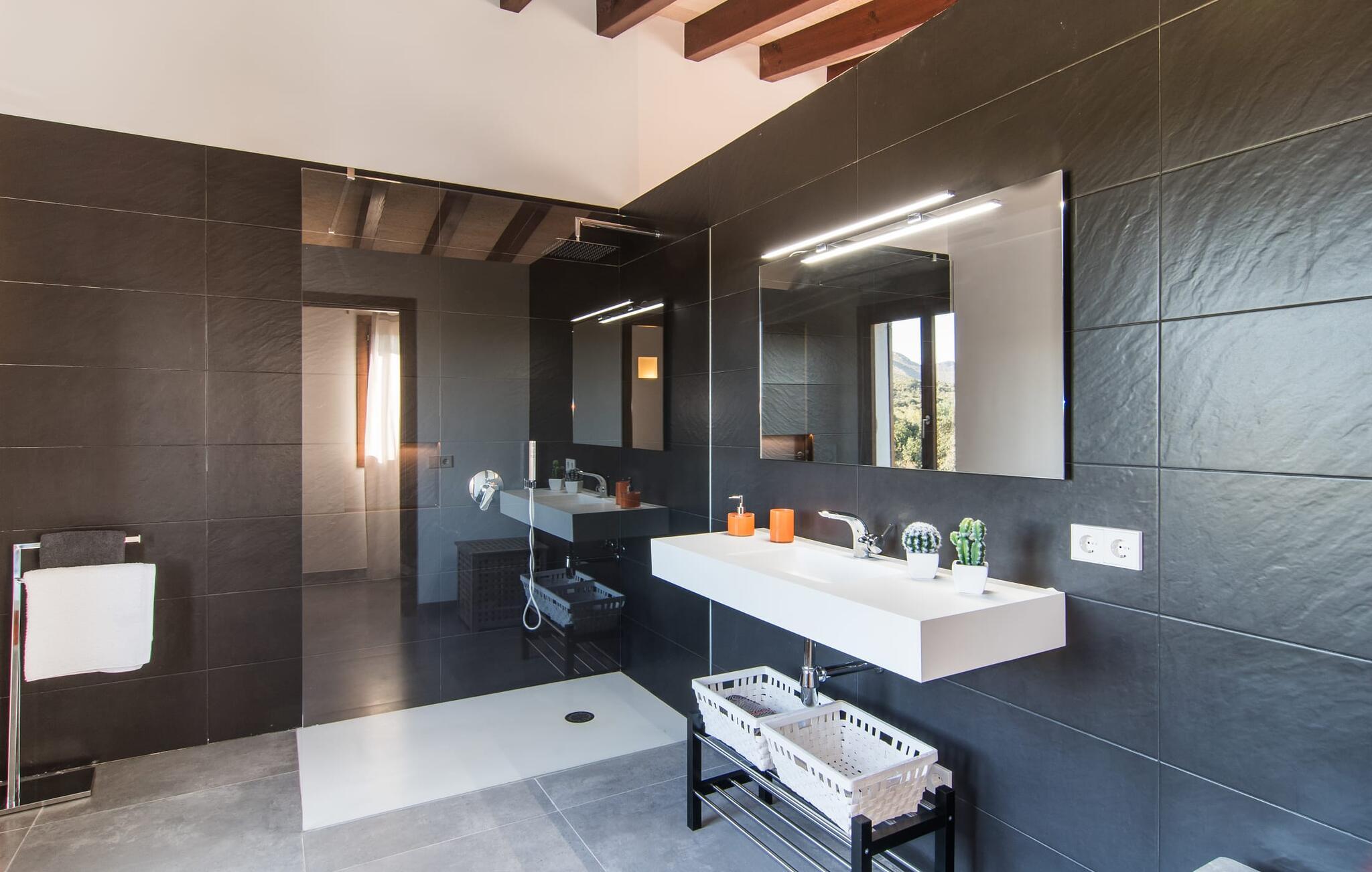 "Es Qanat" er et smukt designet oase, der tilbyder individuelle ferier i rolige omgivelser omgivet af nabovillaer. Ejendommen strækker sig over 10.000 m² og dyrkes økologisk, hvilket understreger dets engagement i bæredygtighed. Ved ankomsten kan gæsterne nemt parkere tre biler og bliver mødt af lavvandede trin, der fører til terrassen, poolen og haven. Den rummelige terrasse foran køkkenet og stuen giver masser af skygge om morgenen, hvilket gør det til et ideelt sted at spise morgenmad under træerne. Swimmingpoolen er ideel for fitness-entusiaster og har udsigt over de nærliggende sandstrande, kun en kort køretur væk. Interiøret byder på rummelige, lyse værelser i to etager. På første sal er der soveværelse med integreret badeværelse og forværelse, der ligner en suite. I stueetagen er der yderligere to soveværelser og et fælles badeværelse med bruser og nem adgang til pool og udendørs bruser. "Es Qanat" er et eksempel på moderne design, især i køkkenområdet, som passer perfekt ind i boligarealet og tilbyder en betagende udsigt over de omkringliggende bakker i Artà og Capdepera. Denne ejendom er en perfekt blanding af komfort, stil og naturlig skønhed. Den ultramoderne villa "Es Qanat" ligger kun 3 km fra Artàs caféer og restauranter og det nærmeste supermarked og tæt på Torrent de Canyamel: kun 10 minutter til Canyamel og de berømte Caves of Artà. Med Ma-4040 kan I nå Capdepera og Cala Ratjada, den naturlige strand Cala Agulla, Cala Son Moll eller den fine sandbugt Cats på ingen tid. Golfentusiaster kan vælge mellem to golfbaner i umiddelbar nærhed.