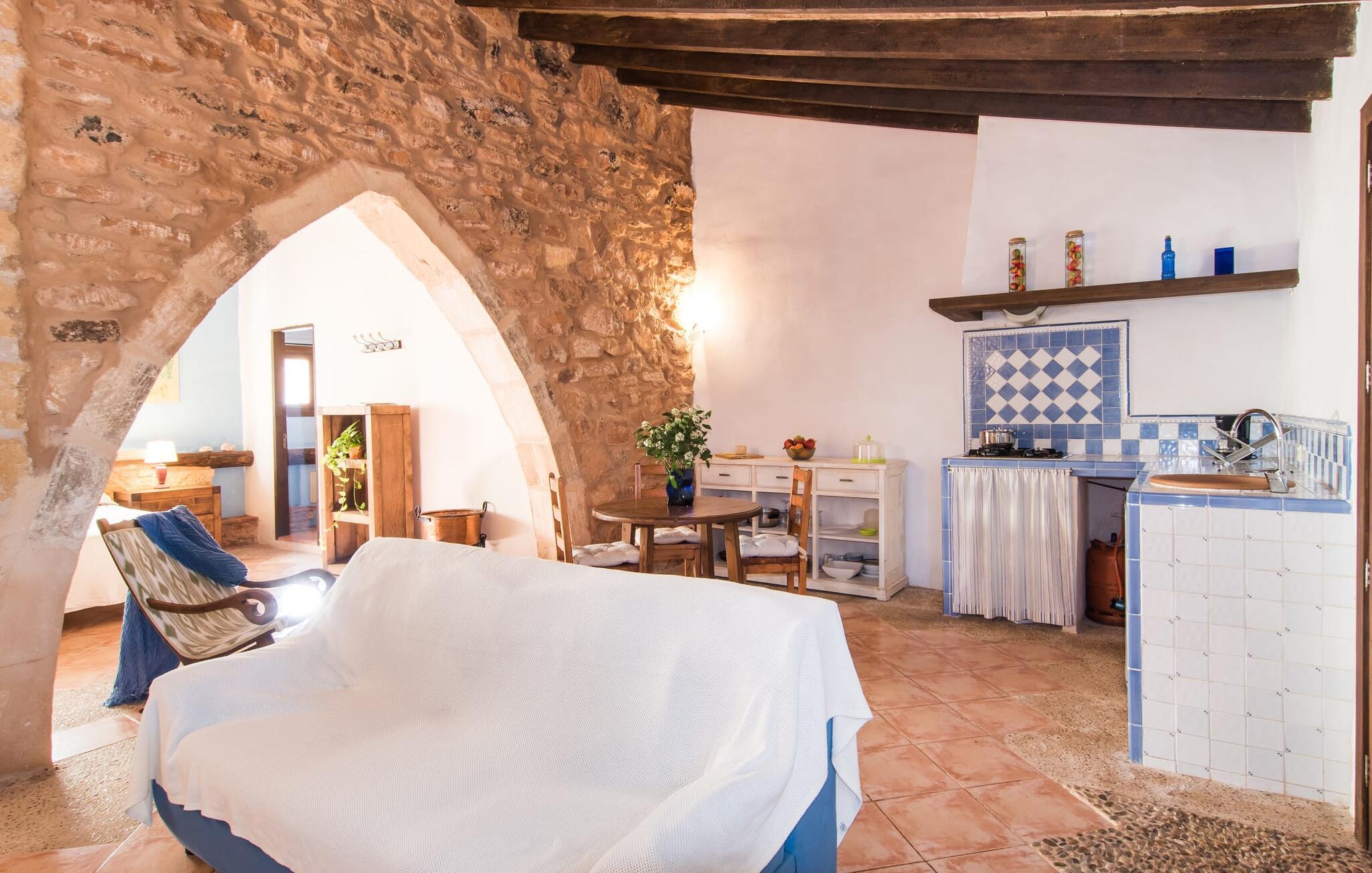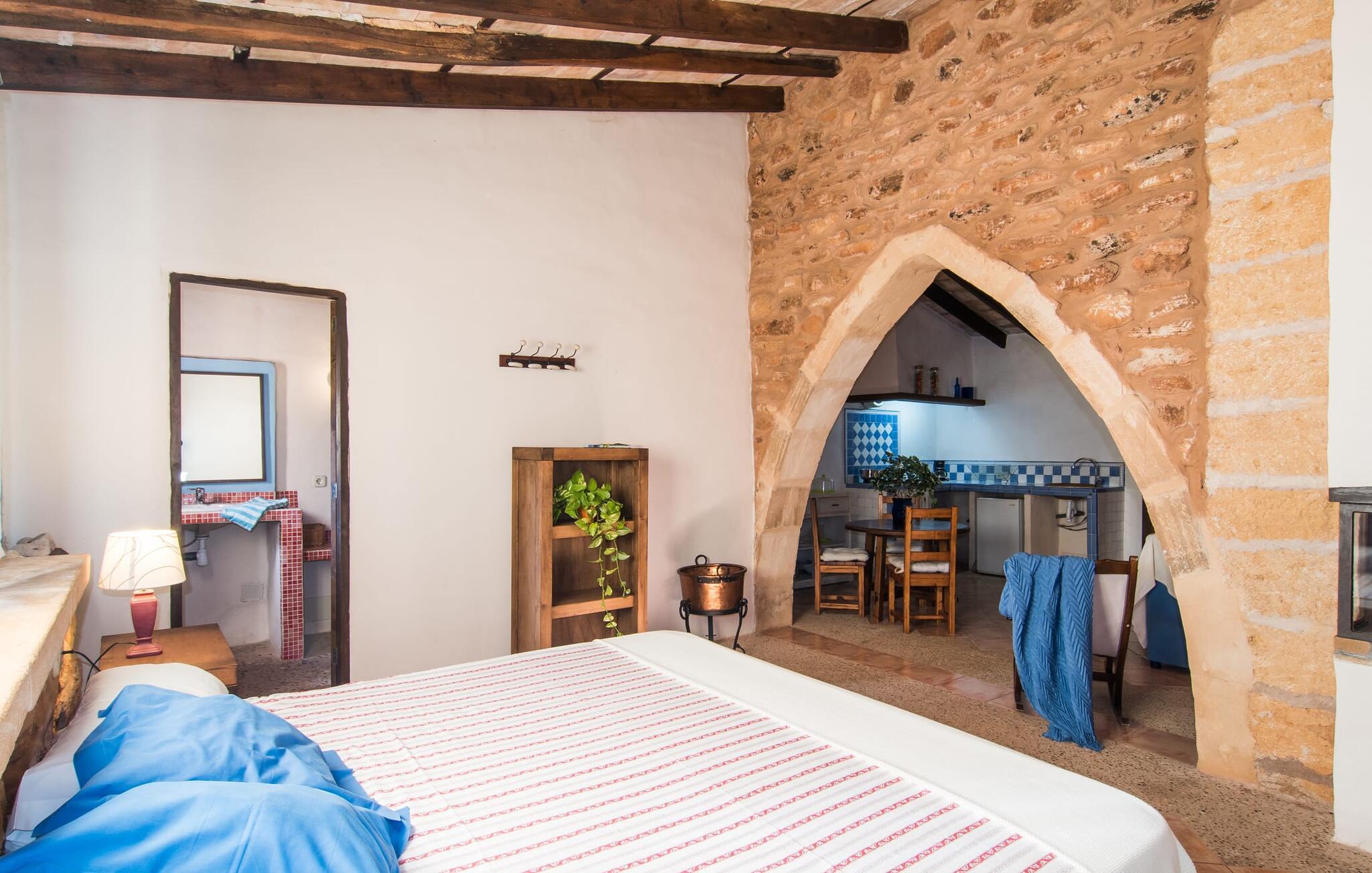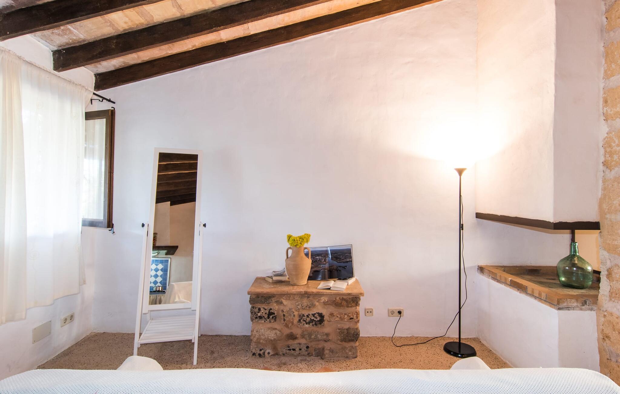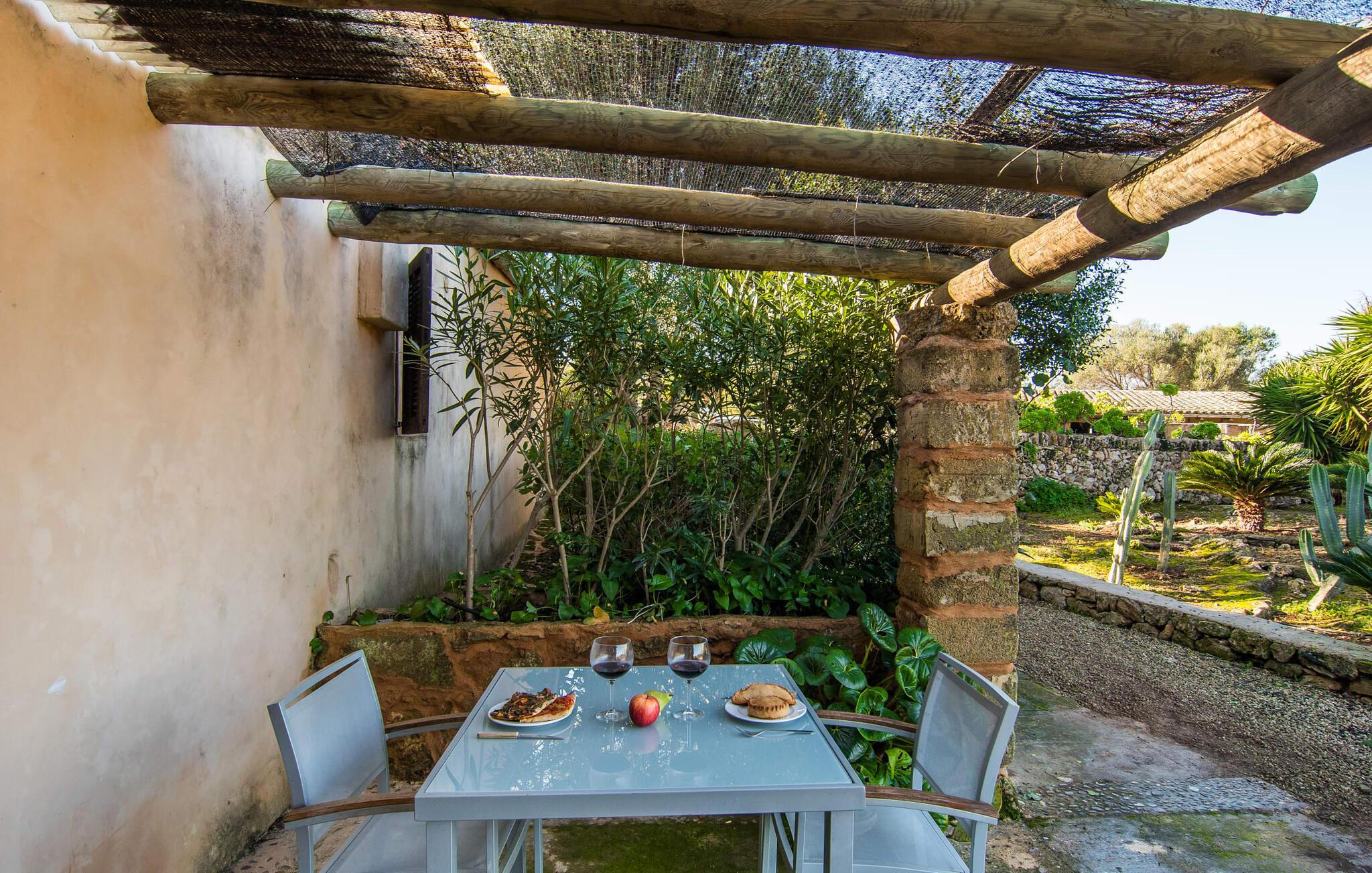 Historisk ejendom på rød jord, dyreelskende gård, idyllisk mandeltræsvilla, komfortabel og hyggelig agroturismo-indkvartering: det er tydeligt, at disse beskrivelser gælder for den røde gård "Es Rafal Roig" med hovedhuset lavet af natursten og tre små udhuse . Der er hele 350.000 m² frodige blomster- og grønne områder at opdage, med masser af detaljer, der vil glæde både unge og gamle. Der er hyggekroge omgivet af kaktusser, palmer, duftende oleander og utallige plantede terracottakrukker, vand fra gårdens egen dybe brønd, solenergi og marsvin, æsler, høns, gæs og skildpadder lever på deres eget territorium. Mens de voksne slapper af ved det 10 m lange, centralt beliggende bassin, kan de små plaske rundt i deres eget bassin bag stenmuren, som man kan holde øje med fra liggestolene. Legepladser med store og små rutsjebaner, sandkasser og udstyr til alle former for boldspil sikrer, at I ikke keder jer og I kan også se landbruget. Stole og borde er spredt rundt på solrige og skyggefulde steder, hvor gæsterne kan holde en picnic eller chatte. Det lille grillhus, et originalt fra oldtiden, kan bruges hver dag og deler pladsen med udetoilet og bruser. Hver enhed har sin egen charme. Den 50 m² store stuelejlighed "Es Nord" imponerer med naturstensbuen, der adskiller opholds- og soveværelserne og skaber en helt speciel rum-æstetik. Her er meget hyggeligt med smukke flodsten i indgangspartiet, åben pejs i hjørnet af lokalet og gyngestol. I kan slappe af på sofaen fra de mange timer i solen og spise indendørs ved spisebordet. I kan nemt tilberede et lille måltid på det fire-bluss gaskomfur i det hvide og blå køkken. Sengen måler 1,50 x 2 m og efterlader stadig god plads i soveværelset, for eksempel til en barneseng. Badeværelset med dagslys og bruser er et sandt blikfang med sine små, røde mosaiksten og lyseblå vægge. Og hvis boligarealet i jeres private hjem ikke er nok for jer, så overvej at forvandle hele ejendommen til jeres blomstrende udendørs ophold, spisestue og legerum. Hvad ville Mallorca være uden mandelblomsterne om foråret og uden den berømte mandelkage? "Es Rafal Roig" er det perfekte sted at opleve begge dele, måske vil ejerne bage noget til jer efter deres familieopskrift. Men også uden for Almendrasæsonen er der talrige muligheder for at opleve og smage på øens specialiteter og delikatesser. I bil (med Ma-3322 i nærheden af villaen) er det ikke langt at nå Manacors historiske centrum, gå en tur gennem gågaden eller det farverige marked. Herfra kan I også tage en stressfri bus eller tog til Palma. På den anden side, godt 15 km væk, venter strandene. Lokalbefolkningen kan lide Son Serra de Marina, det roligste sted i hele Alcúdia-bugten. Det næsten to kilometer lange sandområde mod Colònia de Sant Pere byder på nok solrige steder til alle, og gunstige vinde gør det muligt for surfere at ride blidt på bølgerne. Vandrere kan på den anden side klatre omkring 5 km fra Betlem til Ermita og nyde udsigten over havet. Dette lokale feriehus er en af ni lejeboliger på ejendommen. De hedder “Es Blau”, “Es Verd”, “Es Graner”, “Es Galiner”, “Es Arc”, “Es Cestador”, “Es Nou” og “Es Saboal” og kan alle bookes hos Fincallorca. Bondegårdsferie med komfort. Denne historiske, ejerledede agroturismo-ejendom med sine syv lejligheder med egen forplejning og to gæstecasitas er særdeles familievenlig. Det har et rummeligt fællesområde og en børnezoo. "Es Rafal Roig" er en ægte mallorcaner fra det 12. århundrede, med udsigt over bakkerne i Serra de Llevant. Manacor med sit daglige frugt- og grøntsagsmarked ligger kun 9 km væk. Det er ideelt til større shoppingture, sightseeingture og spisning. På Badia d'Alcúdia mod Son Serra de Marina og Colònia de Sant Pere finder I smukke strande og badeområder, også nogle for de mindste.