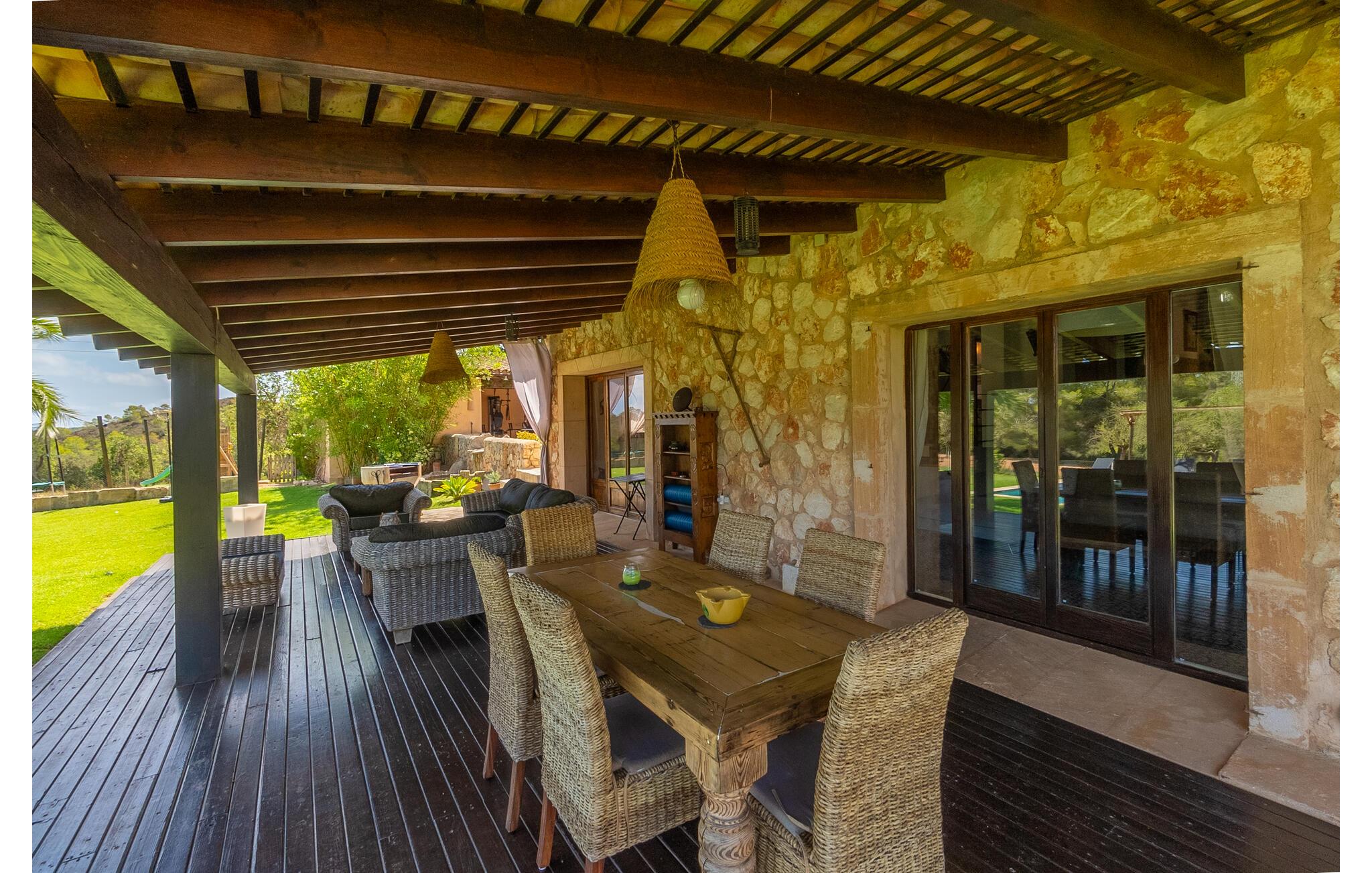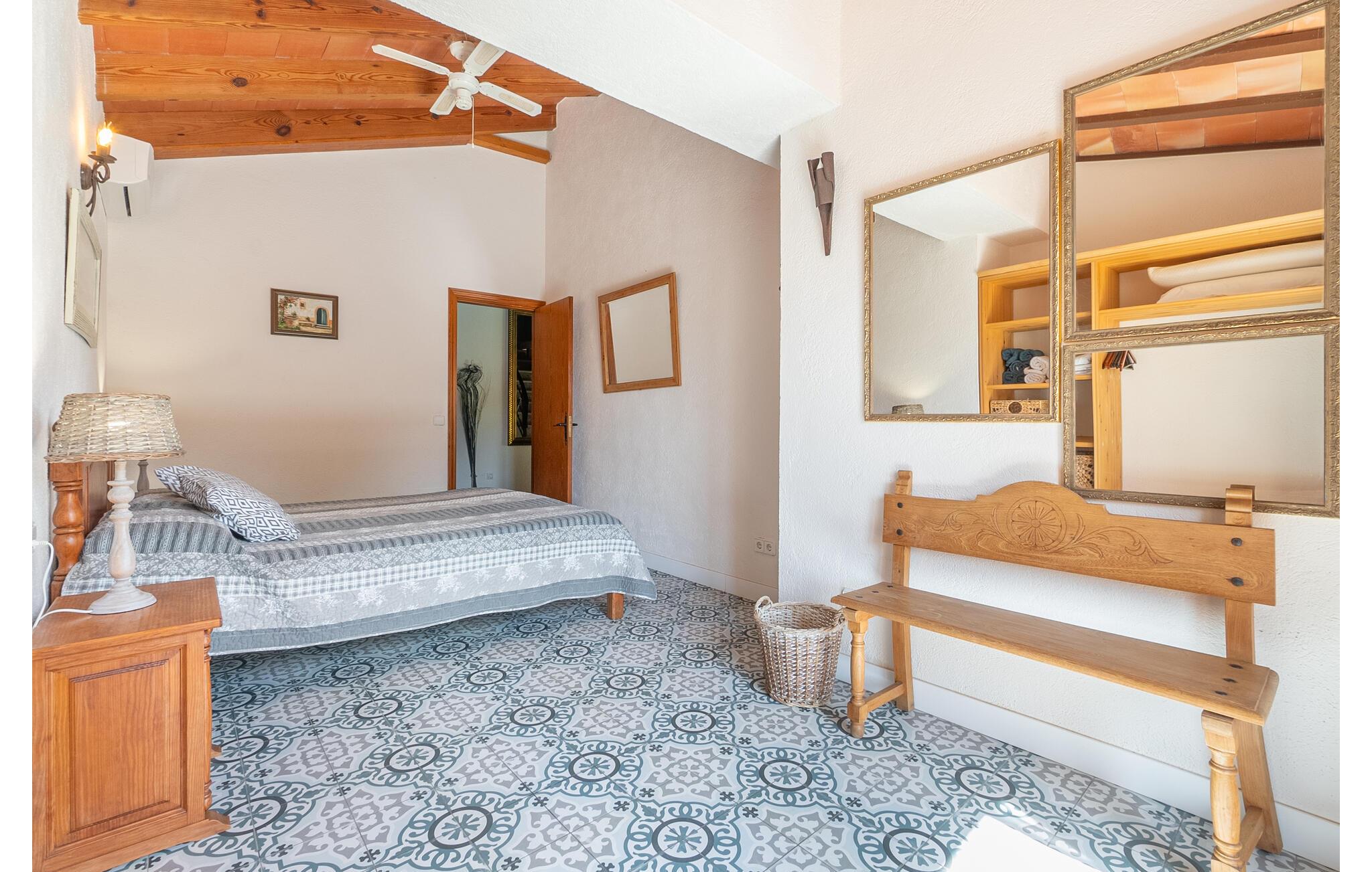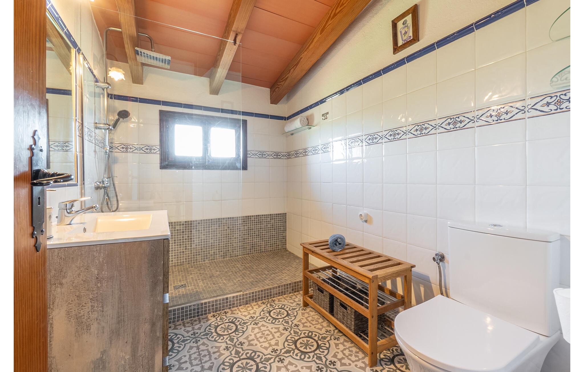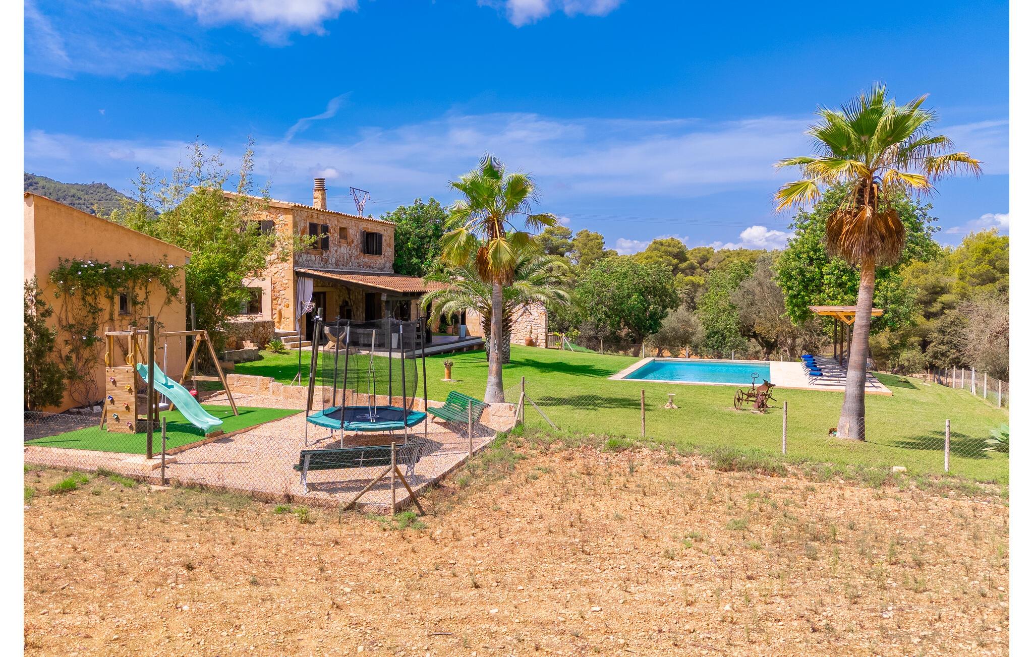 Omgivelserne i den fortryllende villa "Es Sequer" er særligt luksuriøse; På et ejendomsareal på 40.000 m² er I sikker på at finde jeres helt eget yndlingssted. Ejendommen er præget af velholdte græsplæner samt palmer og andre middelhavsplanter. Hjertet af haven ligger på bagsiden af huset: den utrolige, næsten 60 m² store pool med nem trinadgang på den ene side er omgivet af en rummelig plæneterrasse. Her kan I slappe af af hjertens lyst og nyde middelhavslyset og den smukke udsigt, enten i solen eller under en af parasollerne. Afhængigt af tidspunktet på dagen finder I også steder med luftig naturlig skygge, der inviterer jer til at blive hængende. Udearealet rummer bekvemt en udendørs bruser og et gæstetoilet. To trin fra haven fører til den rummelige overdækkede terrasse, som er udstyret med et flot trægulv og førsteklasses havemøbler. Denne terrasse rummer et stort spisebord samt et luksuriøst sofaområde, der forvandler dette område til en ægte "udendørs opholds- og spisestue" i de varmere måneder. Her kan I nyde jeres sofistikerede morgenmad eller afslutte en afslappende dag fuld af ferieaktiviteter. Udsigten over poolen og resten af haven er simpelthen vidunderlig. På varme aftener inviterer den originale grill jer til at forberede og nyde en frisklavet middag med regionale delikatesser sammen med venner. Måske ved at bruge ingredienser købt på markedet tidligere på dagen. Udearealet og poolen er stemningsfuldt oplyst frem til midnat, ligesom den smukke legeplads med klatrestativ, gynger, rutsjebane og trampolin. Alle sportsentusiaster vil finde et fitnessområde i den lille tilstødende bygning med en vægtbænk, håndvægte, pull-up bar og bordtennisbord. Gæsterne kan naturligvis også benytte ejendommens to garager, så I kan parkere jeres lejebil i skyggen. Fra terrassen kommer man ind i huset gennem en bred glasdør. Dette fører ind i den åbne stue/spisestue. Masser af lyst træ, dygtigt kombinerede møbler og terracotta fliser skaber en særlig venlig og hyggelig atmosfære. I vil bare slå jer ned her og frem for alt blive. Forskellige boligetager, forbundet med trætrapper, understreger denne hjemlige og originale atmosfære. Det samme gør den halvhøje glasvæg bag den brede sofa, som afslører udsigten til køkkenet og poolen bagved. Sofahjørnet inviterer til afslapning med en god bog eller en underholdende film. Det massive spisebord lige ved siden af er ideelt til middag for op til seks personer. Køkkenet udstråler simpelthen rummelighed. Udover køleskab, ovn, komfur, opvaskemaskine og mikroovn kan gæsterne også bruge el-komfur, filterkaffemaskine og Nespresso-maskine. Køkken-alrummet byder også på tilstrækkelig opbevaringsplads og et mindre bord med to stole. Soveværelserne imponerer med deres klarhed og masser af hvidt uden unødvendige dikkedarer, suppleret med subtile møbler. Gæsterne har to dobbeltsenge, der måler 1,50 x 2,00 m og to enkeltsenge, der måler 0,90 x 2,00 m i det tredje soveværelse. Det store soveværelse ovenpå er endda udstyret med et andet fjernsyn med satellitforbindelse. Hvis det anmodes om det, kan vi også tilbyde en ekstra seng i soveværelset til et barn, der rejser med jer. De to badeværelser med naturligt lys har et funktionelt og moderne design med flotte gulv- og vægfliser. I kan nemt lade jeres hårtørrer og strygejern blive hjemme og blot bruge dem, der allerede er i villaen. Et andet lille højdepunkt i denne villa: Der er en vinkælder (med rød og mallorcansk vin). Et vinkort med beskrivelser og priser på de fyrre flasker er tilgængeligt på stedet. Hvis I har spørgsmål, er I velkommen til at kontakte ejeren, som bor i nærheden. Portocolom er hjemsted for den største naturlige havn på Mallorca. Selvom den i dag hovedsageligt bruges til privat skibsfart, er den fortsat en vigtig fiskerihavn. Havnepromenaden med sine barer og restauranter indbyder til en lang gåtur. Udover havnen er den gamle bydel også et besøg værd. Den naturlige og beskyttede sandstrand Cala de Marcal er omkring 120 meter bred. I nærheden af boligområdet Sa Punta finder I to andre mindre bugter, på den modsatte side af Portocolom-bugten. Villaen "Es Sequer" ligger i en fortryllende beliggenhed mellem Felanitx og Portocolom på den sydlige del af øen. Ferieboligens omgivelser er præget af natur og plads. I bil kan I nå Portocolom på 10 minutter, hvor der er nogle gode restauranter, især ved havnen. Forskellige smukke bugter, herunder Cala Brafi (10 km), kan hurtigt nås. Afstanden fra villaen til lufthavnen er cirka 52 km.