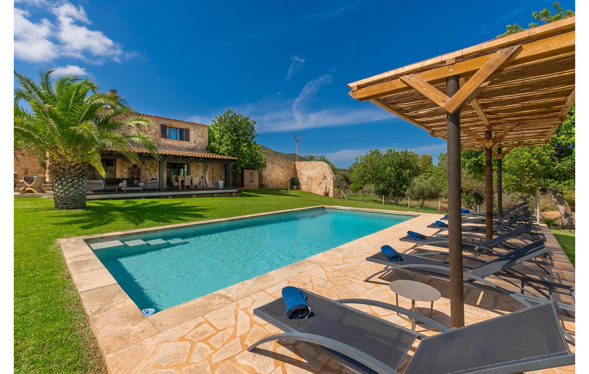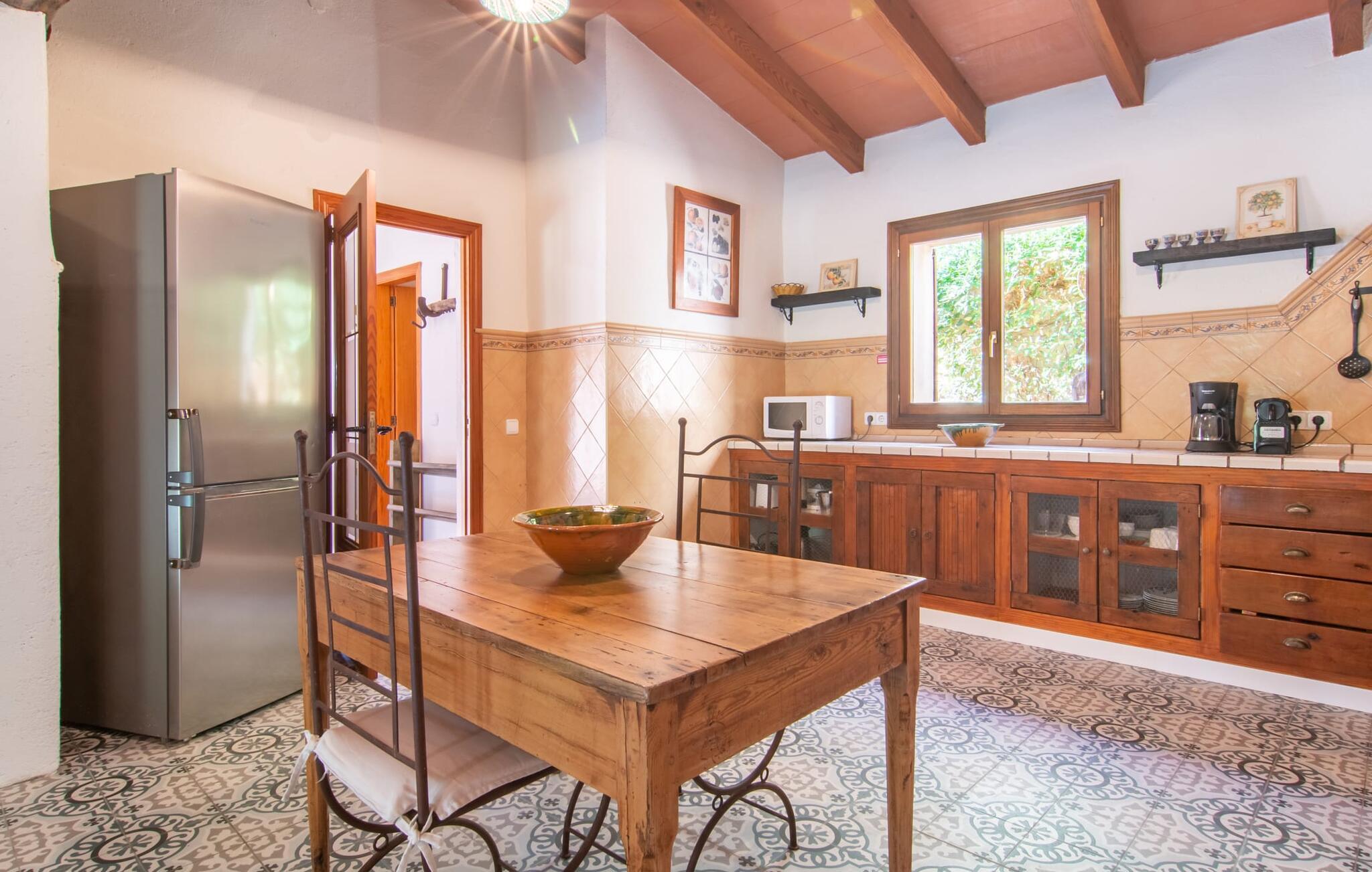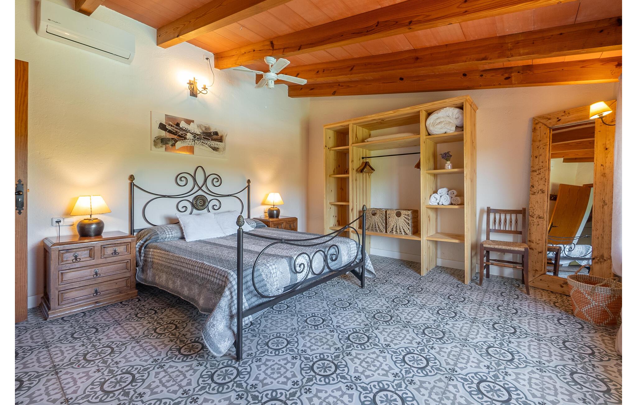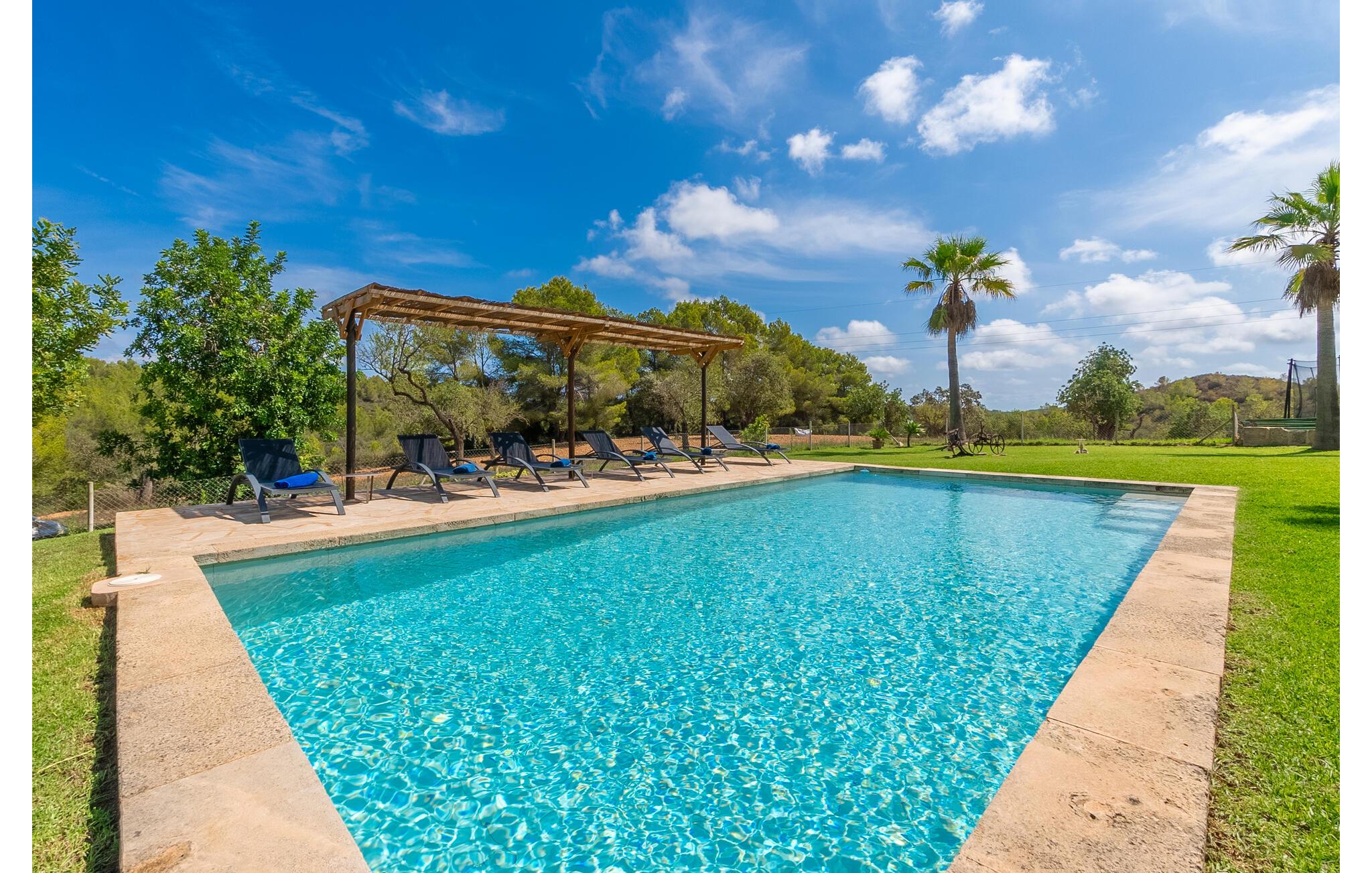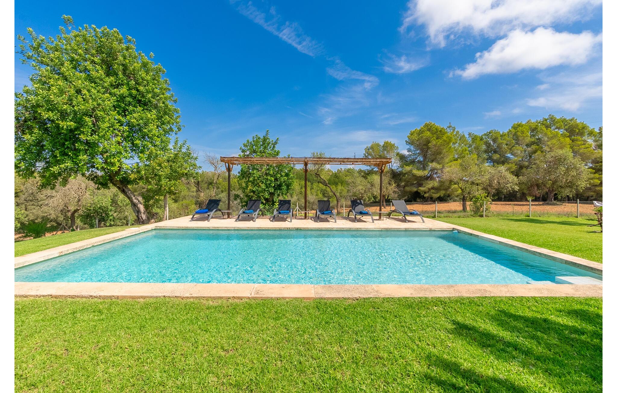 Omgivelserne i den fortryllende villa "Es Sequer" er særligt luksuriøse; På et ejendomsareal på 40.000 m² er I sikker på at finde jeres helt eget yndlingssted. Ejendommen er præget af velholdte græsplæner samt palmer og andre middelhavsplanter. Hjertet af haven ligger på bagsiden af huset: den utrolige, næsten 60 m² store pool med nem trinadgang på den ene side er omgivet af en rummelig plæneterrasse. Her kan I slappe af af hjertens lyst og nyde middelhavslyset og den smukke udsigt, enten i solen eller under en af parasollerne. Afhængigt af tidspunktet på dagen finder I også steder med luftig naturlig skygge, der inviterer jer til at blive hængende. Udearealet rummer bekvemt en udendørs bruser og et gæstetoilet. To trin fra haven fører til den rummelige overdækkede terrasse, som er udstyret med et flot trægulv og førsteklasses havemøbler. Denne terrasse rummer et stort spisebord samt et luksuriøst sofaområde, der forvandler dette område til en ægte "udendørs opholds- og spisestue" i de varmere måneder. Her kan I nyde jeres sofistikerede morgenmad eller afslutte en afslappende dag fuld af ferieaktiviteter. Udsigten over poolen og resten af haven er simpelthen vidunderlig. På varme aftener inviterer den originale grill jer til at forberede og nyde en frisklavet middag med regionale delikatesser sammen med venner. Måske ved at bruge ingredienser købt på markedet tidligere på dagen. Udearealet og poolen er stemningsfuldt oplyst frem til midnat, ligesom den smukke legeplads med klatrestativ, gynger, rutsjebane og trampolin. Alle sportsentusiaster vil finde et fitnessområde i den lille tilstødende bygning med en vægtbænk, håndvægte, pull-up bar og bordtennisbord. Gæsterne kan naturligvis også benytte ejendommens to garager, så I kan parkere jeres lejebil i skyggen. Fra terrassen kommer man ind i huset gennem en bred glasdør. Dette fører ind i den åbne stue/spisestue. Masser af lyst træ, dygtigt kombinerede møbler og terracotta fliser skaber en særlig venlig og hyggelig atmosfære. I vil bare slå jer ned her og frem for alt blive. Forskellige boligetager, forbundet med trætrapper, understreger denne hjemlige og originale atmosfære. Det samme gør den halvhøje glasvæg bag den brede sofa, som afslører udsigten til køkkenet og poolen bagved. Sofahjørnet inviterer til afslapning med en god bog eller en underholdende film. Det massive spisebord lige ved siden af er ideelt til middag for op til seks personer. Køkkenet udstråler simpelthen rummelighed. Udover køleskab, ovn, komfur, opvaskemaskine og mikroovn kan gæsterne også bruge el-komfur, filterkaffemaskine og Nespresso-maskine. Køkken-alrummet byder også på tilstrækkelig opbevaringsplads og et mindre bord med to stole. Soveværelserne imponerer med deres klarhed og masser af hvidt uden unødvendige dikkedarer, suppleret med subtile møbler. Gæsterne har to dobbeltsenge, der måler 1,50 x 2,00 m og to enkeltsenge, der måler 0,90 x 2,00 m i det tredje soveværelse. Det store soveværelse ovenpå er endda udstyret med et andet fjernsyn med satellitforbindelse. Hvis det anmodes om det, kan vi også tilbyde en ekstra seng i soveværelset til et barn, der rejser med jer. De to badeværelser med naturligt lys har et funktionelt og moderne design med flotte gulv- og vægfliser. I kan nemt lade jeres hårtørrer og strygejern blive hjemme og blot bruge dem, der allerede er i villaen. Et andet lille højdepunkt i denne villa: Der er en vinkælder (med rød og mallorcansk vin). Et vinkort med beskrivelser og priser på de fyrre flasker er tilgængeligt på stedet. Hvis I har spørgsmål, er I velkommen til at kontakte ejeren, som bor i nærheden. Portocolom er hjemsted for den største naturlige havn på Mallorca. Selvom den i dag hovedsageligt bruges til privat skibsfart, er den fortsat en vigtig fiskerihavn. Havnepromenaden med sine barer og restauranter indbyder til en lang gåtur. Udover havnen er den gamle bydel også et besøg værd. Den naturlige og beskyttede sandstrand Cala de Marcal er omkring 120 meter bred. I nærheden af boligområdet Sa Punta finder I to andre mindre bugter, på den modsatte side af Portocolom-bugten. Villaen "Es Sequer" ligger i en fortryllende beliggenhed mellem Felanitx og Portocolom på den sydlige del af øen. Ferieboligens omgivelser er præget af natur og plads. I bil kan I nå Portocolom på 10 minutter, hvor der er nogle gode restauranter, især ved havnen. Forskellige smukke bugter, herunder Cala Brafi (10 km), kan hurtigt nås. Afstanden fra villaen til lufthavnen er cirka 52 km.