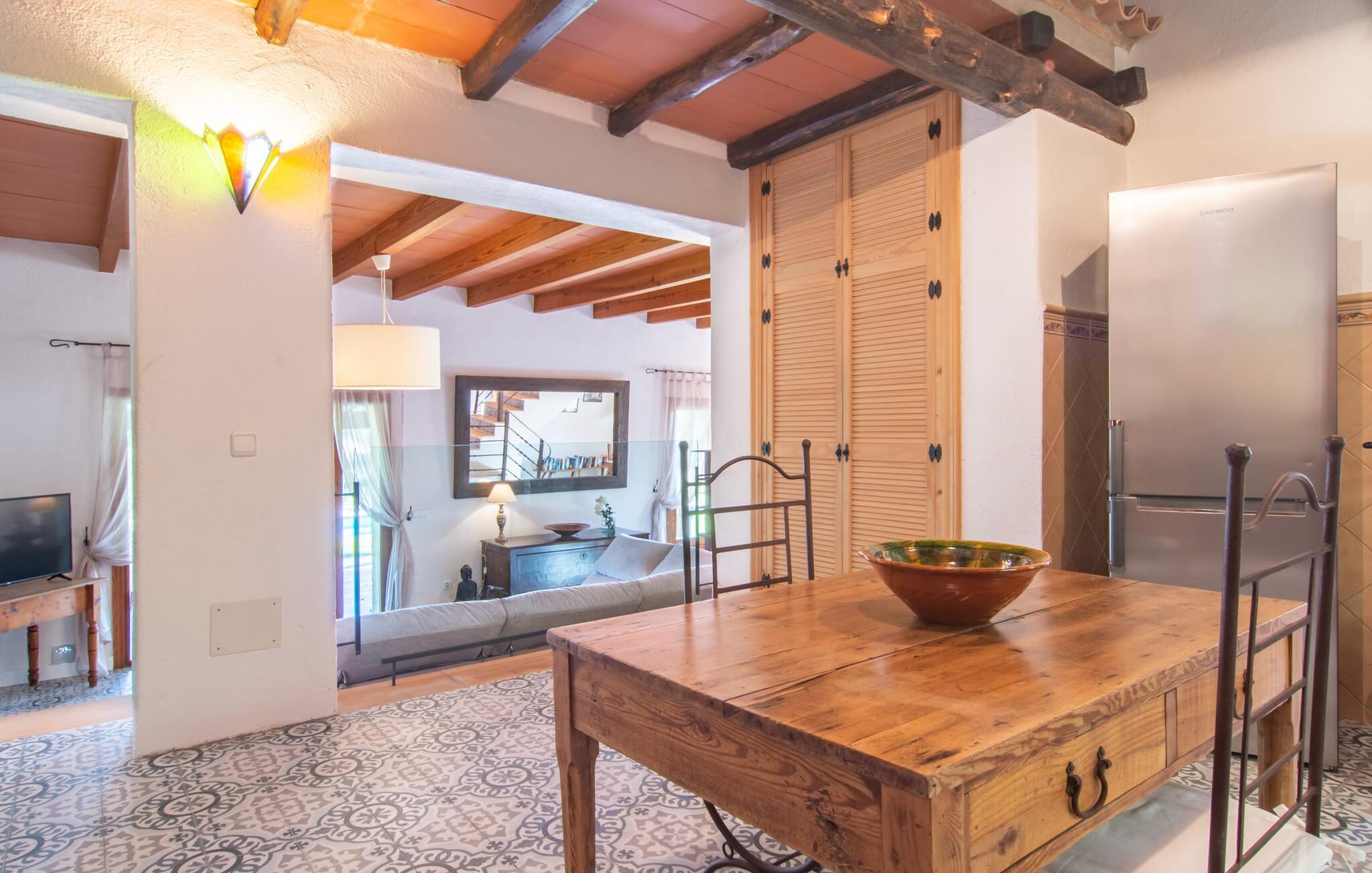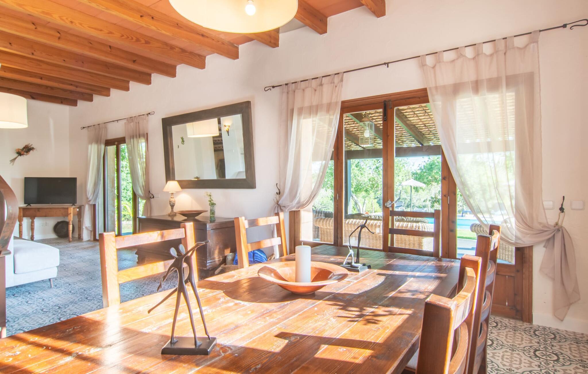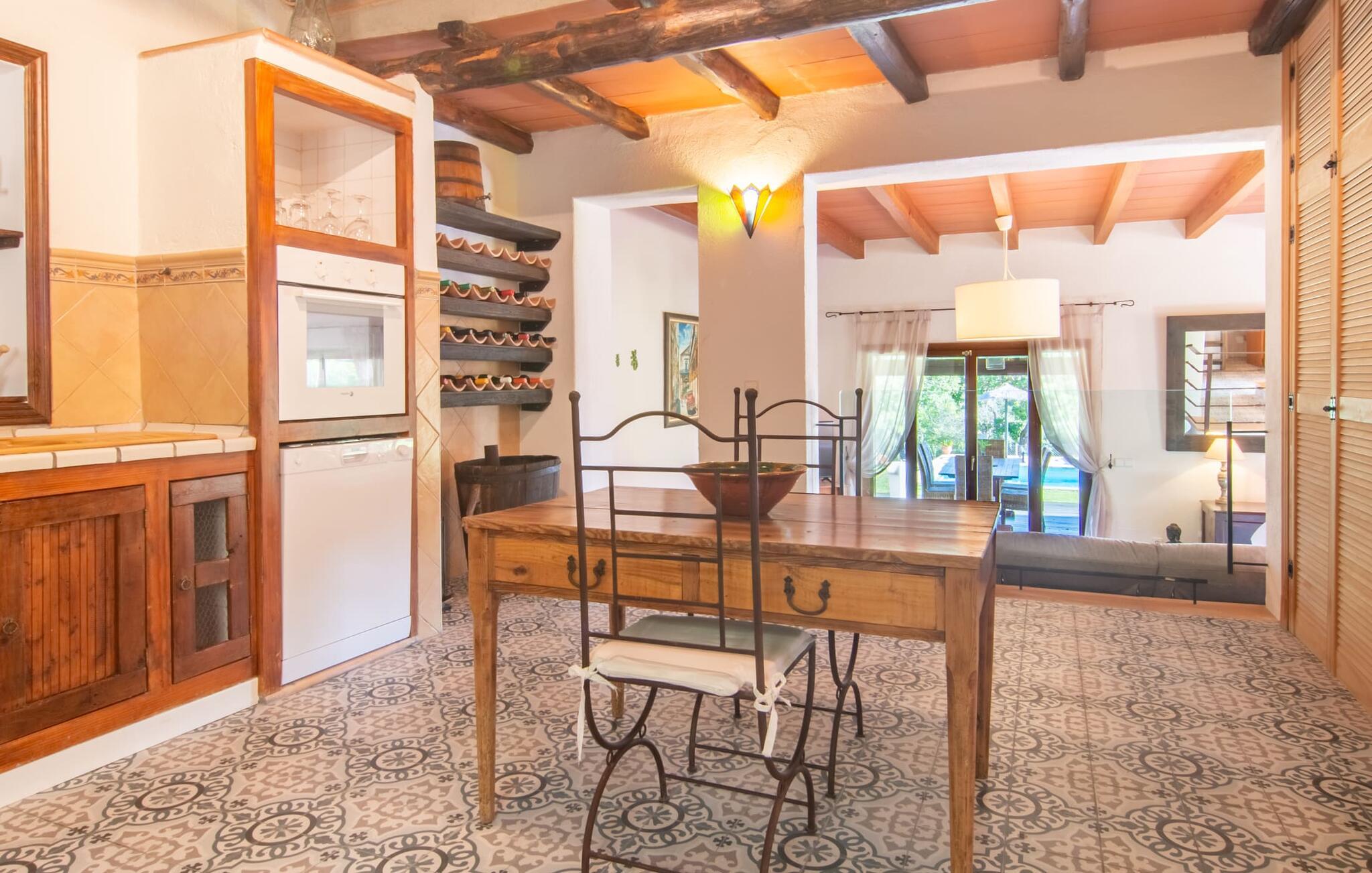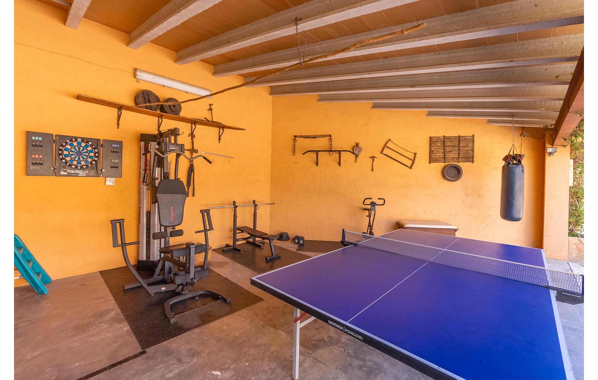 Omgivelserne i den fortryllende villa "Es Sequer" er særligt luksuriøse; På et ejendomsareal på 40.000 m² er I sikker på at finde jeres helt eget yndlingssted. Ejendommen er præget af velholdte græsplæner samt palmer og andre middelhavsplanter. Hjertet af haven ligger på bagsiden af huset: den utrolige, næsten 60 m² store pool med nem trinadgang på den ene side er omgivet af en rummelig plæneterrasse. Her kan I slappe af af hjertens lyst og nyde middelhavslyset og den smukke udsigt, enten i solen eller under en af parasollerne. Afhængigt af tidspunktet på dagen finder I også steder med luftig naturlig skygge, der inviterer jer til at blive hængende. Udearealet rummer bekvemt en udendørs bruser og et gæstetoilet. To trin fra haven fører til den rummelige overdækkede terrasse, som er udstyret med et flot trægulv og førsteklasses havemøbler. Denne terrasse rummer et stort spisebord samt et luksuriøst sofaområde, der forvandler dette område til en ægte "udendørs opholds- og spisestue" i de varmere måneder. Her kan I nyde jeres sofistikerede morgenmad eller afslutte en afslappende dag fuld af ferieaktiviteter. Udsigten over poolen og resten af haven er simpelthen vidunderlig. På varme aftener inviterer den originale grill jer til at forberede og nyde en frisklavet middag med regionale delikatesser sammen med venner. Måske ved at bruge ingredienser købt på markedet tidligere på dagen. Udearealet og poolen er stemningsfuldt oplyst frem til midnat, ligesom den smukke legeplads med klatrestativ, gynger, rutsjebane og trampolin. Alle sportsentusiaster vil finde et fitnessområde i den lille tilstødende bygning med en vægtbænk, håndvægte, pull-up bar og bordtennisbord. Gæsterne kan naturligvis også benytte ejendommens to garager, så I kan parkere jeres lejebil i skyggen. Fra terrassen kommer man ind i huset gennem en bred glasdør. Dette fører ind i den åbne stue/spisestue. Masser af lyst træ, dygtigt kombinerede møbler og terracotta fliser skaber en særlig venlig og hyggelig atmosfære. I vil bare slå jer ned her og frem for alt blive. Forskellige boligetager, forbundet med trætrapper, understreger denne hjemlige og originale atmosfære. Det samme gør den halvhøje glasvæg bag den brede sofa, som afslører udsigten til køkkenet og poolen bagved. Sofahjørnet inviterer til afslapning med en god bog eller en underholdende film. Det massive spisebord lige ved siden af er ideelt til middag for op til seks personer. Køkkenet udstråler simpelthen rummelighed. Udover køleskab, ovn, komfur, opvaskemaskine og mikroovn kan gæsterne også bruge el-komfur, filterkaffemaskine og Nespresso-maskine. Køkken-alrummet byder også på tilstrækkelig opbevaringsplads og et mindre bord med to stole. Soveværelserne imponerer med deres klarhed og masser af hvidt uden unødvendige dikkedarer, suppleret med subtile møbler. Gæsterne har to dobbeltsenge, der måler 1,50 x 2,00 m og to enkeltsenge, der måler 0,90 x 2,00 m i det tredje soveværelse. Det store soveværelse ovenpå er endda udstyret med et andet fjernsyn med satellitforbindelse. Hvis det anmodes om det, kan vi også tilbyde en ekstra seng i soveværelset til et barn, der rejser med jer. De to badeværelser med naturligt lys har et funktionelt og moderne design med flotte gulv- og vægfliser. I kan nemt lade jeres hårtørrer og strygejern blive hjemme og blot bruge dem, der allerede er i villaen. Et andet lille højdepunkt i denne villa: Der er en vinkælder (med rød og mallorcansk vin). Et vinkort med beskrivelser og priser på de fyrre flasker er tilgængeligt på stedet. Hvis I har spørgsmål, er I velkommen til at kontakte ejeren, som bor i nærheden. Portocolom er hjemsted for den største naturlige havn på Mallorca. Selvom den i dag hovedsageligt bruges til privat skibsfart, er den fortsat en vigtig fiskerihavn. Havnepromenaden med sine barer og restauranter indbyder til en lang gåtur. Udover havnen er den gamle bydel også et besøg værd. Den naturlige og beskyttede sandstrand Cala de Marcal er omkring 120 meter bred. I nærheden af boligområdet Sa Punta finder I to andre mindre bugter, på den modsatte side af Portocolom-bugten. Villaen "Es Sequer" ligger i en fortryllende beliggenhed mellem Felanitx og Portocolom på den sydlige del af øen. Ferieboligens omgivelser er præget af natur og plads. I bil kan I nå Portocolom på 10 minutter, hvor der er nogle gode restauranter, især ved havnen. Forskellige smukke bugter, herunder Cala Brafi (10 km), kan hurtigt nås. Afstanden fra villaen til lufthavnen er cirka 52 km.