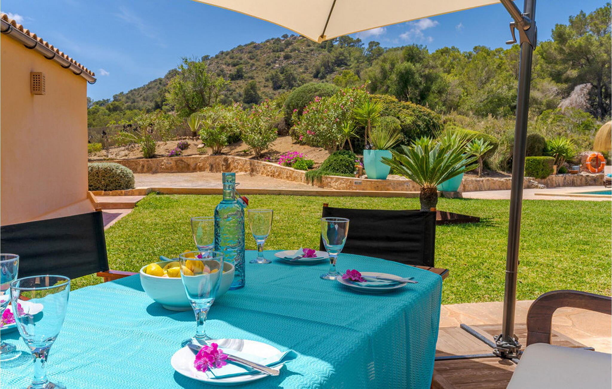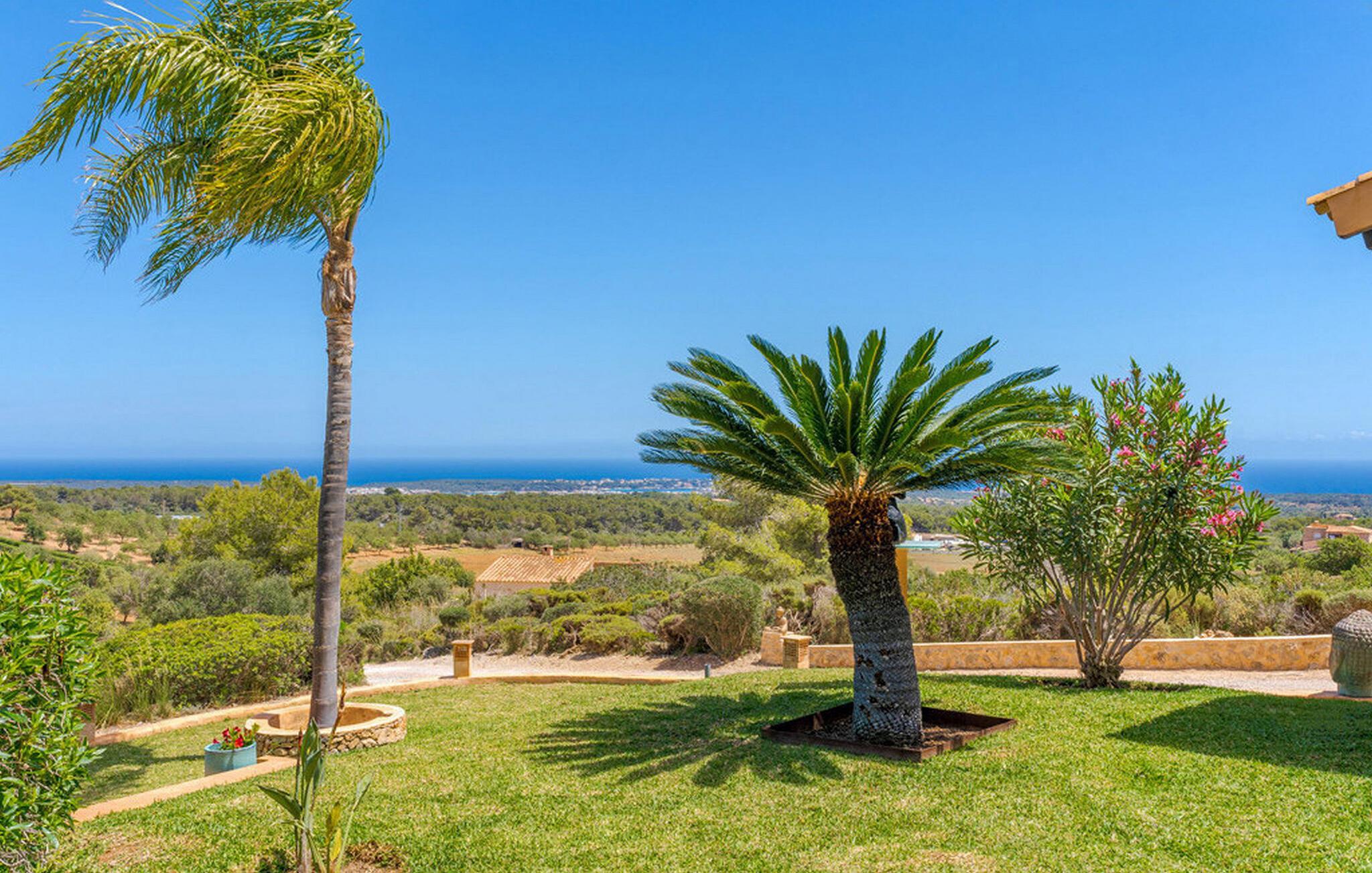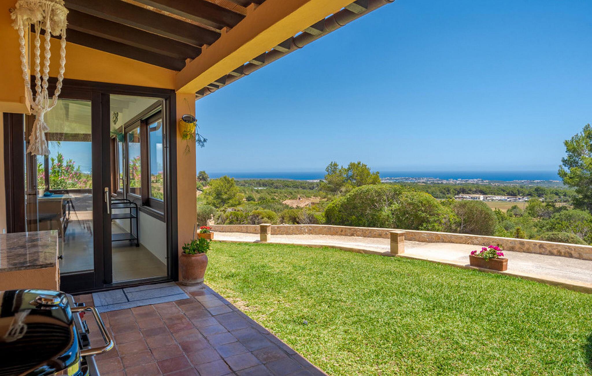 Nyd en fortryllende panoramaudsigt fra den terrakottafarvede finca "Es Socorrat". En solrig og afslappende ferie venter jer i det smukke sydlige Mallorca.