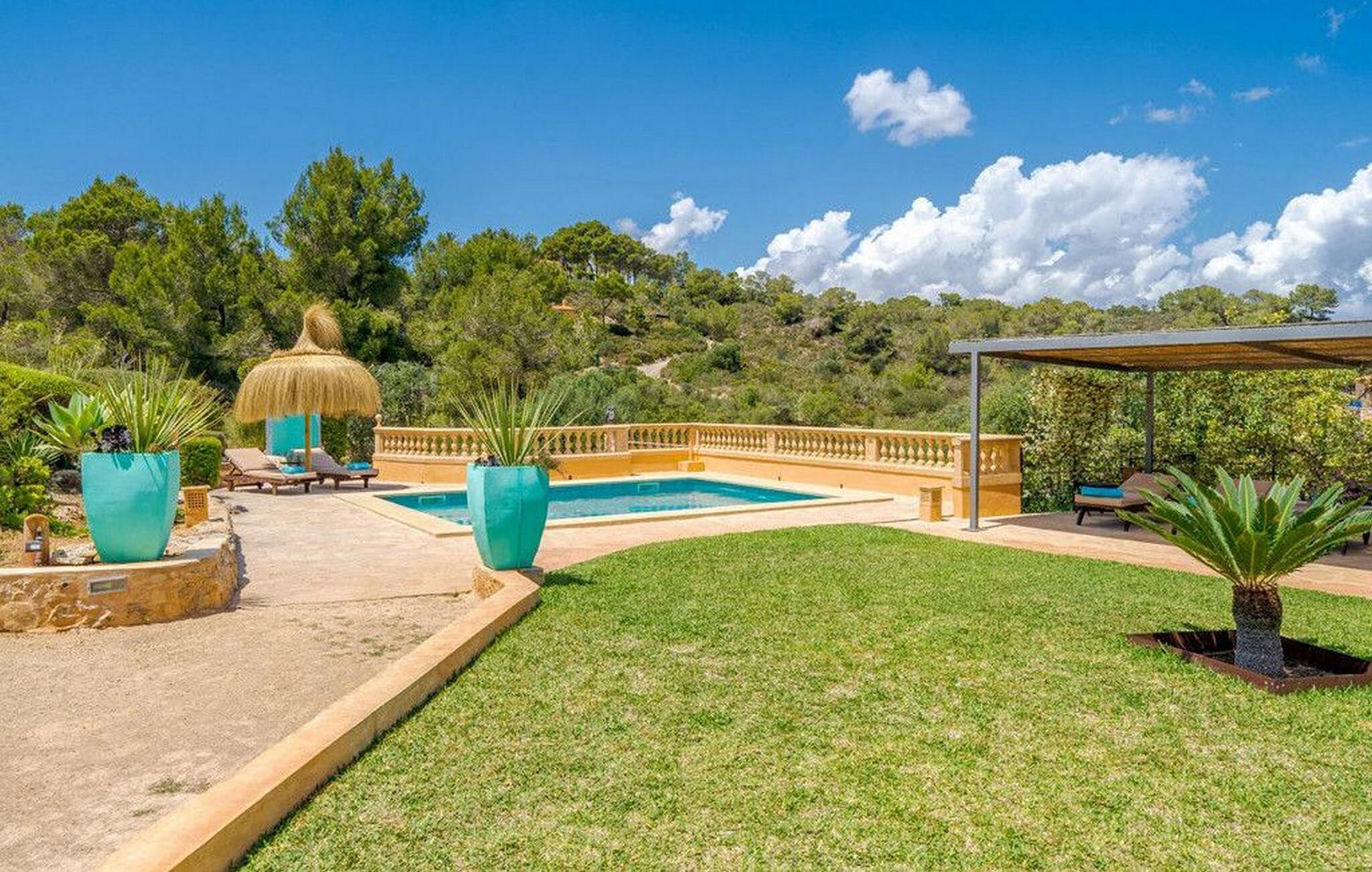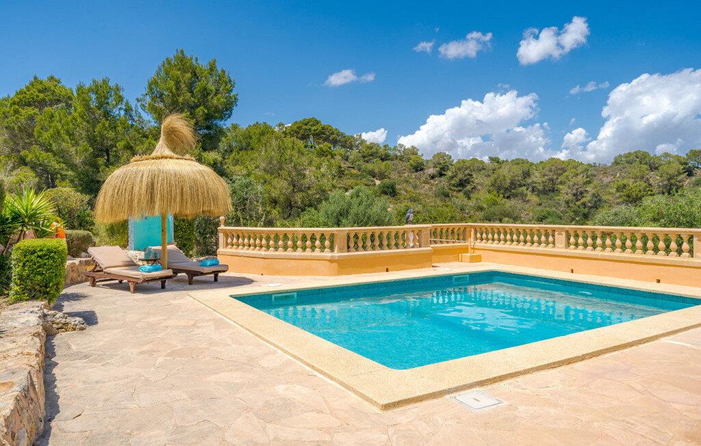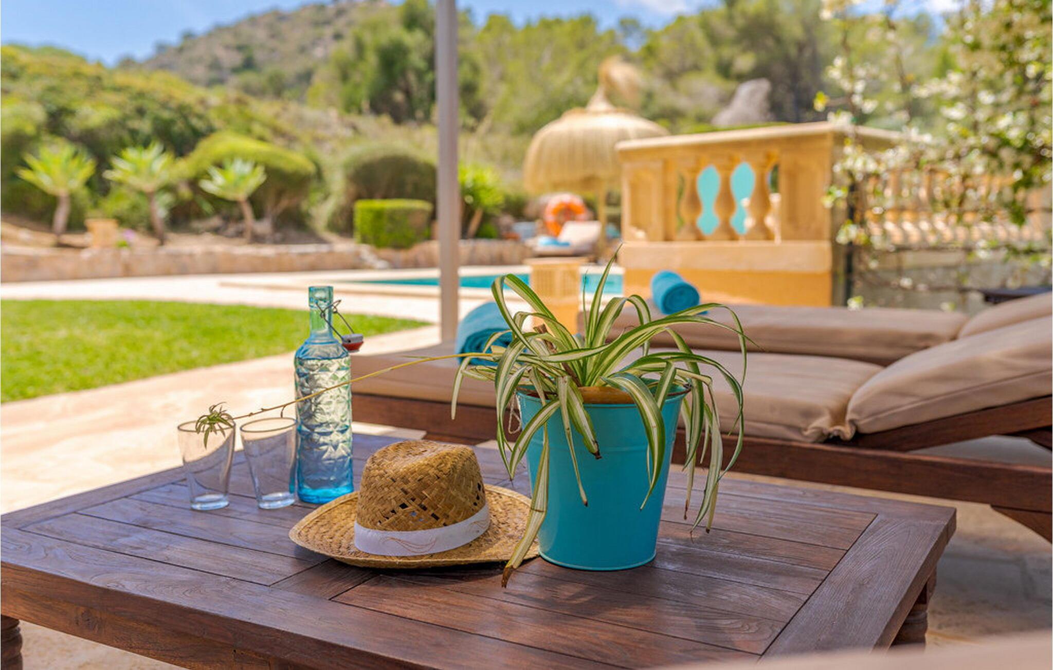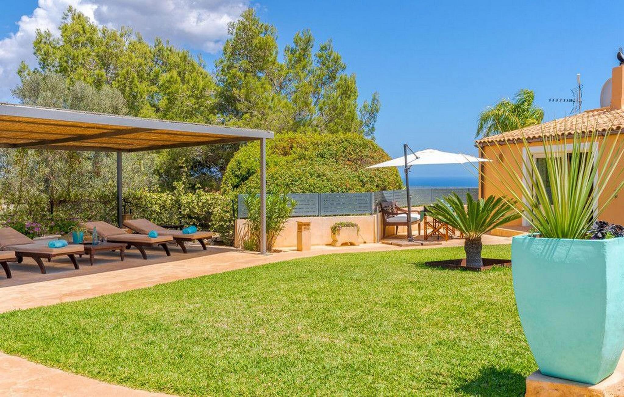 Nyd en fortryllende panoramaudsigt fra den terrakottafarvede finca "Es Socorrat". En solrig og afslappende ferie venter jer i det smukke sydlige Mallorca.