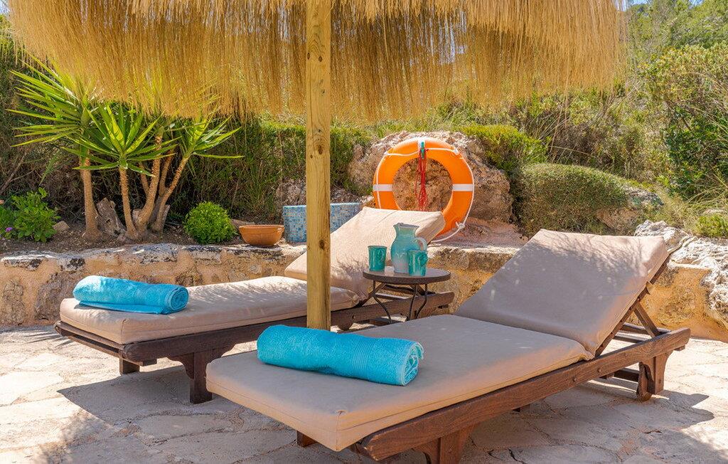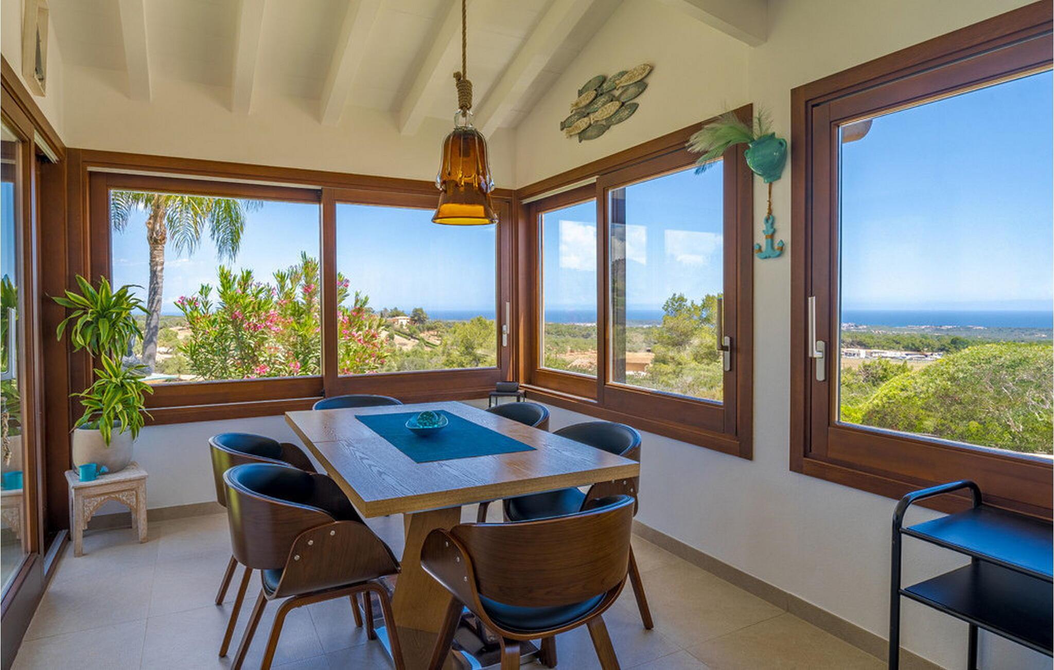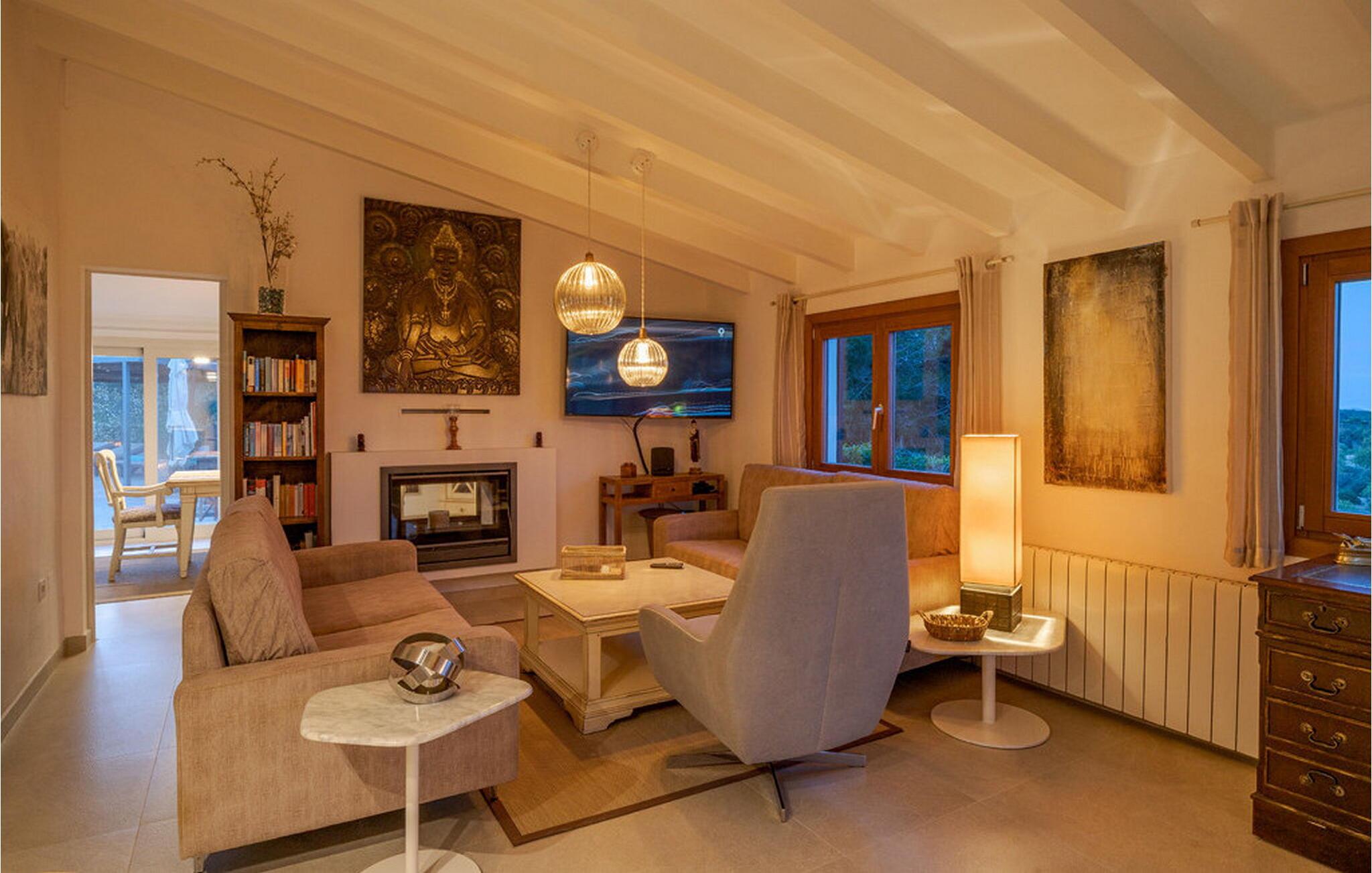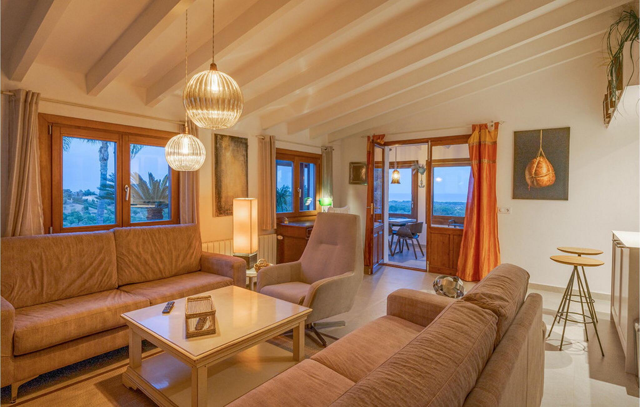 Når I træder ind i "Es Socorrat", vil I blive mødt af en varm og indbydende atmosfære. jeres hjem byder på en blanding af moderne møbler og charmerende landlige detaljer. Hvide vægge, klinkegulve og lyse loftsbjælker skaber en behagelig opholdsatmosfære. Store vinduer fylder rummet med lys og tilbyder en betagende udsigt. Indretningen omfatter en spiseplads med fantastisk havudsigt, en separat spisestue og en hyggelig stue. Det åbne køkken er udstyret med alle nødvendige faciliteter til at tilberede lækre måltider. Ejendommen har tre smukt møblerede soveværelser og to moderne badeværelser, hvilket sikrer et behageligt ophold.