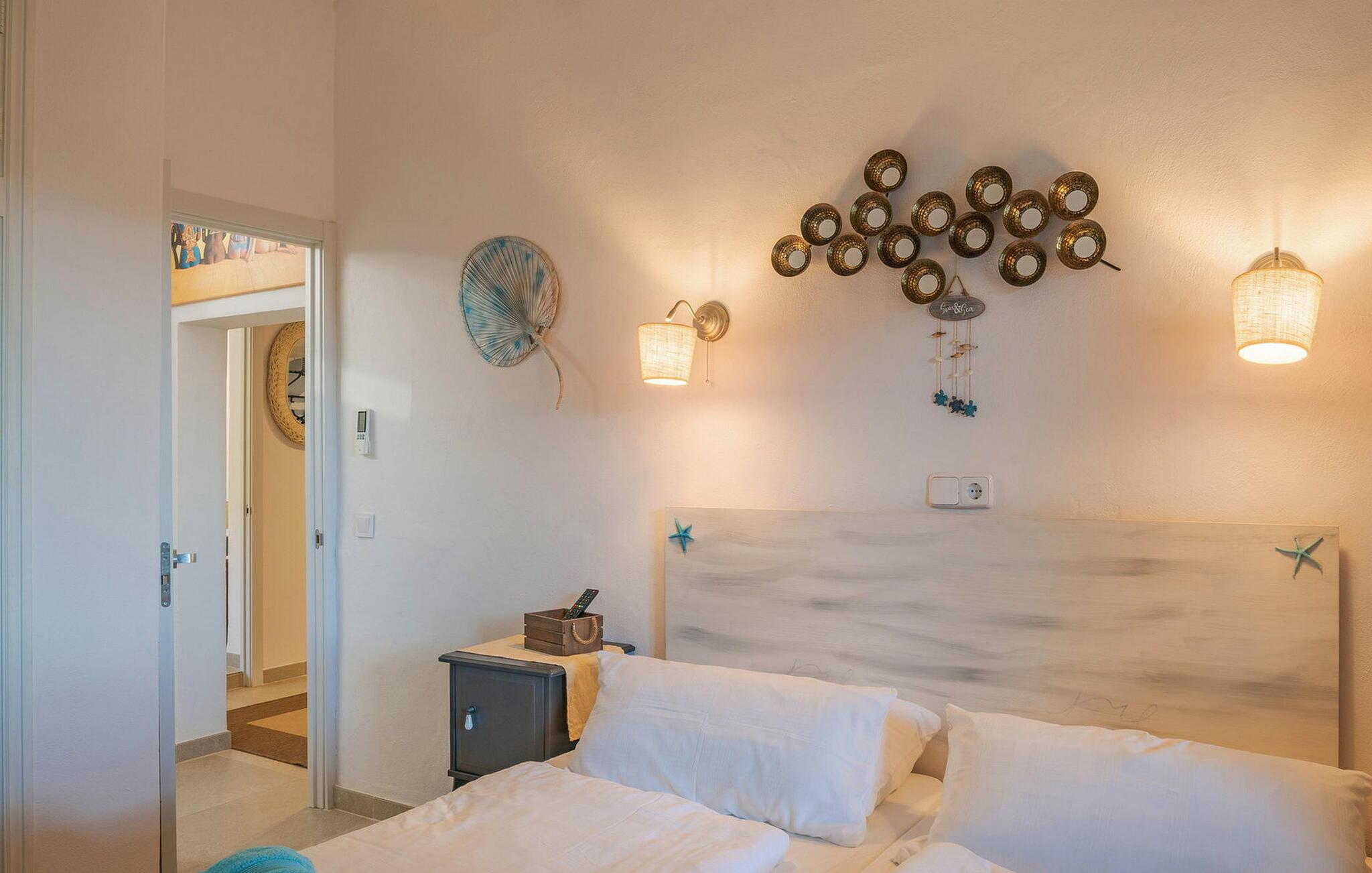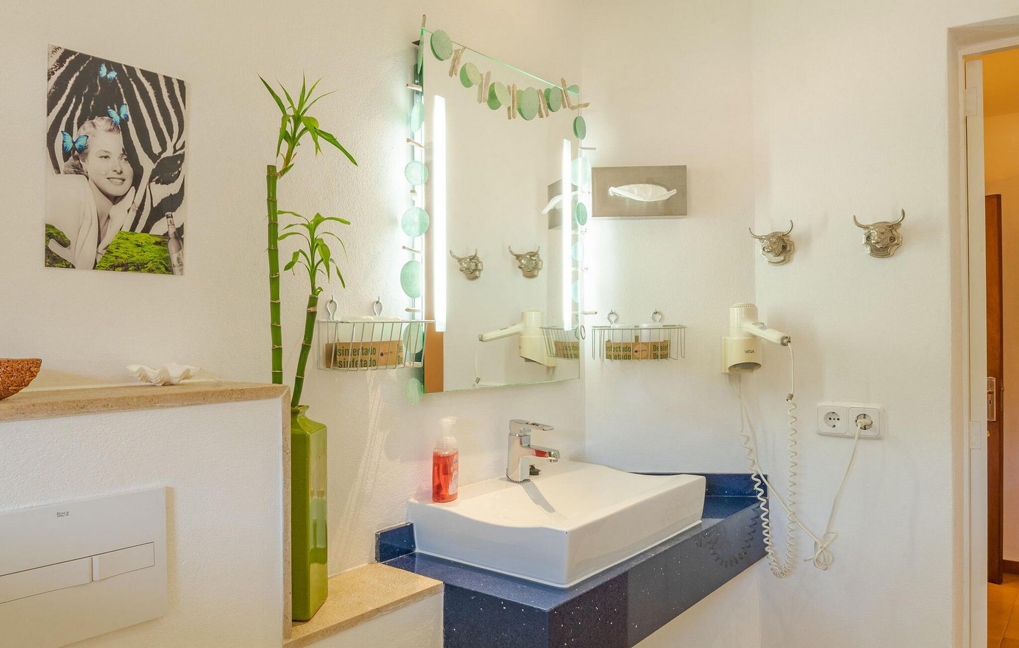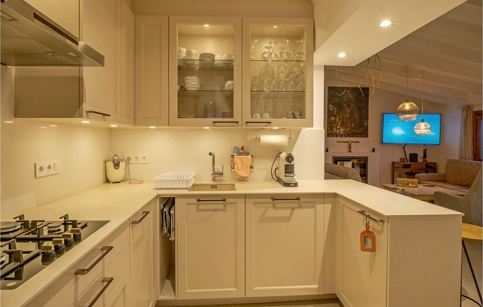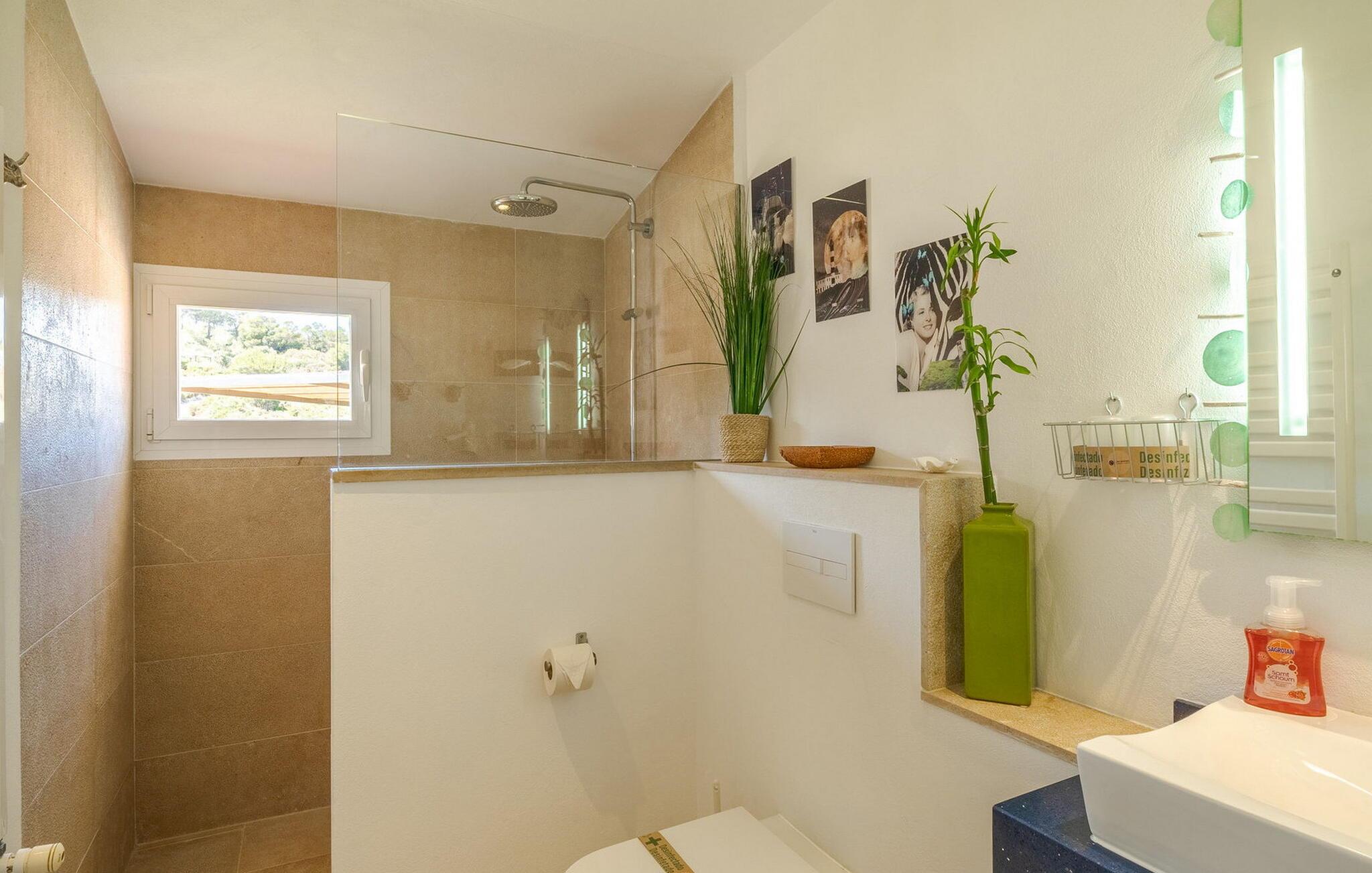 Når I træder ind i "Es Socorrat", vil I blive mødt af en varm og indbydende atmosfære. jeres hjem byder på en blanding af moderne møbler og charmerende landlige detaljer. Hvide vægge, klinkegulve og lyse loftsbjælker skaber en behagelig opholdsatmosfære. Store vinduer fylder rummet med lys og tilbyder en betagende udsigt. Indretningen omfatter en spiseplads med fantastisk havudsigt, en separat spisestue og en hyggelig stue. Det åbne køkken er udstyret med alle nødvendige faciliteter til at tilberede lækre måltider. Ejendommen har tre smukt møblerede soveværelser og to moderne badeværelser, hvilket sikrer et behageligt ophold.