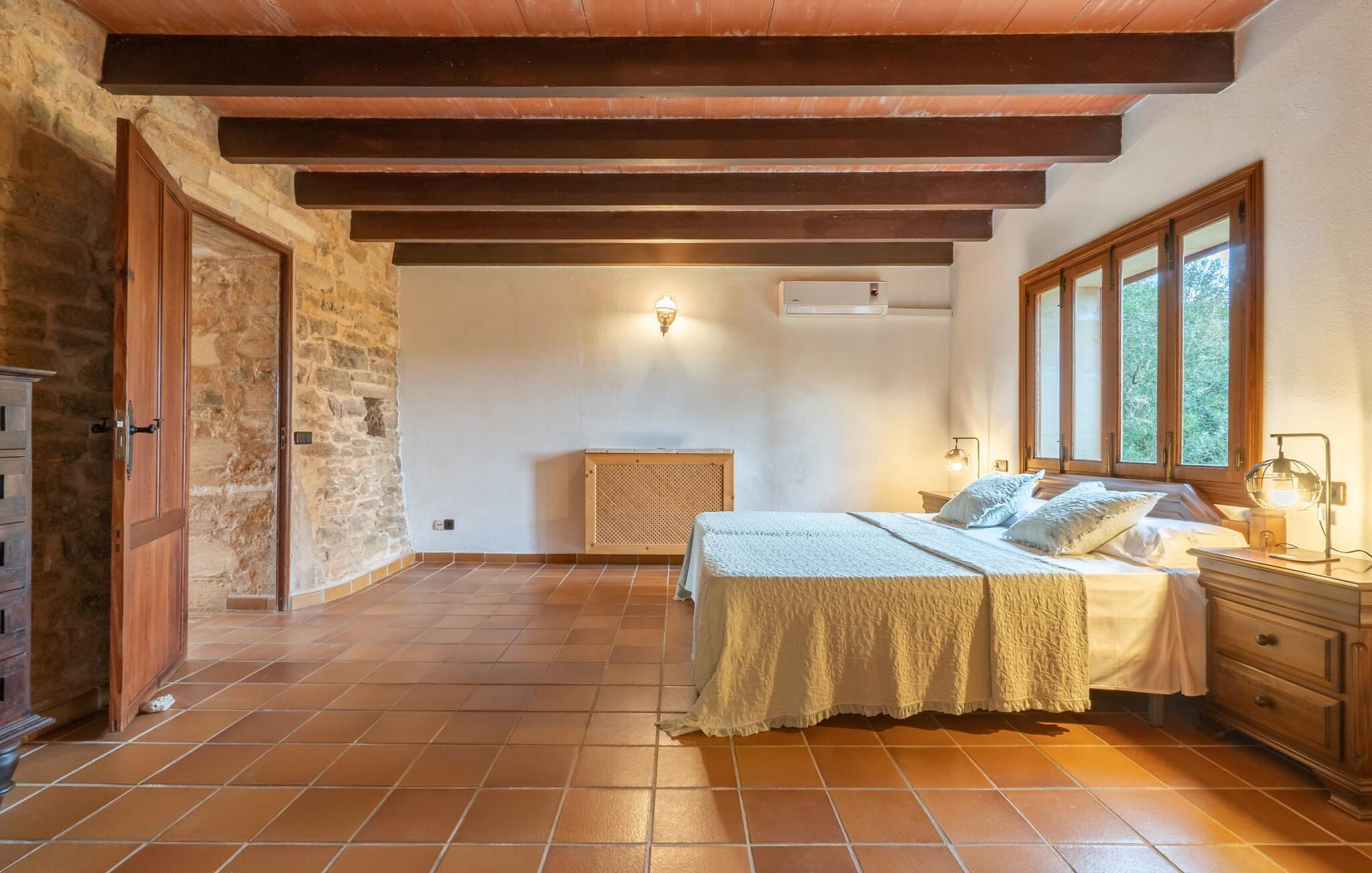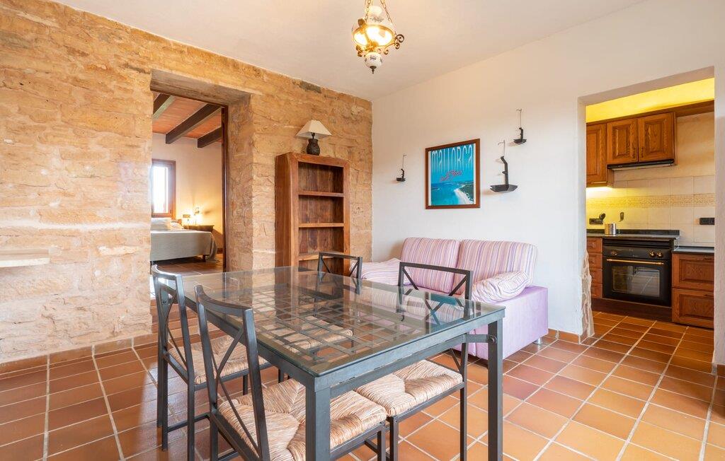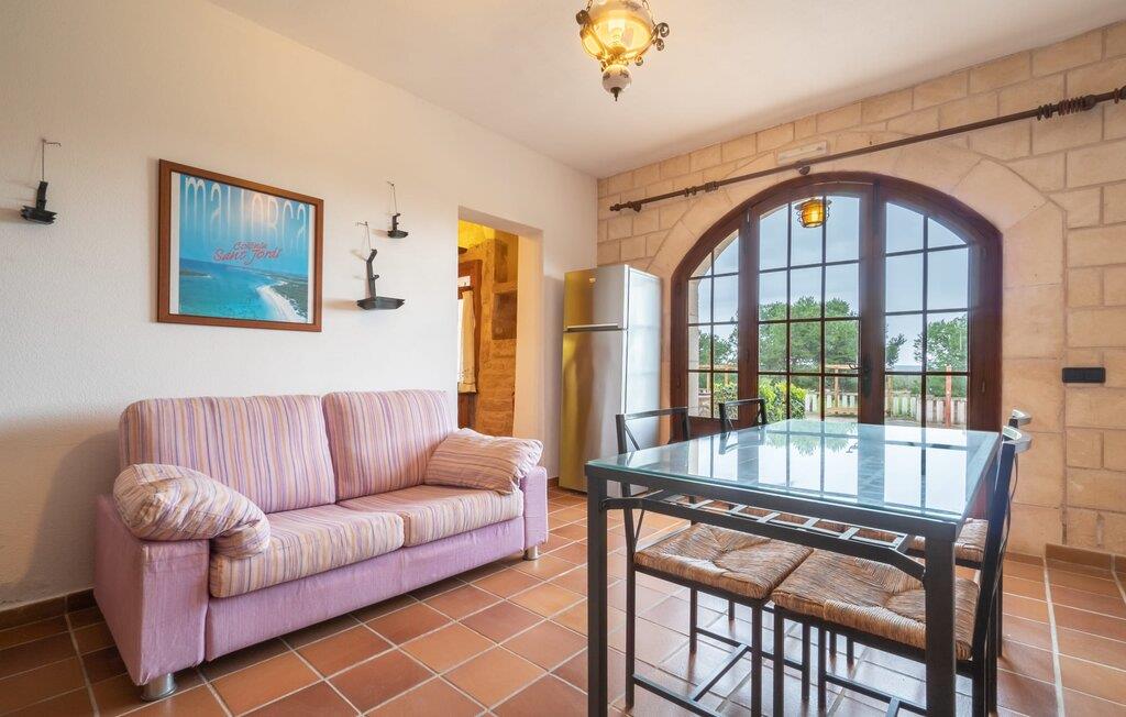Lejligheden "Es Turo Mallorca" er beliggende i landlige omgivelser på den 28.520 m² store ejendom "S'Hort des Turó de ses Illes" og byder på sol, afslapning, privatliv og smuk udsigt. Beliggende på en stor parklignende grund, kan I nyde fredelige gåture og opdage forskellige steder at slappe af. Uanset om det er ved poolen, på græsplænen, under åben himmel eller i den kølige skygge af et træ, vil I finde mange steder at slappe af her. Den indbydende terrasse lige ved siden af lejligheden byder på et skønt sted at sidde udenfor og nyde den rolige atmosfære. Indvendigt har lejligheden en rustik charme med hvide vægge, natursten, terracotta fliser, træ og synlige bjælker, der giver jer en ægte ø-følelse. Den åbne stue og spisestue med et halvåbent køkken tilbyder alt hvad I behøver for et behageligt ophold. Det rummelige soveværelse med en dobbeltseng (to enkeltmadrasser) lover afslappende nætter, badeværelset har naturligt lys og et badekar. Aircondition sikrer komfort hele året rundt. "Es Turo Mallorca" tilbyder en autentisk Mallorca-oplevelse uden at gå på kompromis med komforten. Denne lejlighed er en af fem boligenheder på ejendommen. De er "S'Hort des Turó Cabrera", "S'Hort des Turó Eivissa", "S'Hort des Turó Menorca" og "S'Hort des Turó Formentera" og kan alle bookes via vores hjemmeside. Ferielejligheden "Es Turo Mallorca" ligger kun 3 km sydvest for Ses Salines. Takket være den strategisk gode beliggenhed kan omkringliggende landsbyer og strande også nås hurtigt. Colonia de Sant Jordi (ca. 2,7 km) har to smukke sandstrande, den nordlige, Es Trenc, er den største naturlige strand på Mallorca.