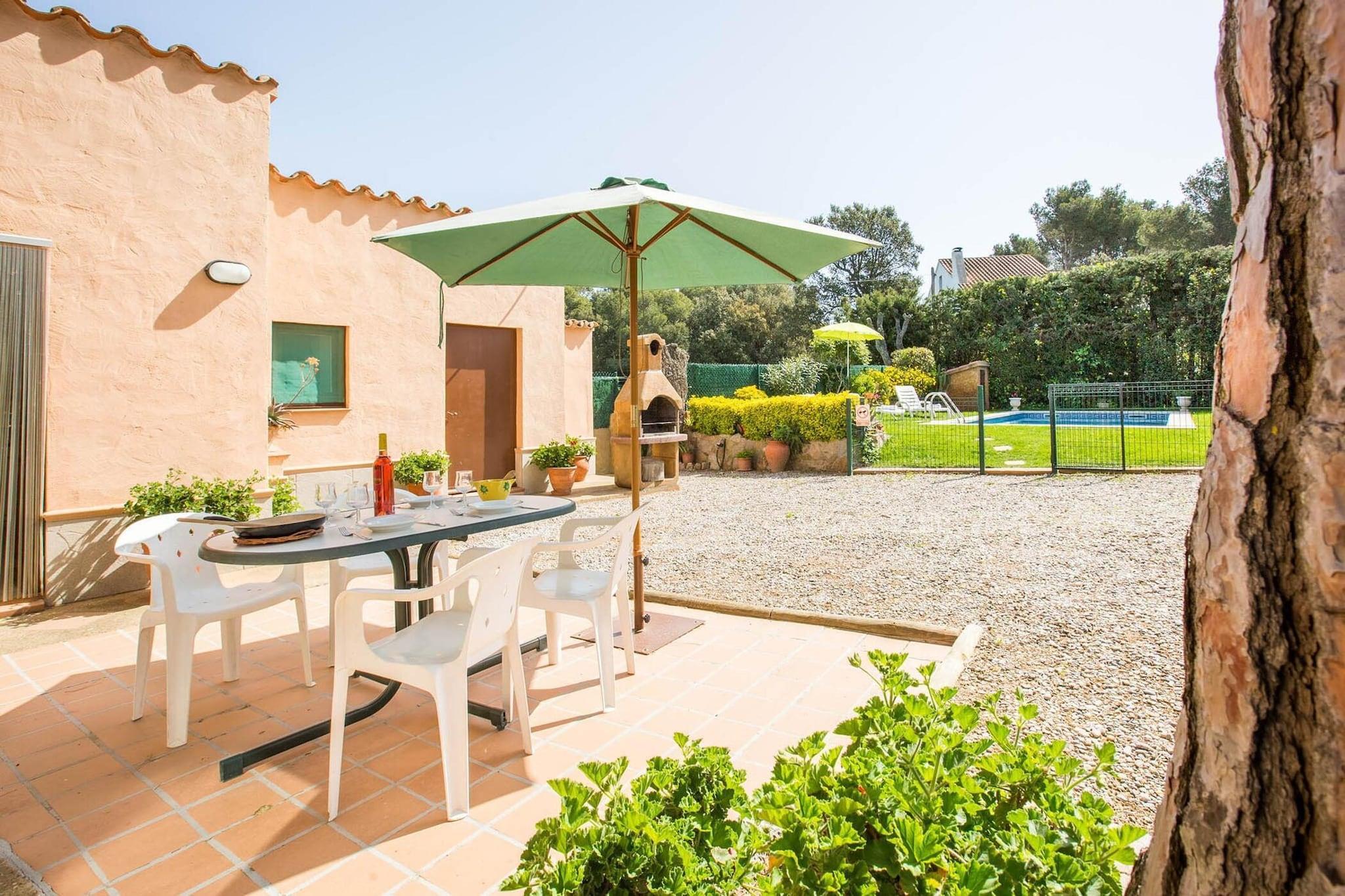 Denne charmerende villa kan rumme op til 6 gæster og tilbyder tre hyggelige soveværelser designet til ultimativ komfort. Ejendommen er kæledyrsvenlig, så dine lodne venner kan deltage i det sjove med forudgående godkendelse. Villaen har en privat swimmingpool og en rummelig have, perfekt til udendørs afslapning. Nyd måltider på den solbeskinnede terrasse eller slap af i den komfortable stue med tv og Wi-Fi. Uanset om du leder efter et fredeligt tilflugtssted eller en spændende ferie, giver denne villa de perfekte rammer for en familieferie. Beliggende kun en kort afstand fra stranden, er villaen ideel til at udforske lokalområdet. I nærheden finder du et udvalg af caféer og restauranter, hvor du kan nyde lækre lokale retter. Den charmerende by byder på maleriske udsigter, og det livlige marked er lige rundt om hjørnet, hvor du kan købe friske råvarer og håndlavede varer. For dem, der ønsker at udforske mere af Costa Brava, byder det omkringliggende område på en fantastisk kystudsigt, vandrestier og en pulserende lokal kultur, der vil gøre dit ophold helt mindeværdigt. Inde i villaen finder du et fuldt udstyret køkken med moderne apparater, herunder køleskab, mikroovn og opvaskemaskine, hvilket gør det nemt at tilberede dine yndlingsmåltider. Villaen har også to badeværelser, et med badekar og et andet med bruser, hvilket sikrer komfort og bekvemmelighed for alle gæster. Med alle de nødvendige faciliteter til et stressfrit ophold er denne villa et godt valg for familier og grupper, der kan slappe af.