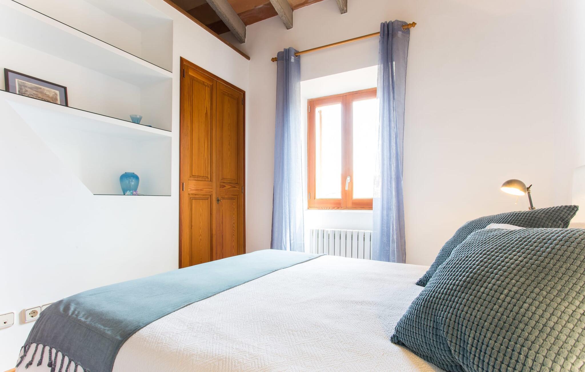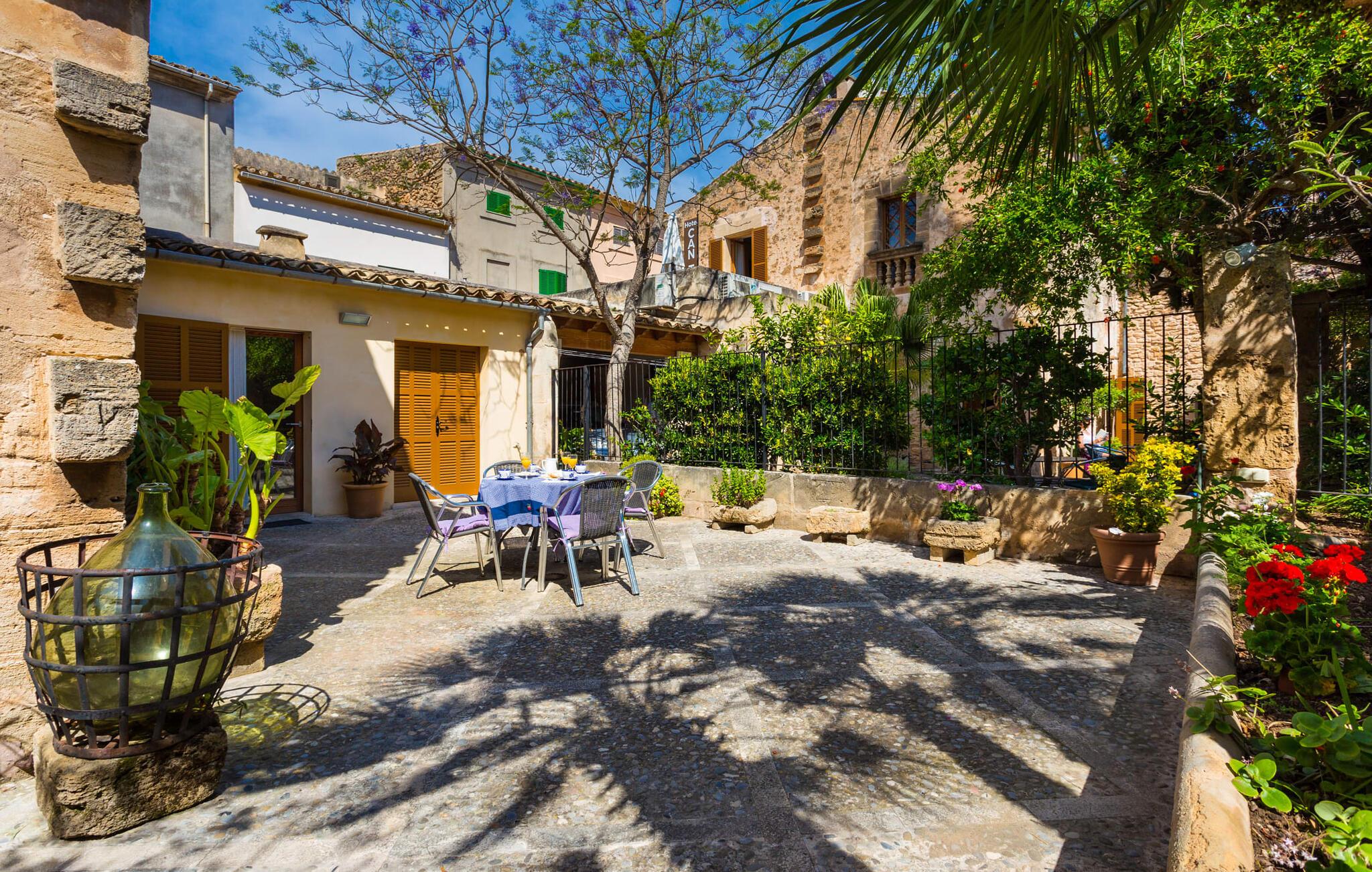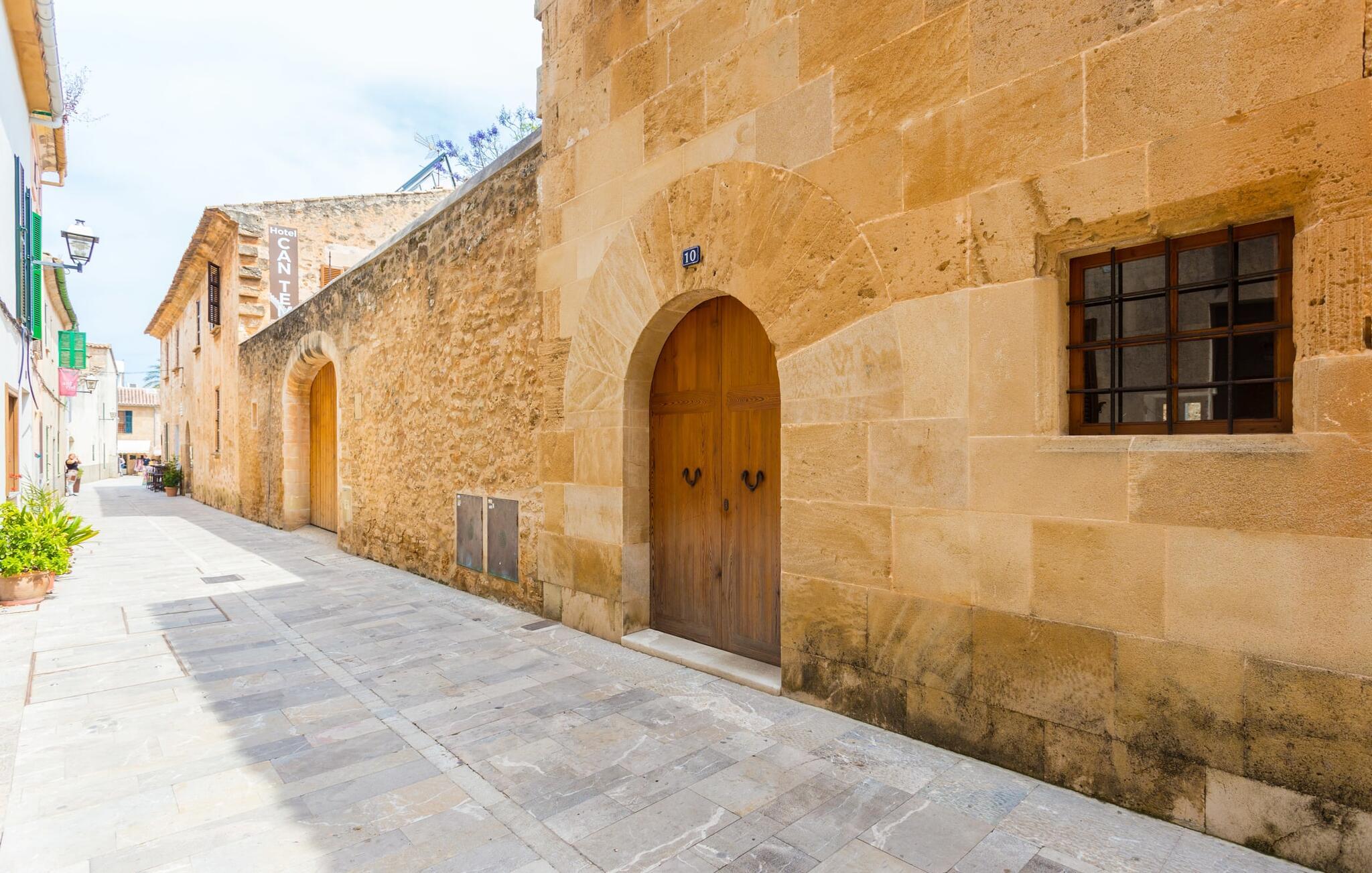Leder I efter noget særligt på et sted, der byder på både byliv og hav, middelalderlig og moderne, spænding og ro? Fincallorca vil gerne præsentere jer "Esglesia 10", et arkitektonisk mesterværk beliggende i det ældste distrikt i Alcúdia, ikke langt fra den katolske kirke. I bor i begge betydninger af ordet "i gamle sten", for dette moderne og smagfuldt indrettede hus ligger både indenfor de massive bymure og har imponerende historisk murværk inde og ude. Her bliver I (gamle) byboere, der slentrer fredeligt gennem gaderne, der er gennemsyret af historie, hvor der stadig findes en masse mallorcansk tradition. Til jeres morgenmorgenmad eller en lille natdrink kan I sidde i den beskyttede, beplantede gårdhave med adgang til det separate opholds- og soveområde. Det er værd at bemærke, at det er bedst at efterlade bilen 150 m væk på parkeringspladsen nær kirken, da det er let at fare vild i de snoede smalle gader. Så snart I træder ind af hoveddøren, kan I straks synke ned i de bløde puder og trække vejret dybt efter en dag med shopping, sightseeing eller på stranden. Det åbne rum med højt til loftet, gammelt murværk og den imponerende trappe til 1. sal løber til gården overfor og minder om en kunstnerhems. Det efterlader altid et fremragende førstehåndsindtryk. Herfra kan I også få adgang til køkkenet med dets buede tag (og en dør til den udendørs spiseplads). Ikke alene er det perfekt til madlavning, men det er også smart nok til en udvidet vinsmagning efter et besøg i Inca. De to hyggelige soveværelser på første sal, det ene med antikke møbler og en helt igennem kongelig dobbeltseng, deler et brusebad. To yderligere gæster kan indkvarteres uafhængigt af hinanden i den to-etagers minilejlighed med brusebad (dog uden køkken) på den anden side af gården. Nedenunder finder I en sofa og ovenpå en stor dobbeltseng med en stol ved siden af vinduet og et langt walk-in fyrre garderobeskab. I kan mødes i midten for at spise sammen, selvom de separate huse giver mulighed for privatliv og uafhængighed. Alcúdia og Pollença er to populære små byer med havne, palmeomkransede promenader og et udvalg af strande. jeres drømmeferie kan blive til virkelighed her - begge byer er perfekte til at slentre og slappe af samt til vandsportsaktiviteter. Den gamle bydel i Alcúdia tager jer med ind i øens farverige historie, og den store promenade i Pollença er en af de smukkeste på Mallorca. Den barske Formentor-halvø tiltrækker ikke kun berømtheder med sin Hollywood-charme, afsidesliggende bugter, forrevne klippekyster og betagende udsigt. Cap fyrtårnet vil vise jer vejen! Mange besøgende til Alcúdia kan have savnet Sa Bassa Blanca-museet, som ligger i nærheden og byder på enestående kunstværker, en rosenhave og mauriske facader. Ikke så mærkeligt, for bag de to Badias til venstre og højre er der så mange smukke strande... Denne ekstraordinære ejendom ligger lige i centrum af den historiske, næsten trafikdæmpede gamle bydel i middelalderbyen Alcúdia. Butikker, caféer og restauranter ligger lige uden for døren. Pollença, 12 km væk, er en ideel base for vandreture gennem Serra de Tramuntana (og byder på meget mere). To Badias tilbyder strande til dig; Læder- og vinbyen Inca byder på et stykke byliv kun en halv times kørsel væk.