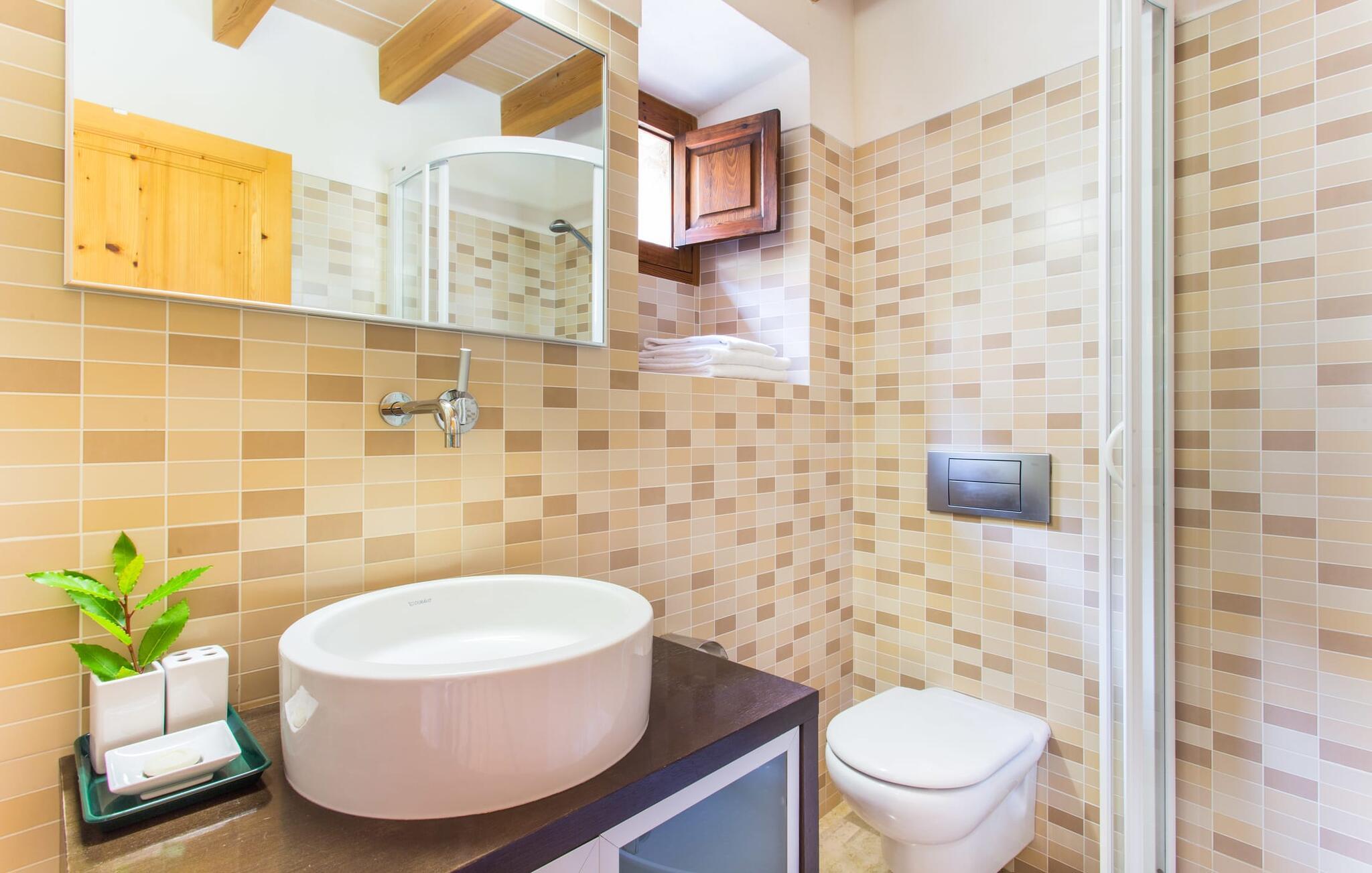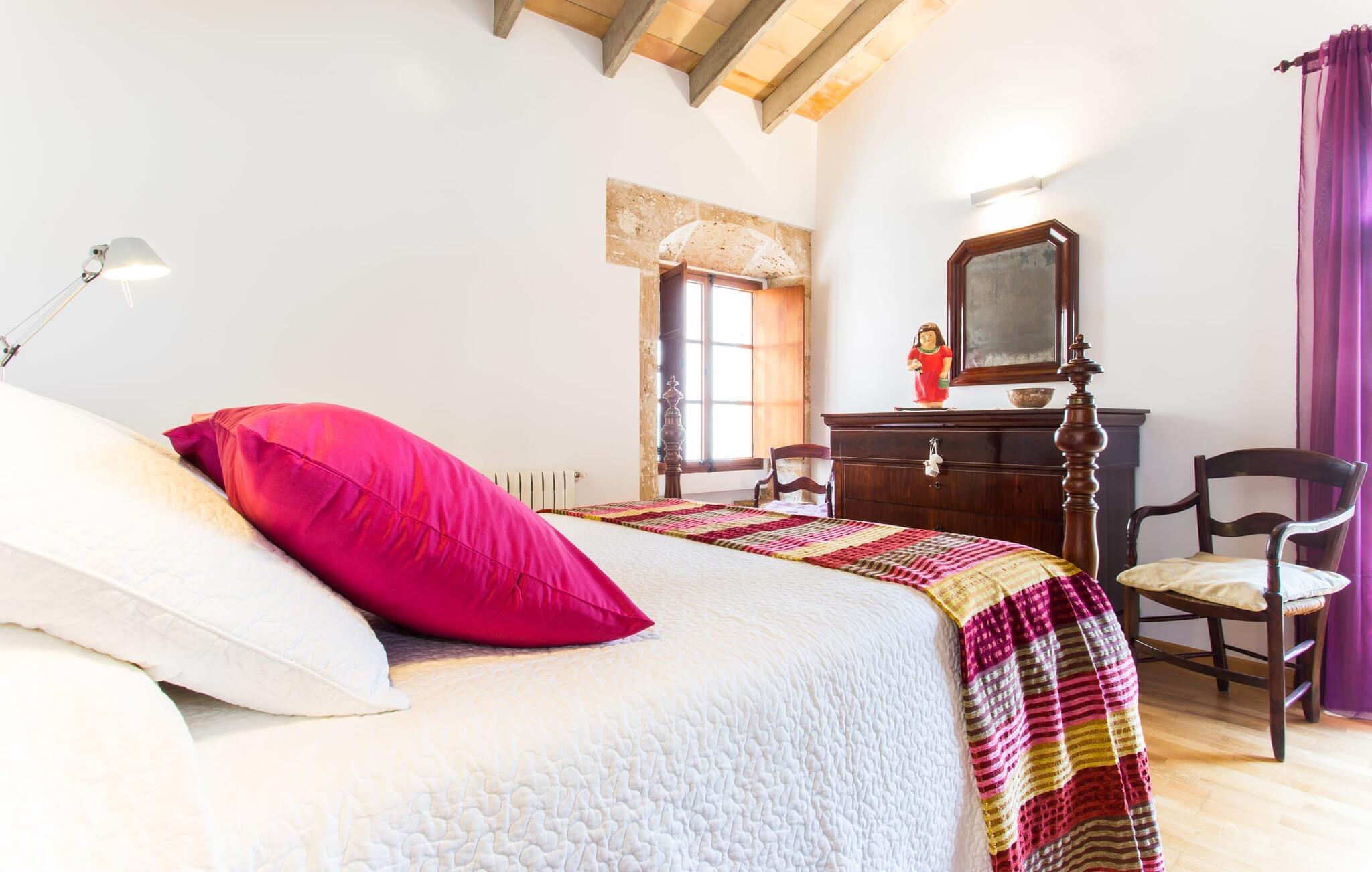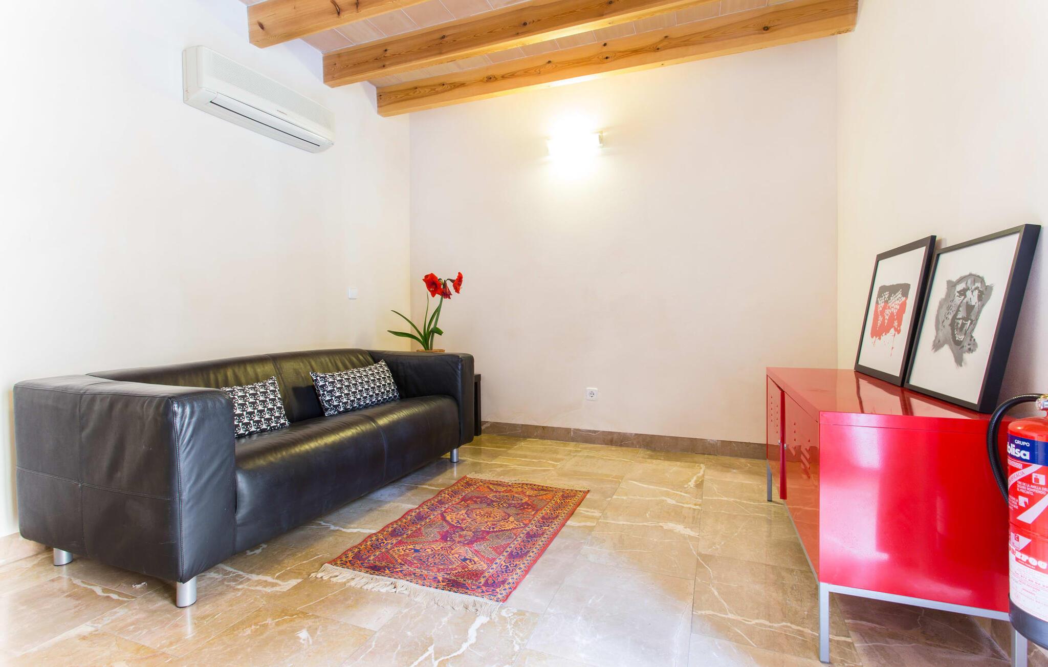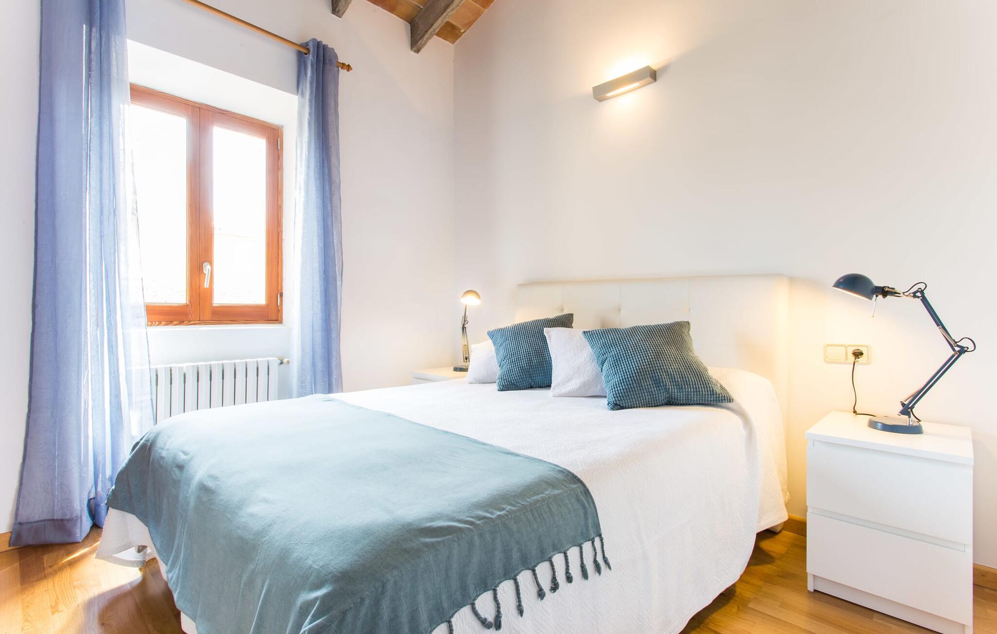 Leder I efter noget særligt på et sted, der byder på både byliv og hav, middelalderlig og moderne, spænding og ro? Fincallorca vil gerne præsentere jer "Esglesia 10", et arkitektonisk mesterværk beliggende i det ældste distrikt i Alcúdia, ikke langt fra den katolske kirke. I bor i begge betydninger af ordet "i gamle sten", for dette moderne og smagfuldt indrettede hus ligger både indenfor de massive bymure og har imponerende historisk murværk inde og ude. Her bliver I (gamle) byboere, der slentrer fredeligt gennem gaderne, der er gennemsyret af historie, hvor der stadig findes en masse mallorcansk tradition. Til jeres morgenmorgenmad eller en lille natdrink kan I sidde i den beskyttede, beplantede gårdhave med adgang til det separate opholds- og soveområde. Det er værd at bemærke, at det er bedst at efterlade bilen 150 m væk på parkeringspladsen nær kirken, da det er let at fare vild i de snoede smalle gader. Så snart I træder ind af hoveddøren, kan I straks synke ned i de bløde puder og trække vejret dybt efter en dag med shopping, sightseeing eller på stranden. Det åbne rum med højt til loftet, gammelt murværk og den imponerende trappe til 1. sal løber til gården overfor og minder om en kunstnerhems. Det efterlader altid et fremragende førstehåndsindtryk. Herfra kan I også få adgang til køkkenet med dets buede tag (og en dør til den udendørs spiseplads). Ikke alene er det perfekt til madlavning, men det er også smart nok til en udvidet vinsmagning efter et besøg i Inca. De to hyggelige soveværelser på første sal, det ene med antikke møbler og en helt igennem kongelig dobbeltseng, deler et brusebad. To yderligere gæster kan indkvarteres uafhængigt af hinanden i den to-etagers minilejlighed med brusebad (dog uden køkken) på den anden side af gården. Nedenunder finder I en sofa og ovenpå en stor dobbeltseng med en stol ved siden af vinduet og et langt walk-in fyrre garderobeskab. I kan mødes i midten for at spise sammen, selvom de separate huse giver mulighed for privatliv og uafhængighed. Alcúdia og Pollença er to populære små byer med havne, palmeomkransede promenader og et udvalg af strande. jeres drømmeferie kan blive til virkelighed her - begge byer er perfekte til at slentre og slappe af samt til vandsportsaktiviteter. Den gamle bydel i Alcúdia tager jer med ind i øens farverige historie, og den store promenade i Pollença er en af de smukkeste på Mallorca. Den barske Formentor-halvø tiltrækker ikke kun berømtheder med sin Hollywood-charme, afsidesliggende bugter, forrevne klippekyster og betagende udsigt. Cap fyrtårnet vil vise jer vejen! Mange besøgende til Alcúdia kan have savnet Sa Bassa Blanca-museet, som ligger i nærheden og byder på enestående kunstværker, en rosenhave og mauriske facader. Ikke så mærkeligt, for bag de to Badias til venstre og højre er der så mange smukke strande... Denne ekstraordinære ejendom ligger lige i centrum af den historiske, næsten trafikdæmpede gamle bydel i middelalderbyen Alcúdia. Butikker, caféer og restauranter ligger lige uden for døren. Pollença, 12 km væk, er en ideel base for vandreture gennem Serra de Tramuntana (og byder på meget mere). To Badias tilbyder strande til dig; Læder- og vinbyen Inca byder på et stykke byliv kun en halv times kørsel væk.