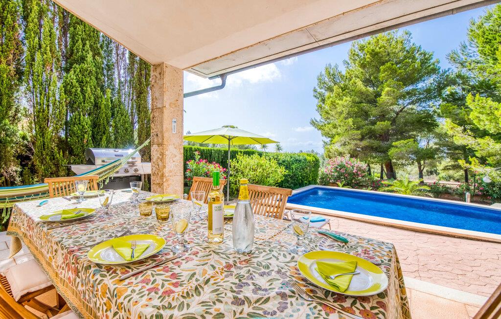 Forestil jer dette: en azurblå pool, der lokker i sollys. En vidunderlig stor poolterrasse med seks liggestole og en betagende udsigt over Sierra de Levantes vilde bjerglandskab. I nærheden er et storslået udvalg af middelhavsplanter: bougainvillea, oleander og fyrretræ... en blanding af dufte, der får topparfumører til at falde i svime. Et pust af salt havluft svæver over jeres private oase fra kysten af ??det grønne, ubebyggede naturreservat kun 1 km væk. På terrassen kan I forkæle jer selv i solen... forkæl jer selv med en pause i skyggen af ??dit fyrretræ. Eller slap af i strandstolen og giv jeres have et maritimt præg. Inden en eftermiddagssiesta kan I slappe af på den store overdækkede terrasse. Der venter jer en luksuriøs, gasdrevet grill, som I hurtigt kan fremtrylle et lækkert måltid med. Om aftenen inviterer den oplyste pool jer til at tage en forfriskende sen svømmetur.