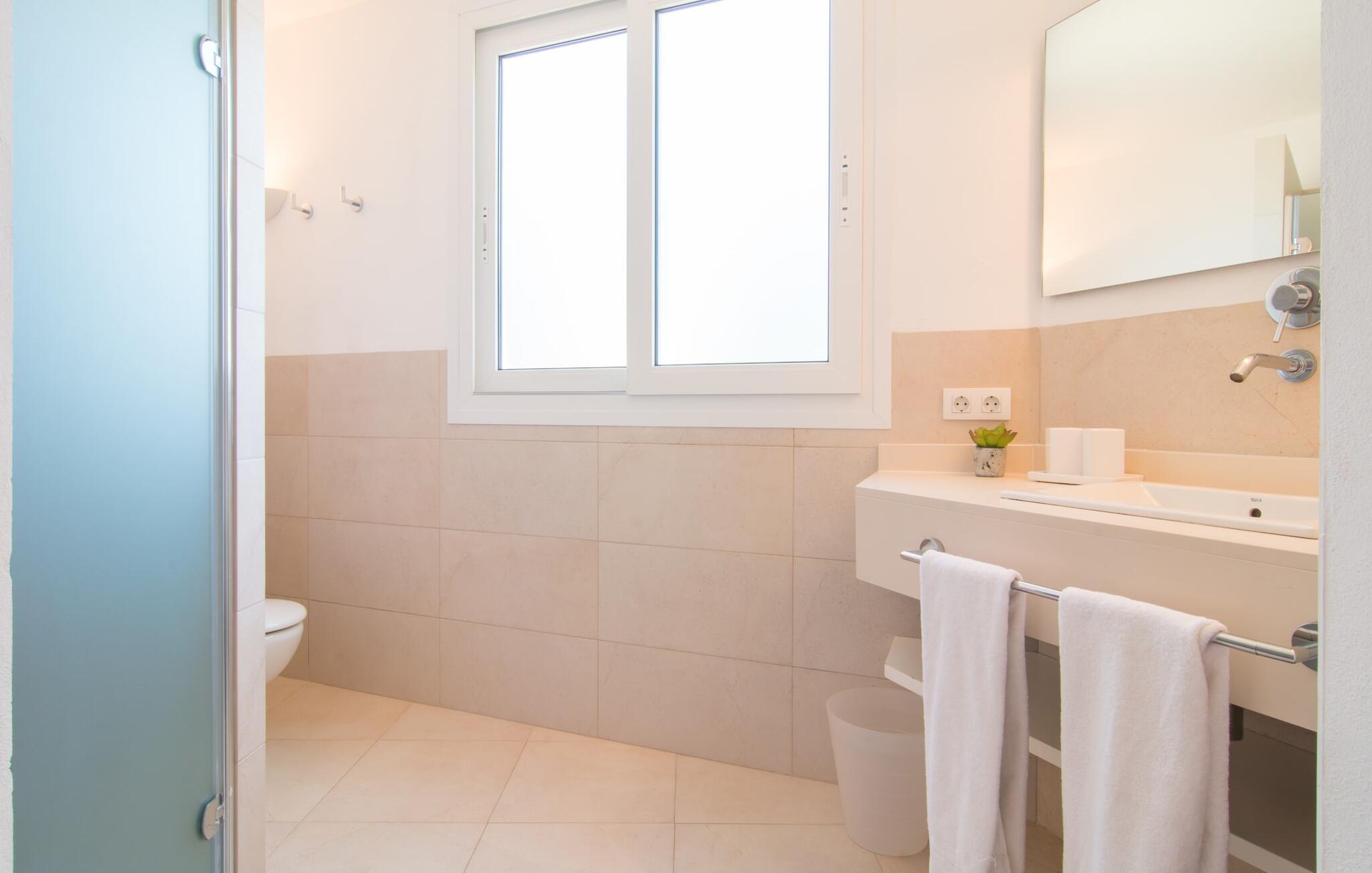 Denne moderne villa ved havet ligger i den sydøstlige del af Mallorca, i udkanten af landsbyen Portocolom. Huset er udstyret med mange solterrasser og altaner, der byder på en fantastisk udsigt over havet og havnen i Portocolom. Dette er et Fincallorca feriehus. Den ekstremt smukke pool er integreret i huset og har et hegn til at beskytte eventuelle små børn, der rejser med dig. Derudover fungerer den som hæk for at sikre privatliv og hygge. En solterrasse og den tilstødende græsplæne inviterer dig til at slappe af og solbade på en af de komfortable liggestole. I tilfælde af at solen skinner for kraftigt, er to parasoller til rådighed. Terrassen lige ved poolen byder på luftig skygge på ethvert tidspunkt af dagen og et moderne spisebord, hvorfra du bare kan se forbløffet på det vidunderlige panorama, der ligger lige foran dig. Uanset hvad, så er det en fornøjelse at starte dagen i morgenlyset eller beundre havnens blinkende lys om natten. Lige på hjørnet og strategisk placeret på solens sti er det vidunderlige loungeområde, hvor du kan slappe af, som du vil, og nyde magien ved dette sted. Den overvejende hvide farve giver omgivelserne et udsøgt design og skaber samtidig en stor kontrast til den dybblå himmel og havet. Bygningen strækker sig over to etager og optager et samlet areal på omkring 270 kvadratmeter. De mange vinduer og de næsten udelukkende lyse farver oversvømmer huset med sollys og udstråler en allround ekstravagant aura. En kombineret stue/spisestue, som vender ud mod havnen, byder også på et yderst behageligt sofaområde med et praktisk installeret fjernsyn og et langt elegant spisebord, der kan rumme seks personer. En ekstra børnevenlig lounge er integreret i villaens arkitektur. Der er også børnemøbler og en ekstra sofa til afslapning. Dette værelse er et ideelt legerum, hvor du kan trække dig tilbage til med de små, hvis det er nødvendigt. Det plejevenlige køkken i et elegant design har alt hvad du behøver til hverdagen, inklusive elkedel og filterkaffemaskine. De klimatiserede soveværelser (hvoraf to har en-suite badeværelser) er rummelige, udstyret med møbler af høj kvalitet og har et meget elegant design. Den bevidst sparsomme brug af dekoration giver disse rum en lys og unik karakter, der fremmer behagelig ro. Den fantastiske udsigt, delvist synlig fra soveværelset, gør dette sted til højdepunktet af komfort. Der er to 0,90 x 2,00 m senge til rådighed i alle soveværelser. Det smagfulde design fortsætter også i badeværelserne. Disse har et ekstremt moderne design, er meget komfortable og generøst proportionerede. Og herfra kan du nyde en delvis havudsigt! Portocolom er en malerisk fiskerby på Mallorcas sydøstkyst. Hjertet af den lille by er stadig den smukke strand- og havnepromenade med en række barer og restauranter, der er perfekte til at slentre, især om aftenen. Her ligger også den fantastiske sandbugt "Cala Marcal", med ekstremt fint sand og en lavvandet indgang til vandet, hvilket gør det meget behageligt at bade og også ideelt for børn. Villa “Esperanza” er et stort og yderst moderne feriehus med en top beliggenhed, direkte ved havnen i Portocolom på øens kyst. Det ligger på den sydøstlige spids af havnebugten. Den maleriske havnepromenade med sine barer og restauranter ligger kun et stenkast væk. Du kan også hurtigt nå de lokale bugter med fint sand, som er ideelle til svømning.