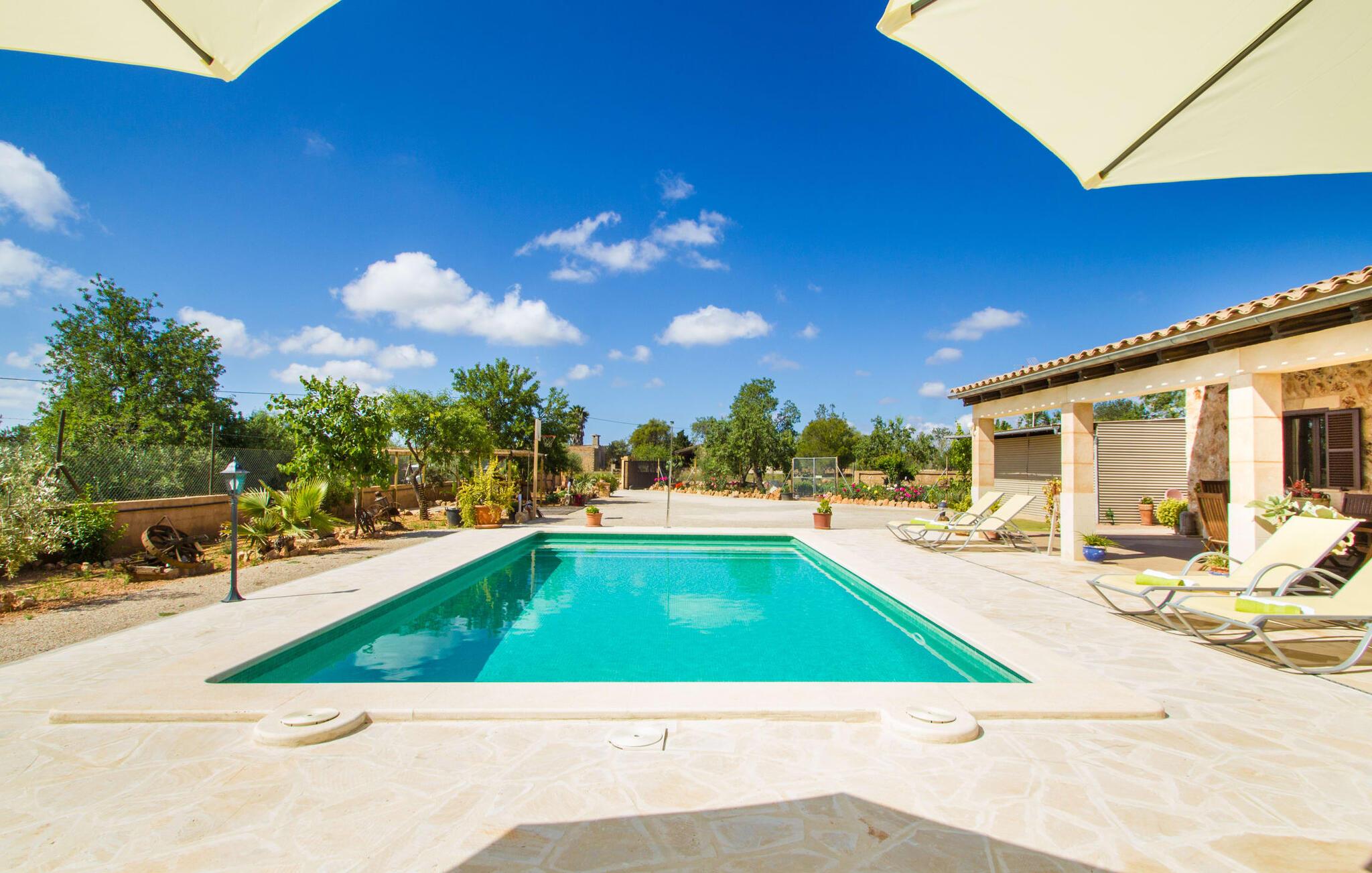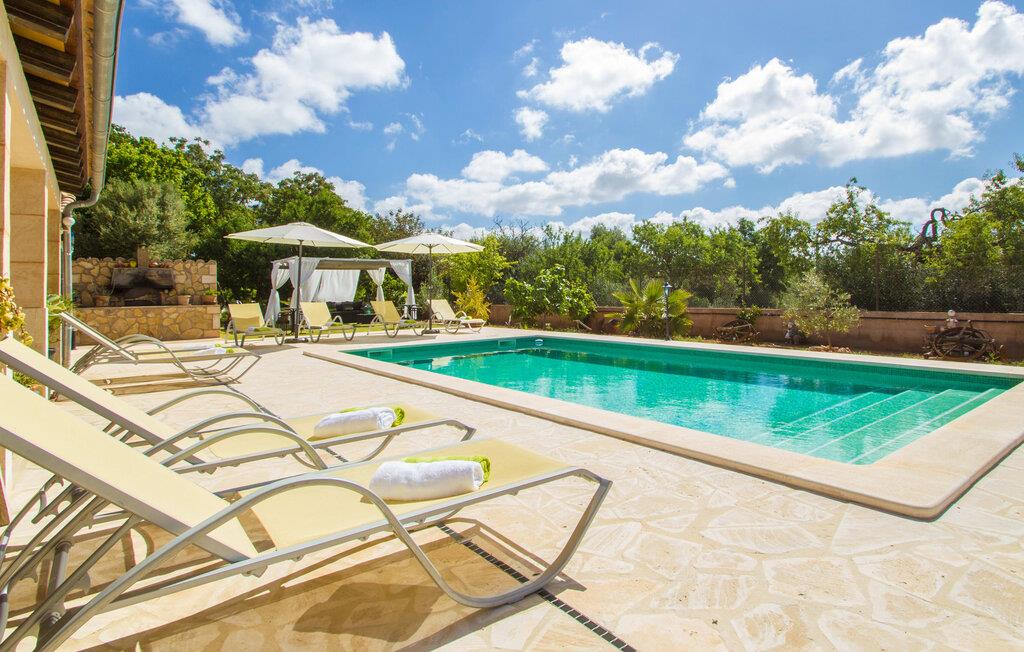 Den smukke naturstensfinca "Esplendor" i det sydlige Mallorca tilbyder den perfekte beliggenhed for en komfortabel ferie med egen forplejning nær smukke sandstrande. Det er omgivet af velholdt havegrund i landlige omgivelser og alligevel tæt nok på den charmerende landsby Campos. Butikker, supermarkeder og gode restauranter ligger mindre end 2 km fra jeres fredelige tilflugtssted. De smukke udendørs arealer indbyder til at tilbringe hele dagen udendørs. Solterrassen med pool, hyggelig chill-out zone og grillplads vender mod sydøst. Så glæd jer til behageligt morgenlys til morgenmaden og lange solskinstimer ved poolen. Fincaens indre er bygget i ét plan. Stuen med pejs er åben til køkkenet med spiseplads. En glasdør giver direkte adgang til den overdækkede terrasse og pool. Der er tre soveværelser med dobbeltsenge, hvoraf det ene har eget badeværelse. to af dem har direkte adgang til haven. Alle soveområder er udstyret med aircondition og varme. De kan mørklægges helt med rulleskodder til afslappede siestaer. Sommerhuset er også velegnet til at arbejde hjemmefra. Tag gerne jeres firbenede ven med jer, da denne ejendom er kæledyrsvenlig. Feriehuset ligger på en velholdt havegrund 1,6 km fra centrum af Campos på det sydlige Mallorca. Campos har en god infrastruktur med supermarkeder og forskellige restauranter. De lange sandstrande Es Trenc og Sa Rápita ligger 15 minutter væk i bil. Det er 30 minutters kørsel til øens hovedstad, Palma.