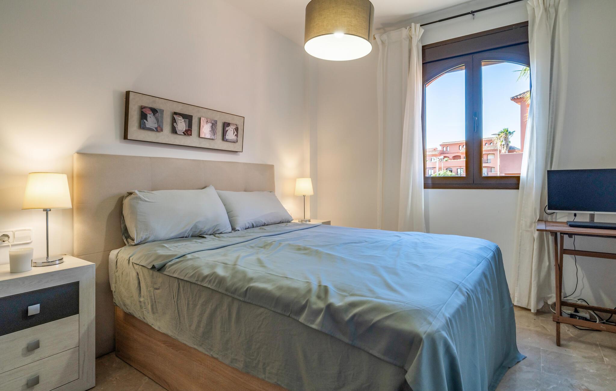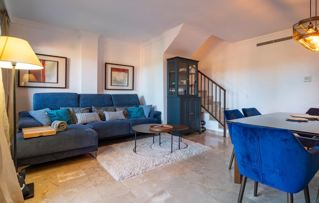I kan tilbringe afslappende timer i det moderne og smagfuldt indrettede opholdsområde i jeres feriehus i Estepona på Costa del Sol, mens det veludstyrede køkken har alt, hvad I skal bruge for at tilberede lækre måltider. Nyd jeres aftener i det komfortable opholdsområde eller med middag i den elegante spiseplads.