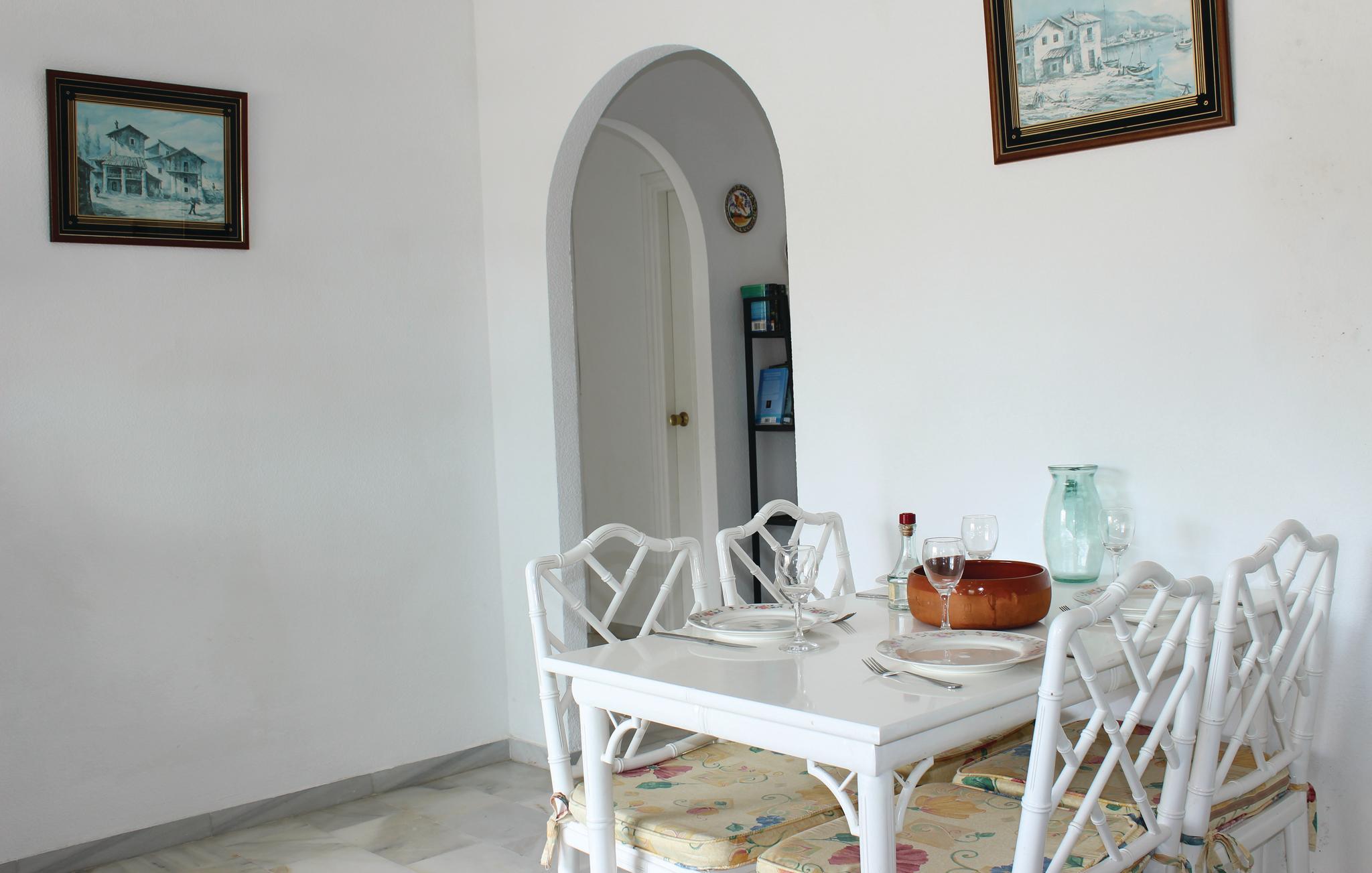 Denne dejlige ferielejlighed har plads til fire gæster. I kan se frem til et fuldt udstyret køkken og et spisebord med fire stole. Ved den store fællespool med børnebassin kan I nyde Andalusiens vidunderlige klima dagen lang.