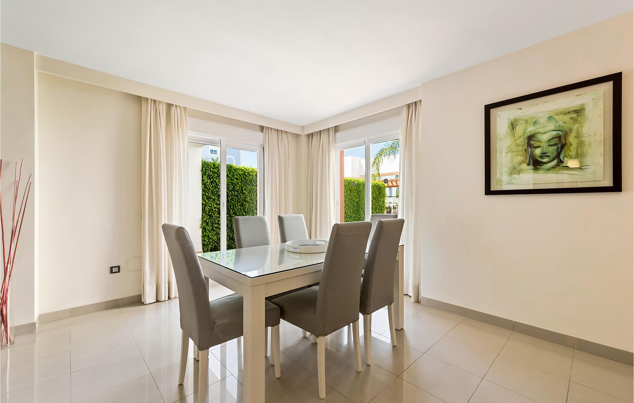 Denne komfortable ferielejlighed er del af ferieresorten Cortijo del Mar, som ligger halvvejs mellem Marbella og Estepona. Resorten har en gennemgående høj standard, en livlig atmosfære og en kæmpestor, skøn fællespool, som I har direkte adgang til, og som I kommer til at tilbringe mange timer med at plaske rundt i- og sole jer ved. Ønsker I lidt afveksling, er der kun 3 km til nærmeste sandstrand, hvor I kan bade i det glitrende hav. Når I trænger til en pause fra solen, er den komfortable og veludstyrede lejlighed med terrasse det perfekte sted at slappe af.