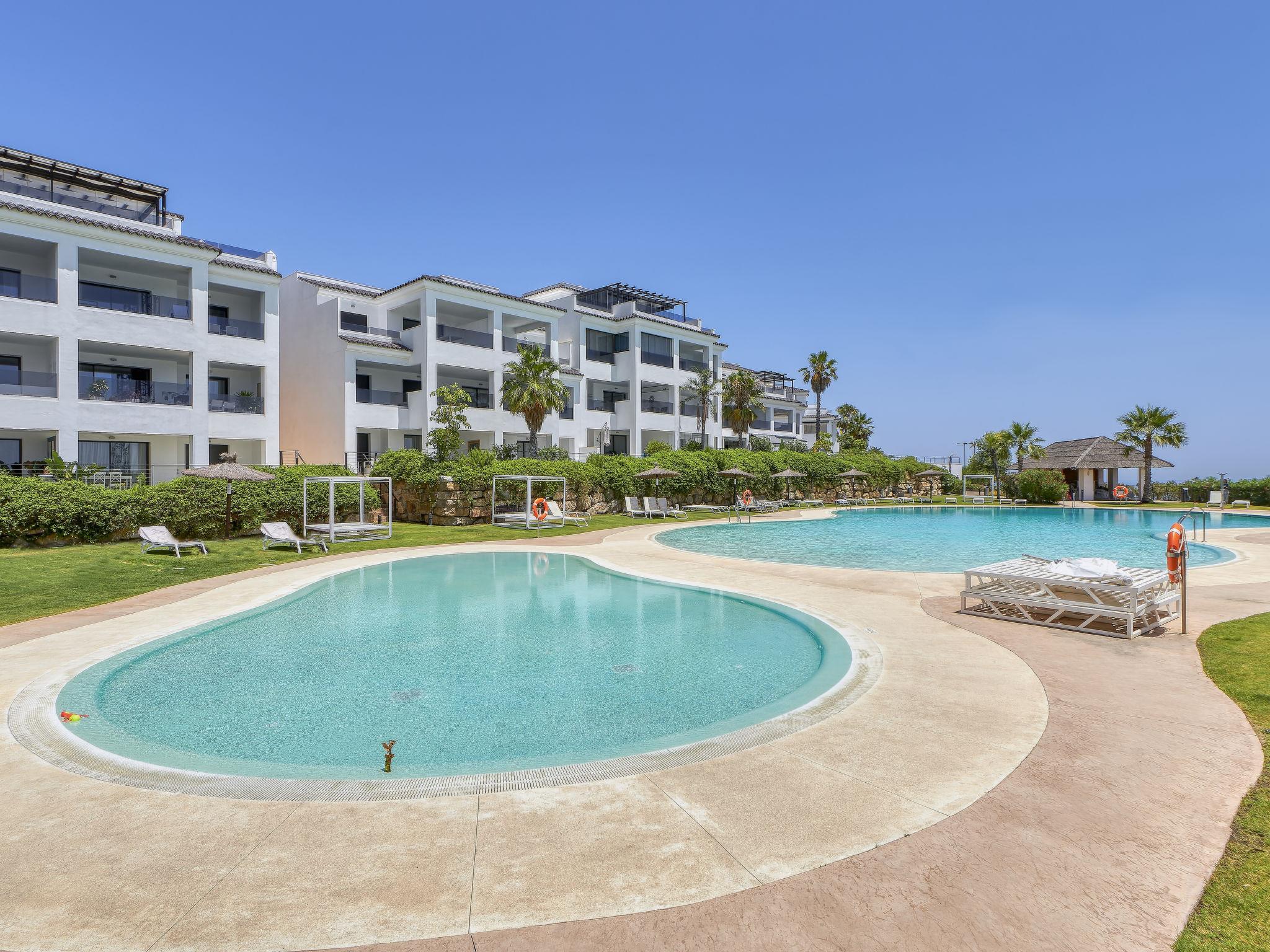 Modern, cosy apartment block "Mirador de Estepona Hills", built in 2022. In the resort 2 km from the centre of Estepona, in a quiet, sunny position, 3 km from the sea, 3 km from the beach, south facing position. For shared use: garden with lawn and flowers, 2 swimming pools (depth 120 - 190 cm, seasonal availability: 15.Mar. - 31.Oct.). Unconventional pool shape. Shower/WC in the pool area, children's pool, children's playground. Private: terrace (30 m2). In the complex: restaurant, bistro, fitness room (extra). Solarium, shopping facilities. Roofed, parking, communal covered parking. E-charging station. Grocery 200 m, supermarket 1.5 km, restaurant, bar, pub garden 100 m, bus stop "Estacion autobuses Estepona" 3.5 km, sandy beach "Playa de la cala" 2.6 km. Sports harbour 3 km, golf course (18 hole) 12 km. Nearby attractions: orquidario 2.7 km, selwo aventura 10 km, kart & fun 3.2 km. Well-known ski regions can easily be reached: sierra nevada 300 km. Hiking paths: sierra 3 km. Please note: car recommended. 24hr guard. The apartment is located in a zone with limited traffic. Exclusive resort in Costa del Sol with 24h security. Consists of 2 pools and a bar-restaurant in the same. Gym and supermarket in the urbanization.