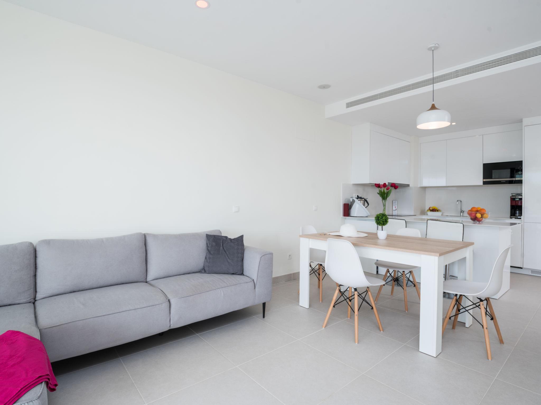 "Mañanas Felices III", 3-room apartment 85 m2 on 1st floor, south-east facing position. Object suitable for 4 adults. Spacious and bright, modern furnishings: living/dining room with digital TV, radio, electric heating, air conditioning and forced-air heating. Exit to the terrace. 1 room with 2 beds (90 cm, length 190 cm), shower/WC, air conditioning, forced-air heating and electric shutters. 1 room with 1 french bed (180 cm, length 200 cm), air conditioning, forced-air heating and electric shutters. Exit to the patio, south facing position. Open kitchen (oven, dishwasher, 3 ceramic glass hob hotplates, toaster, kettle, microwave, freezer, electric coffee machine) with air conditioning and forced-air heating. Exit to the patio. Shower/WC. Natural stone floors. Terrace 30 m2, 27 m2. Facilities: washing machine, iron, children's high chair, baby cot for up to 2 year olds, hair dryer. Internet (WiFi, free). Garage space n 412 (1 car). Please note: suitable for families. Non-smokers only. VFT/MA/58877 // Reg. Nr.: ESFCTU0000290360006369370000000000000000VFT/MA/588775