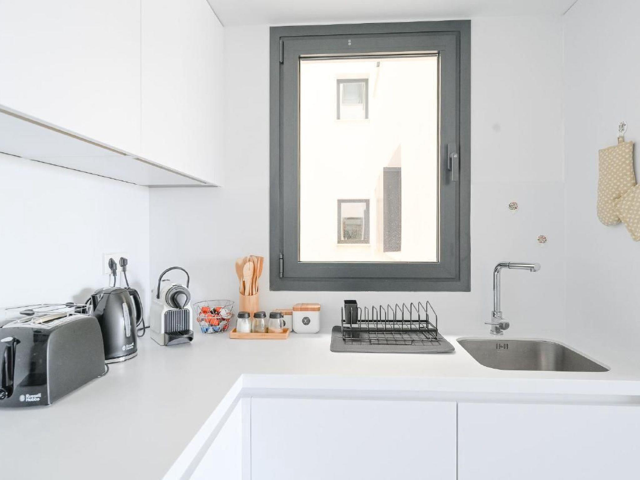 Inside, the apartment shines with modern amenities and thoughtful touches designed to ensure utmost comfort. Each of the two bedrooms is equipped with dimmable lights and fitted wardrobes, making storage a breeze. The living space is complemented by two full bathrooms, one featuring a bathtub with an integrated shower and another with a standalone shower, catering to varied preferences. The living area, beautified with stylish furnishings, comes complete with air conditioning, Wi-Fi, a Smart TV, a dishwasher, an electric kettle, and both a coffee machine and an espresso pot, promising both convenience and comfort.