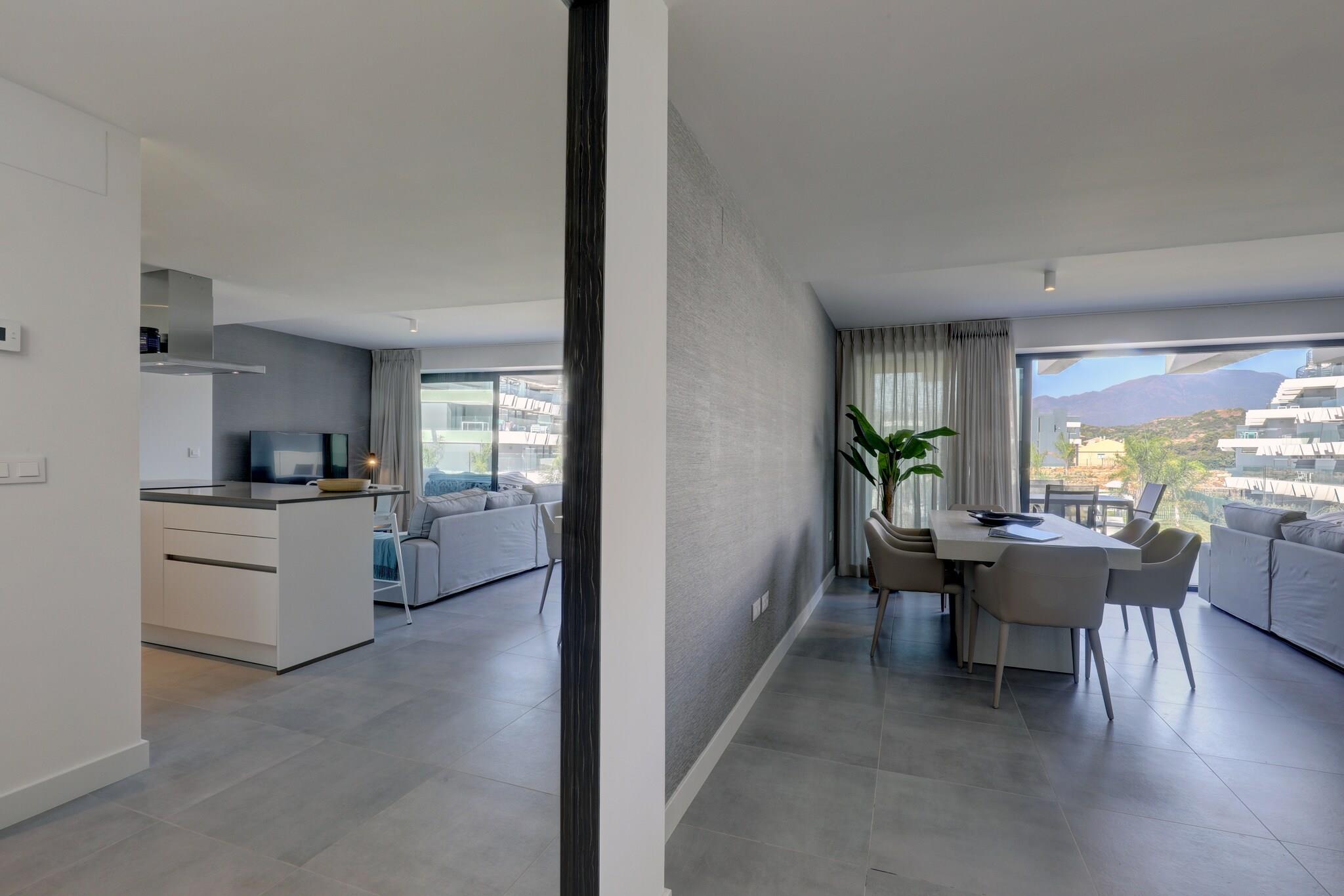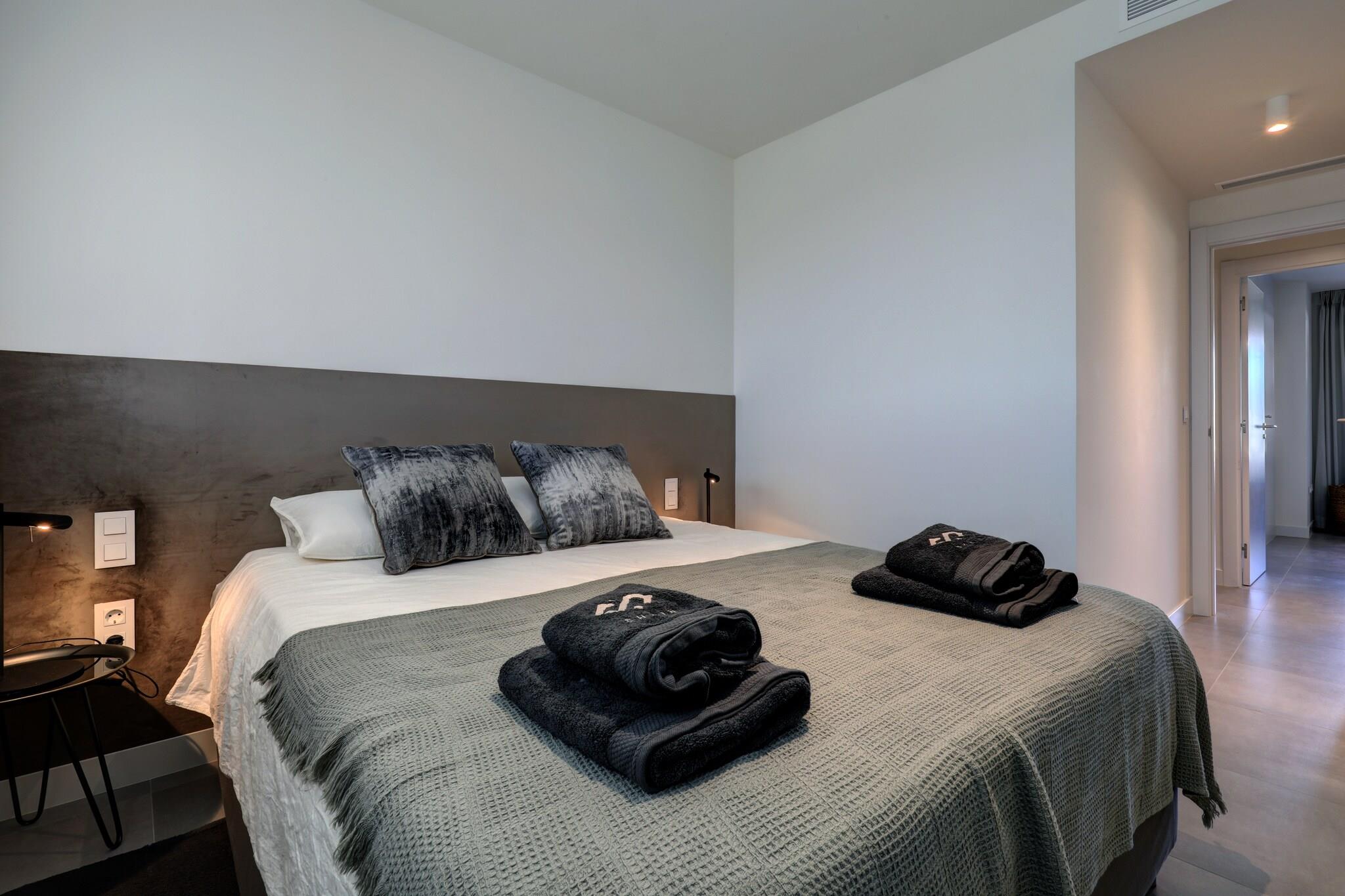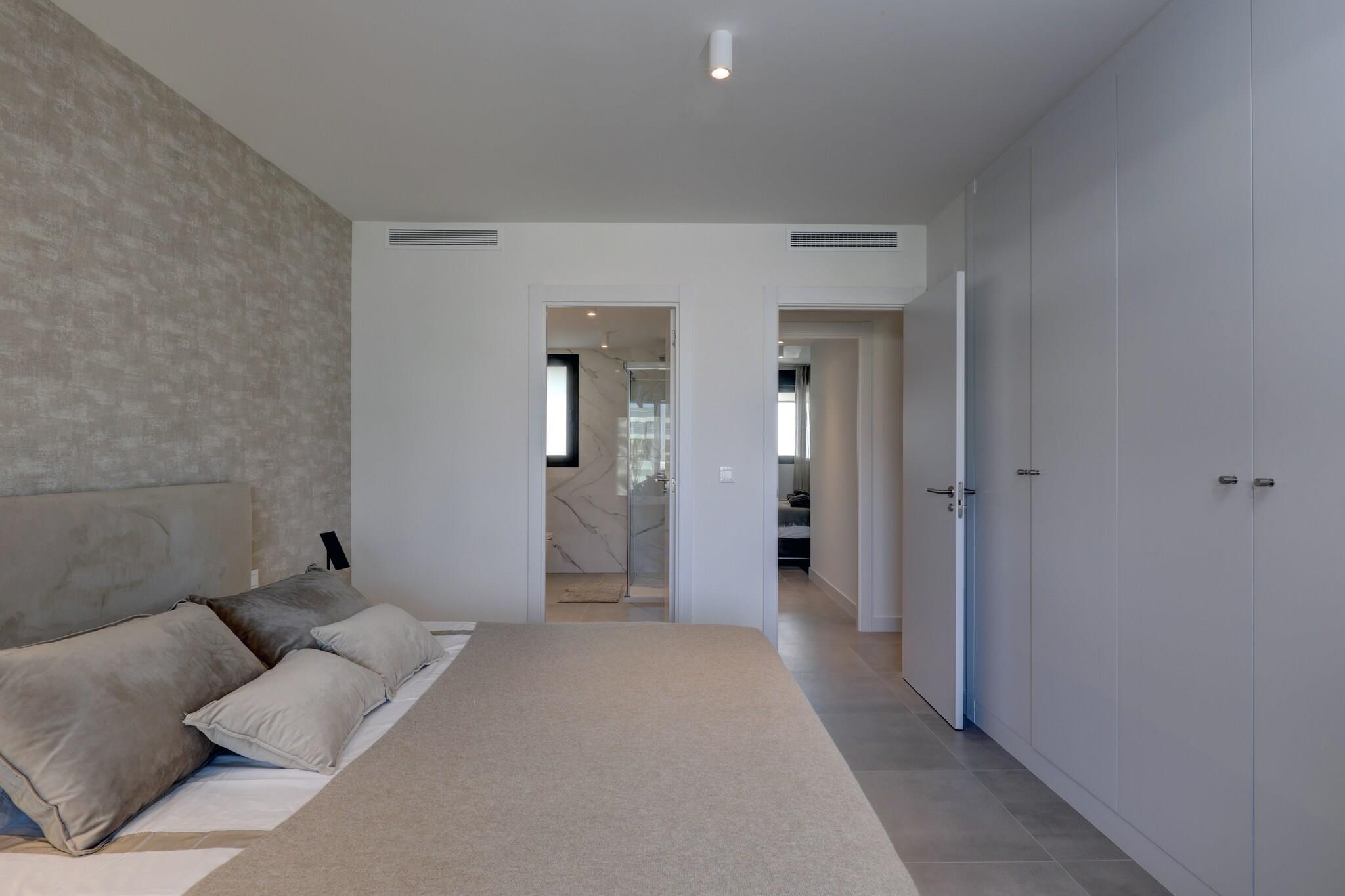 Stueetage: (Stue(Fjernsyn), Køkken(spisebord, komfur, kaffemaskine, mikrobølgeovn, køle-fryseskab), soveværelse(dobbeltseng), soveværelse(dobbeltseng), soveværelse(dobbeltseng), badeværelse(badekar, bruser, håndvask), badeværelse(bruser, håndvask), balkon, varme, klimaanlæg) fitnessrum, fitnessrum(deles med andre gæster), Bubble bath(deles med andre gæster), sauna(deles med andre gæster), have, parkering, swimmingpool(deles med andre gæster)