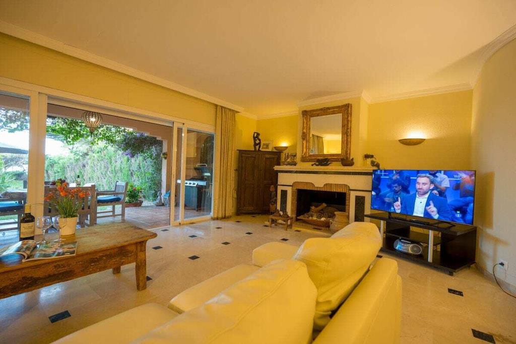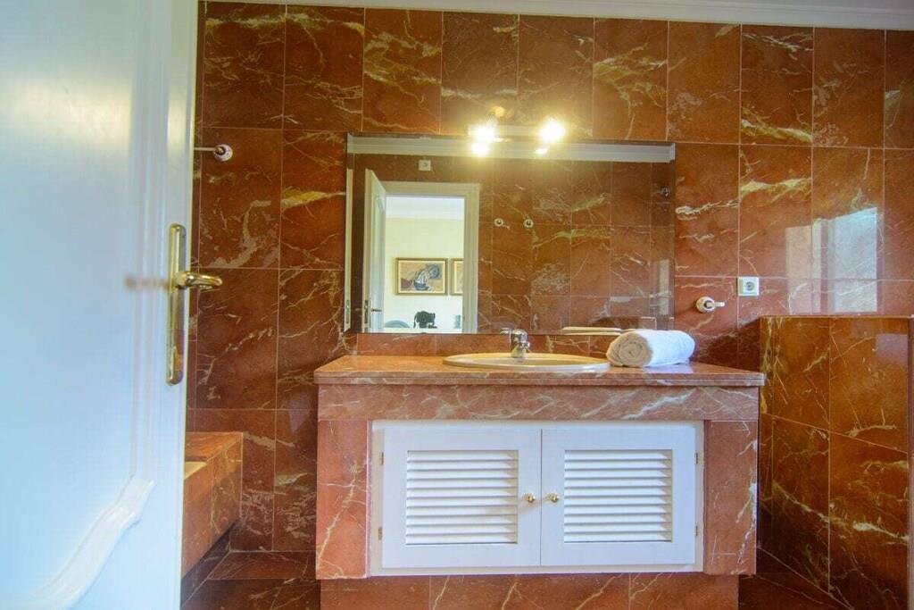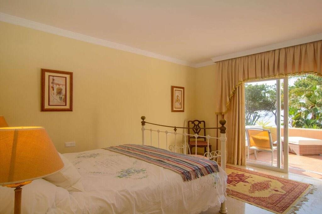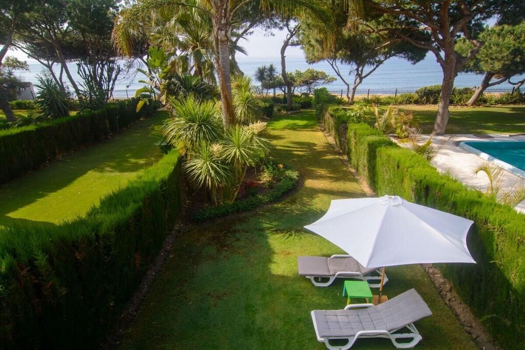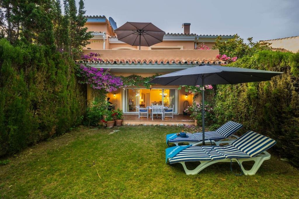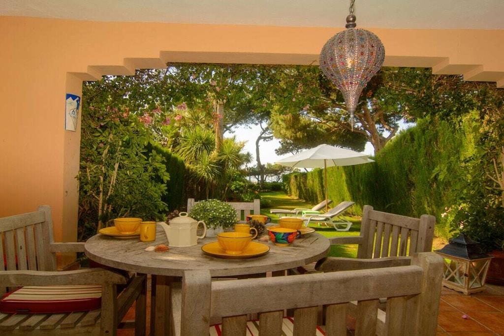Venalmar erste Linie Stadthaus (160m2) mit direktem Ausgang zum Strand durch den privaten Garten (200m2) mit Meerblick, Blick auf die Berge, Zugang zu gemeinsamen Sauna und Pool, zwei Terrassen (je 21m2) und Balkon. ~ Innen Das Stadthaus (160m2) hat ein elegantes Wohnzimmer mit direktem Zugang zur schönen Terrasse und dem privaten Garten durch eine große Glasschiebetür. Der Wohnbereich ist mit einem rustikalen Couchtisch und zwei Sofas und einem Sessel ausgestattet, von denen aus Sie die lebendige Vegetation im Garten bewundern oder fernsehen können. Der Essbereich verfügt über einen Esstisch für sechs Personen mit eleganten Holzsesseln neben einem Buffet mit einem großen Spiegel. Das Wohnzimmer ist mit Marmorfliesen ausgelegt, die auch an warmen Sonnentagen für eine kühle Atmosphäre sorgen. Sowohl der Wohn- als auch der Essbereich sind mit Vintage-Lampen mit Schirm ausgestattet, die das perfekte gedämpfte Licht für nächtliche Gespräche am Kamin mit Holz bieten. Das Wohnzimmer hat Zugang zum Service-Bad mit Toilette. Im Erdgeschoss neben dem Essbereich des Wohnzimmers befindet sich die voll ausgestattete Küche mit Backofen, Mikrowelle, Herd, Kaffeemaschine, Geschirrspüler, Kühlschrank, Ceranfeld, Dunstabzugshaube, Wasserkocher und Küchenutensilien. Durch das kleine Fenster, das sich von der Küche zum Essbereich hin öffnet, können Sie Ihre Mahlzeit servieren. Im Obergeschoss befinden sich das Hauptschlafzimmer und das Gästeschlafzimmer, beide mit eigenem Bad und allen Annehmlichkeiten. Das Hauptschlafzimmer hat ein Queen-Size-Bett (150x200cm) und Nachttische mit Vintage-Lampen mit Schirmen. Sie haben Holzkommoden für die Lagerung. Vom Schlafzimmer aus haben Sie direkten Zugang zur Terrasse, die mit einem Couchtisch und sehr bequemen Sofas, Loungesesseln und Sesseln ausgestattet ist. Von hier aus haben Sie einen uneingeschränkten Blick auf den Strand und den mit Palmen und Kiefern geschmückten Privatgarten. Das Bad ist mit einer Badewanne mit Dusche, einem Bidet, einem Doppelwaschbecken und einer Toilette ausgestattet. Das Gästezimmer hat zwei Einzelbetten und Zugang zum Balkon durch eine Glasschiebetür. Sie haben Nachttische mit Lampen. Die Möbel sind aus antikem Holz. Das eigene Badezimmer hat eine Badewanne mit Dusche, Waschbecken, Bidet und Toilette. ~ Garten und Terrassen Ein schöner privater Garten (200m2) verbindet das Anwesen mit dem Strand von El Saladillo. Die Privatsphäre des Gartens wird durch einen hohen Buchsbaumzaun gewährleistet, der die Grundstücke voneinander trennt. Sie können sich hier im Schatten auf zwei sehr bequemen Liegestühlen entspannen. Die Terrasse im Erdgeschoss (21 m2) ist mit rustikalen Holzmöbeln, einem runden Tisch und vier Sesseln ausgestattet. Hier können Sie im Schatten sitzen und Ihren Tee oder Kaffee genießen und die Aussicht bewundern. Die Terrasse im Obergeschoss (21m2), die mit dem Hauptschlafzimmer verbunden ist, ist mit sehr komfortablen und schönen Möbeln, einem kleinen Couchtisch und bequemen Sofas ausgestattet. Die obere Terrasse bietet einen schönen Meerblick und gibt Ihnen die Möglichkeit, das Rauschen der Wellen zu hören, ohne das Haus zu verlassen. Das Gästeschlafzimmer hat durch eine Glasschiebetür direkten Zugang zu einem kleinen Balkon. Annehmlichkeiten: TV(2), DVD-Player, WiFi, Zentralheizung, Klimaanlage, Toaster, Backofen, Kaffeemaschine, Bügeleisen, Bügelbrett, Geschirrspüler, Vitro-Keramik, Mikrowelle, Kühlschrank, Gefrierschrank, Waschmaschine, Küchenutensilien, Dunstabzug. Räume: 2 Schlafzimmer, 2 Bäder, 1 Gäste-WC, großes Wohnzimmer mit Essecke, Frühstücksecke, 1 Küche Möblierung: Doppelbetten (1), Einzelbetten (2), Sofa (2), Sessel, Terrassentisch mit Sitzgelegenheiten (4), Esstisch mit Sitzgelegenheiten (6), Terrassensofa (2), Terrassensessel (2), Gartenliegestühle (2) Sonstiges: Bettwäsche und Handtücher, Privatgarage (1), Privatparkplatz, Videoüberwachung, WiFi. Draußen: Terrassen (2), Privater Garten, Privater Parkplatz, Parken auf der Straße, Gemeinsamer Pool, Gemeinsame Sauna.