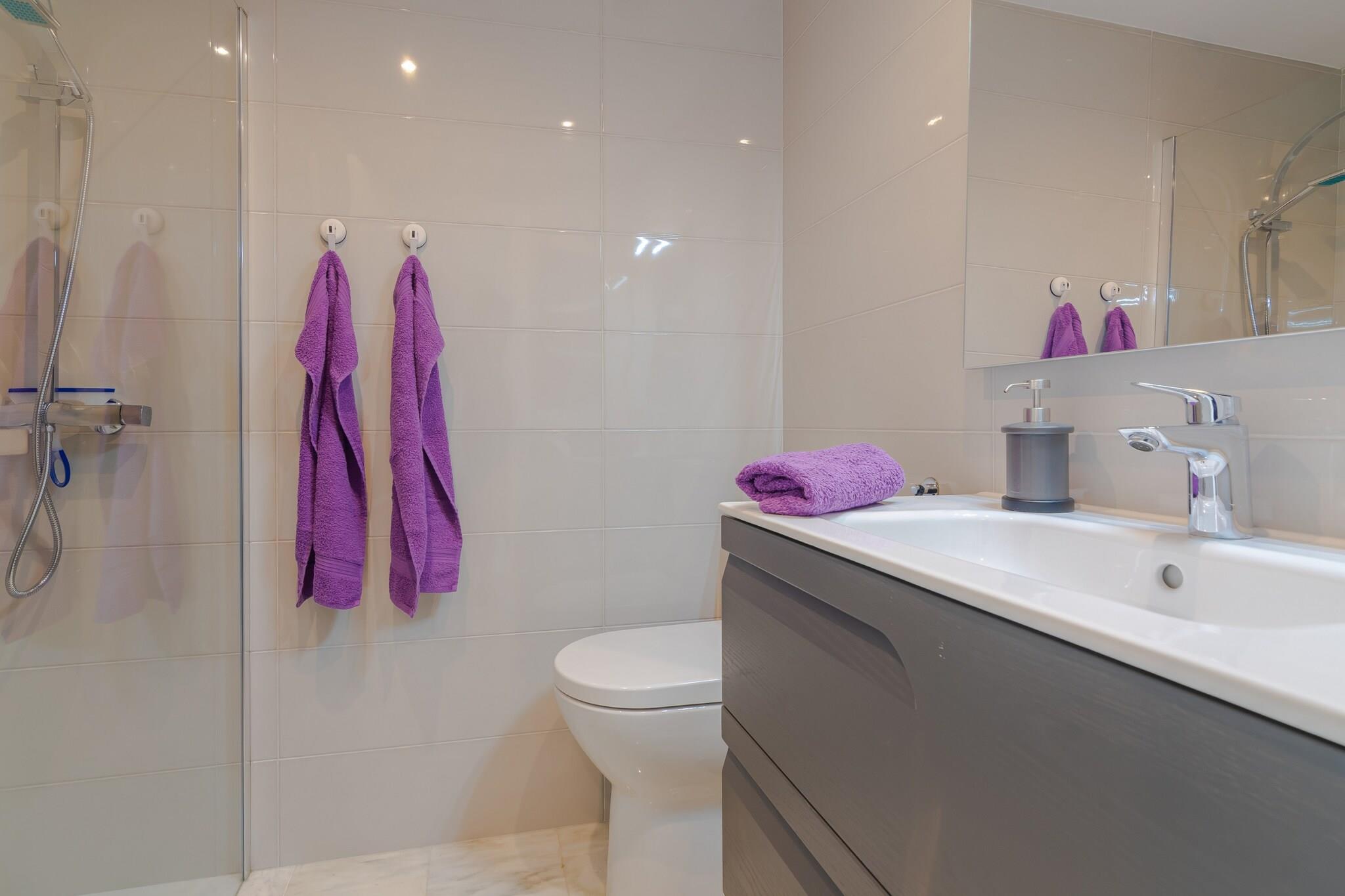 Åbent køkken(elkedel, brødrister, kaffemaskine, ovn, mikrobølgeovn, opvaskemaskine , køle-fryseskab, , ), stue / spisestue(Fjernsyn(fladskærm), spisebord, sofahjørne), soveværelse(dobbeltseng), soveværelse(enkeltseng, enkeltseng), Soveværelse med badeværelse(dobbeltseng, bruser, håndvask, toilet), badeværelse(bruser, håndvask, toilet, føntørrer), Internetadgang, Havemøbler, tørretumbler, tremmeseng, vaskemaskine, varme, klimaanlæg, terrasse, parkering, swimmingpool(deles med andre gæster), barnestol, strygejern