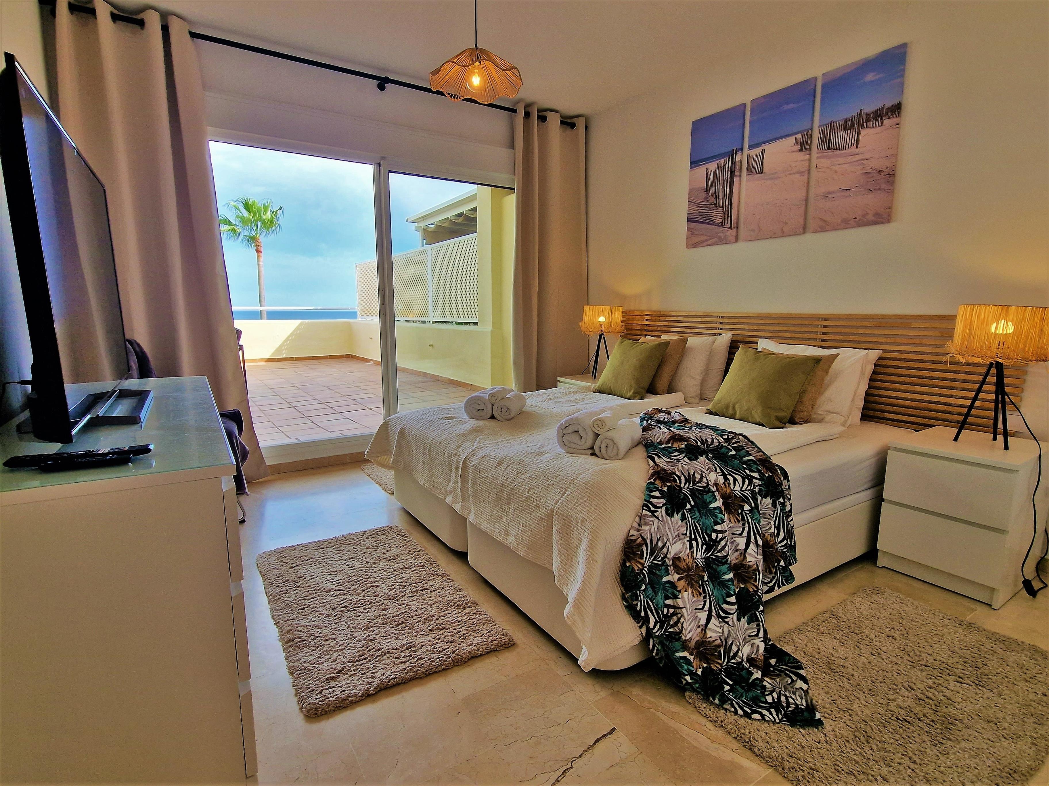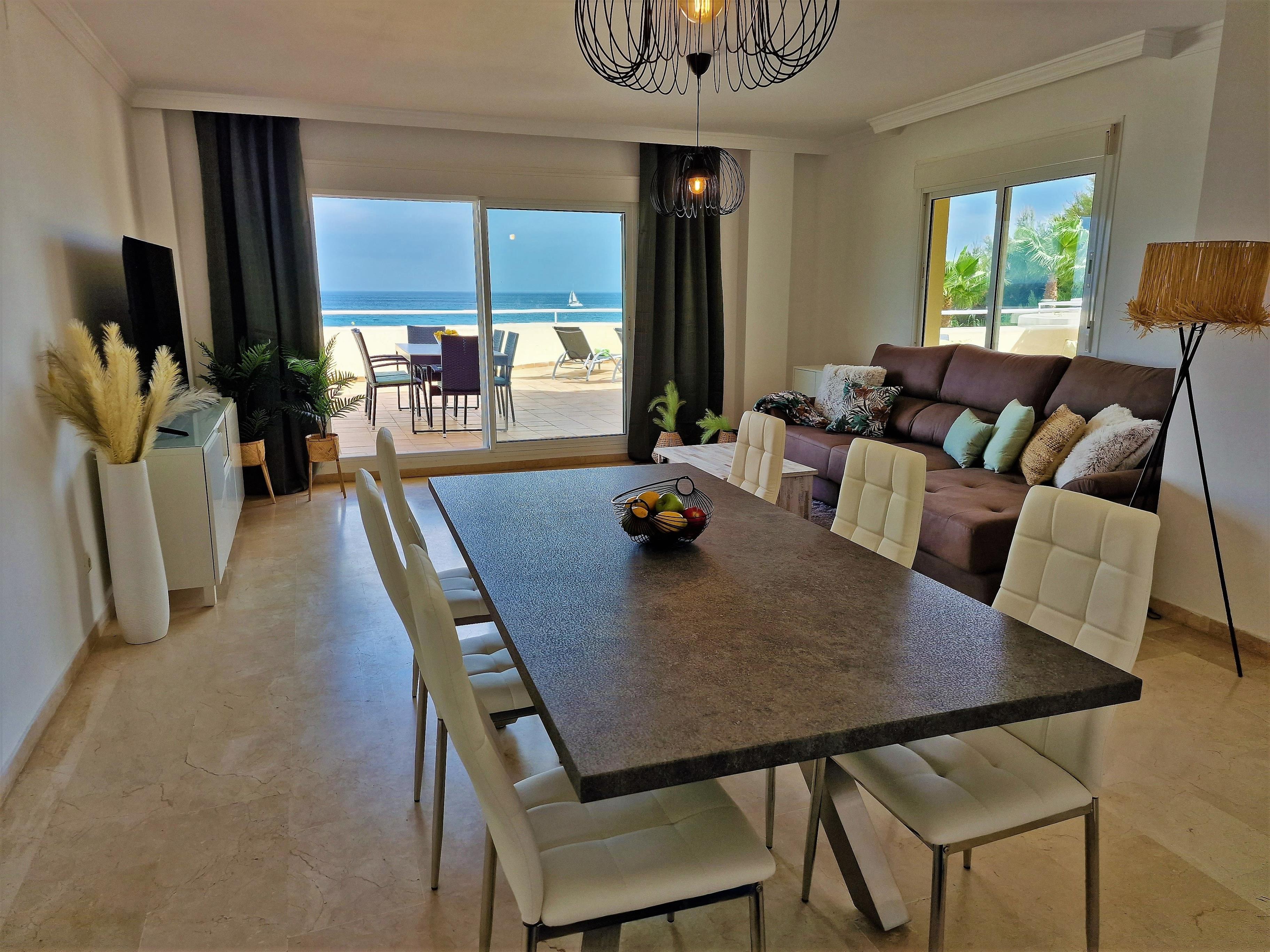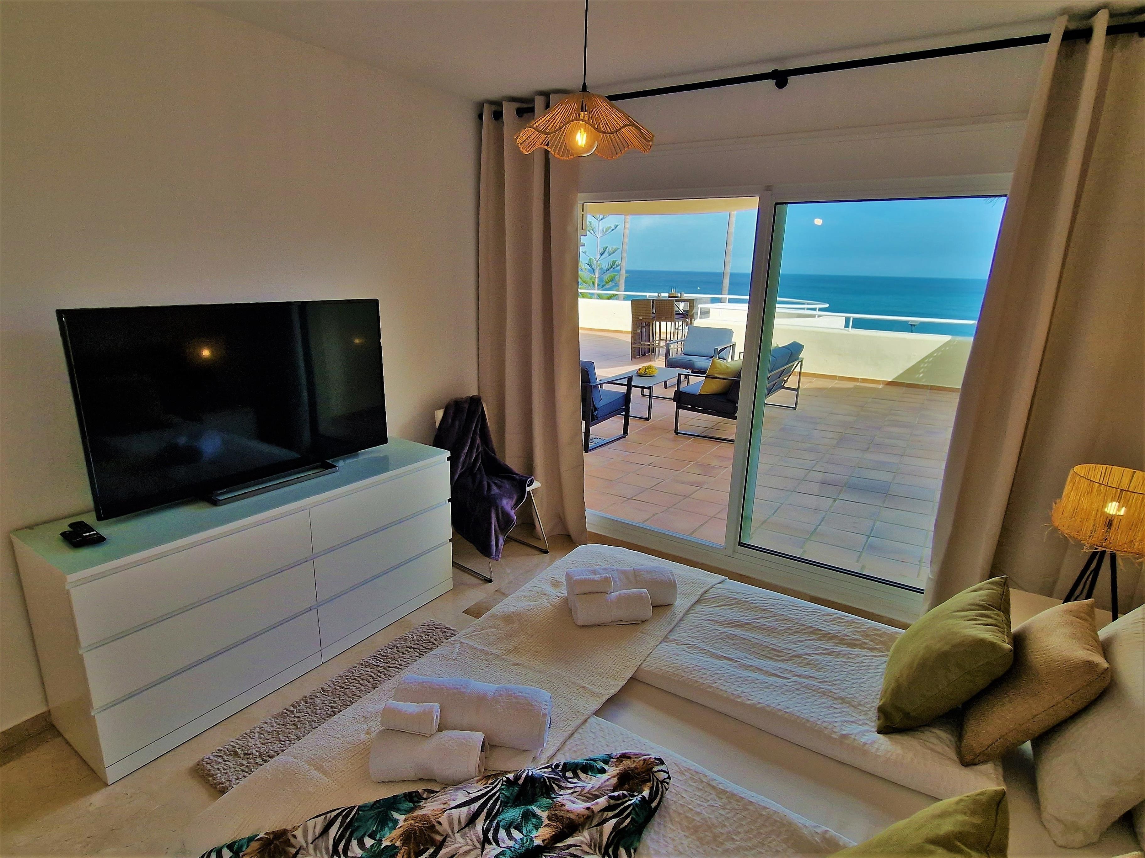 Luxuriöse und sehr grosszügige 2-Schlafzimmer-Wohnung direkt am Strand mit 100m² grosser privaten Terrasse mit frontalem Panorama-Meerblick; 2 Schlafzimmer; 2 Badezimmer, 2x 65" LED-TVs, Klimaanlage, deutsches SAT-TV, WLAN Internet, Pools, Paddeltennisplatz... GRATIS WIFI!