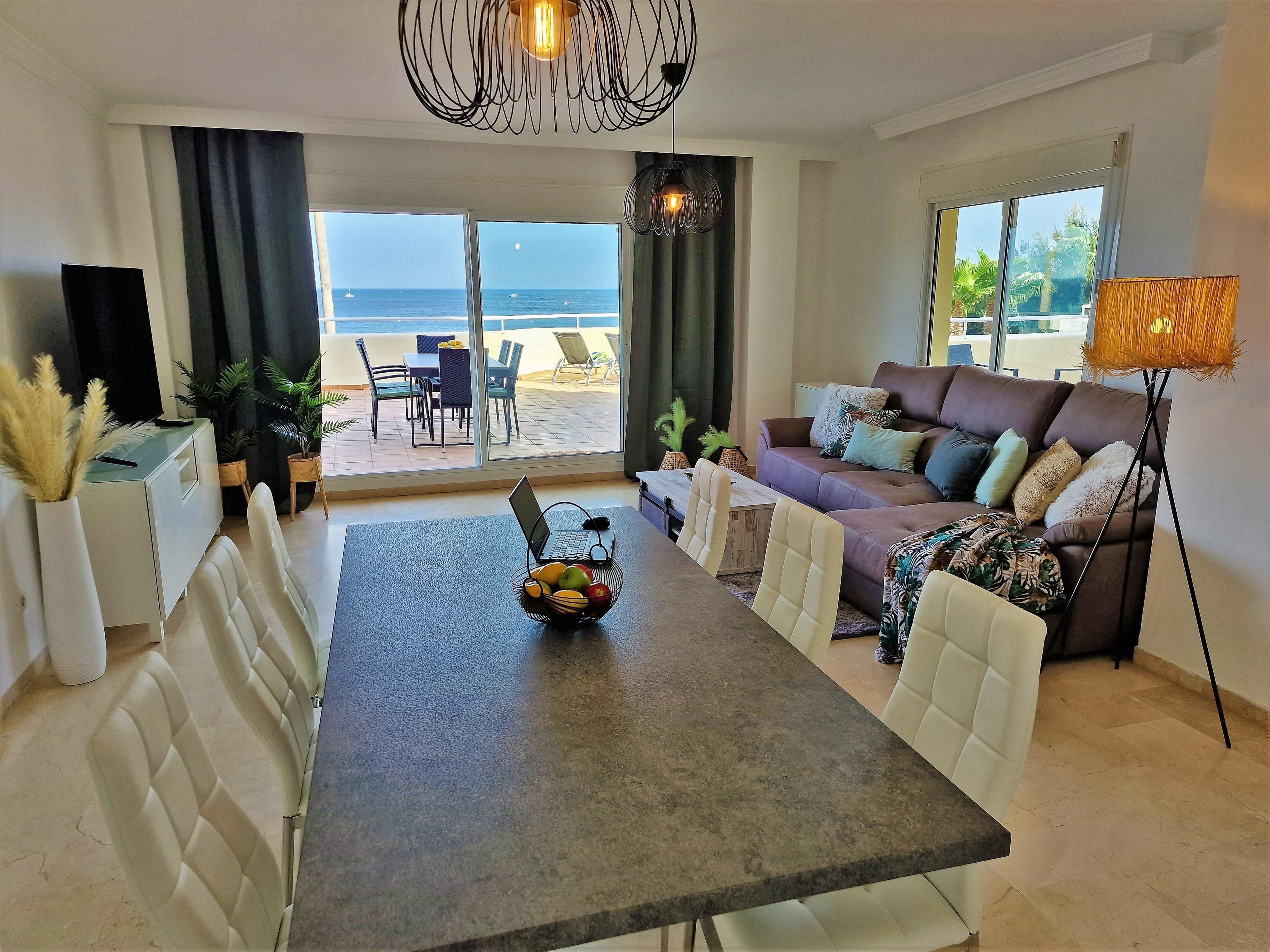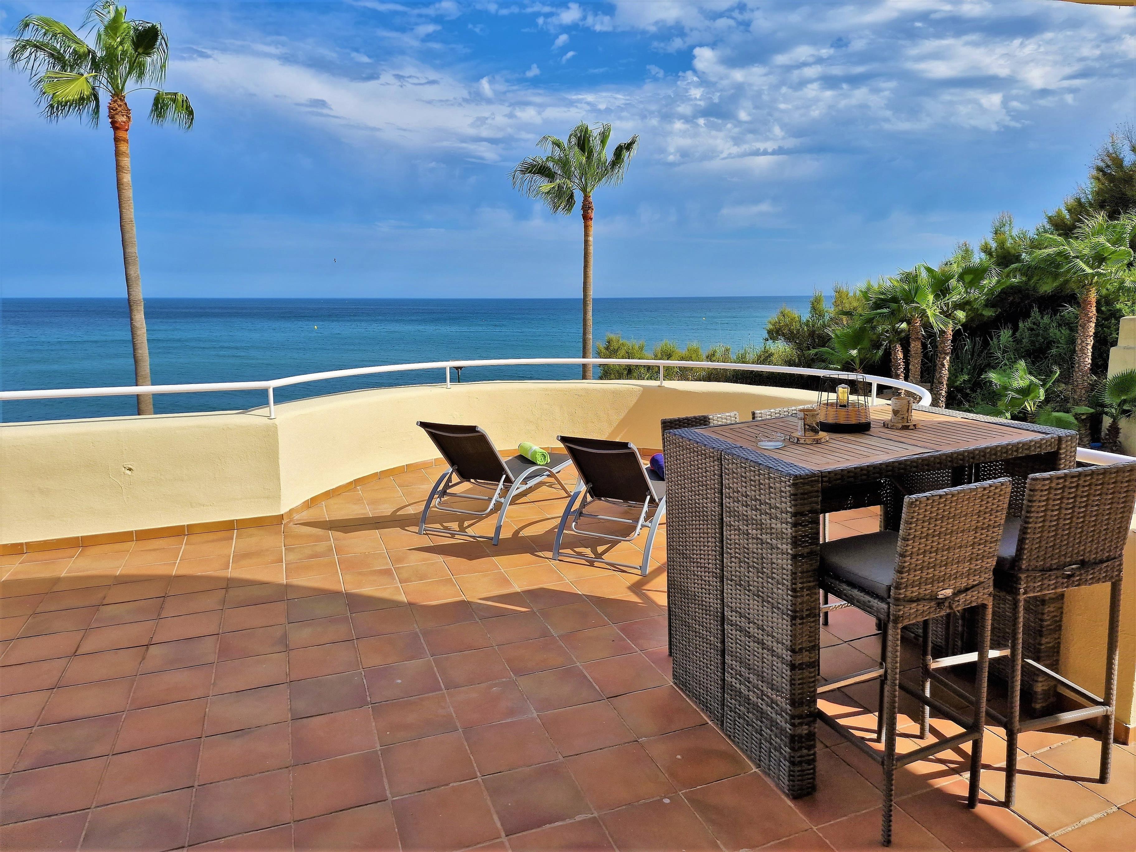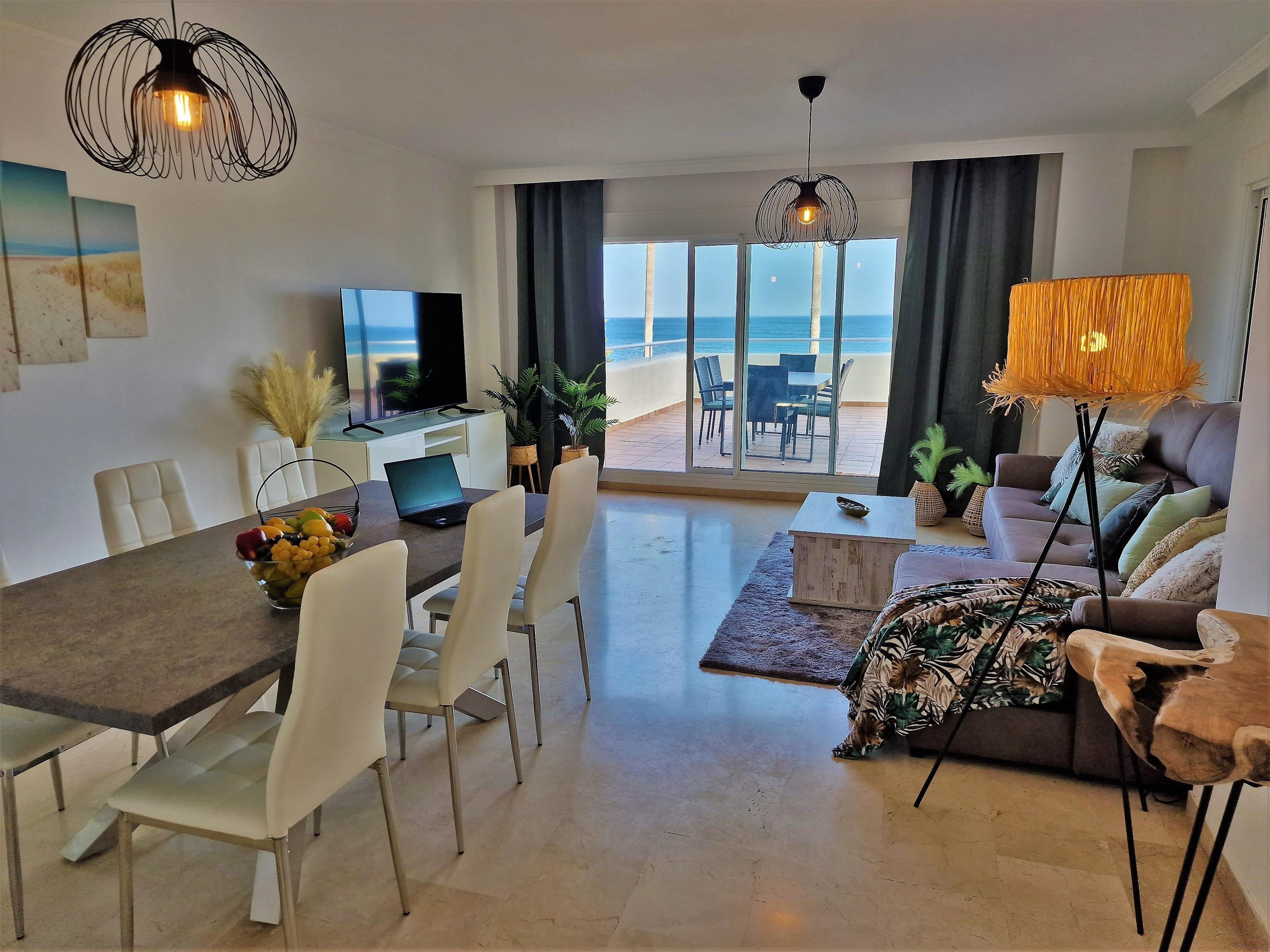 Luxuriöse und sehr grosszügige 2-Schlafzimmer-Wohnung direkt am Strand mit 100m² grosser privaten Terrasse mit frontalem Panorama-Meerblick; 2 Schlafzimmer; 2 Badezimmer, 2x 65" LED-TVs, Klimaanlage, deutsches SAT-TV, WLAN Internet, Pools, Paddeltennisplatz... GRATIS WIFI!