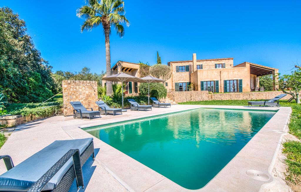 Designet af den berømte mallorcanske arkitekt Antonio Esteva, kombinerer villaen "Esteva" på elegant vis tradition med moderne stil kan læse en god bog eller nyde et lækkert måltid, mens I nyder naturens skønhed Den turkise pool inviterer jer til at køle af på varme dage. suppleret med liggestole af teaktræ og skyggen af palmer Indvendigt fører villaens foyer til en rummelig opholds- og spiseafdeling, som strækker sig over to plan, og hvor I kan slappe af slappe af Der er tre smukt møblerede soveværelser, hver med eget badeværelse, mens mastersuiten har et luksuriøst badeværelse og en privat tagterrasse med en fantastisk havudsigt. På køligere dage giver gulvvarme komfort og sikrer et afslappende ophold på alle tider af året. Denne smukke villa er beliggende på østsiden af Mallorca mellem Artà og Manacor (i kystkommunen Sant Llorenc) midt i et af de roligste og alligevel mest varierede landskaber på øen. Den betagende sandbugt Cala Varquez kan nås på cirka 10 minutter i bil. Vi anbefaler også et besøg i Cala Bona med to små bugter og en smuk fiskerihavn, samt moderne Sa Coma med sin lange sandstrand. Butikker, restauranter og barer findes i det nærliggende Sant Llorenc og i den smukke fiskerlandsby Porto Cristo. Hver torsdag morgen kan I besøge det ugentlige marked i Sant Llorenc.