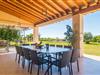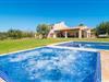 Det frodige middelhavslandskabs frodige grønne, himlens og poolens dybe blå, de lilla liggestole, en glat pudset førsteklasses villa omgivet af oliventræer - velkommen til den fantastiske villa "Febrer"! Villaen og dens grund tilbyder en større rejsegruppe et tilsvarende rummeligt feriehus med fremragende faciliteter. Uanset om I er kommet hertil for at dyrke sportslige hobbyer som vandreture eller cykling eller for at holde ferie i naturen og ved havet med jeres store familie eller venner - så er I kommet til det rette sted, alt sammen i kombination med et mildt middelhavsklima. Villaen er omgivet af palmer og oliven og ligger i et stort, beskyttet skovområde i et landligt område. På en kæmpe privat ejendom på 38.000 m² kan I nyde stedets fred og ro og opleve det originale Mallorca. I den baleariske sommer vil I gerne bruge det meste af jeres tid udenfor. Den 60 m² private pool med en dybde på 1,80 m giver jer muligheden; Der er også et spabad, indlejret i naturstensterrassen. Begge er oplyst i mørke. Den udendørs bruser sparer jer for turen ind i huset. Måltiderne indtages på den 60 m² store veranda ved huset, som er tilgængelig gennem adskillige gulv-til-loft-vinduer. En grill er til rådighed til en hyggelig grillaften. Det stilfulde loungeområde bruges til dagens afslappende øjeblikke. Fra den overdækkede terrasse og poolområdet kan I nyde en fantastisk udsigt over Alcúdia-bugten og Cap de Formentor, som markerer øens østligste punkt. Afslapning er topprioritet hos Villa “Febrer”, og det er selvfølgelig også muligt med et spil bordtennis på murstensbrættet eller i en af de to Hollywood-gynger. Villaens indre er præget af fængslende skønhed og elegance. I betragtning af størrelsen af den rejsegruppe, der komfortabelt kan rumme her, er fællesrummene i stueetagen - stuen og den åbne spisestue - meget rummelige. De lyse områder giver plads til individuel bevægelse og til at trække vejret frit og imponere med deres smarte elegance med de hvide vægge, de synlige træbjælker og de store gulvfliser. Møbleringen er tilpasset denne tidløse, moderne smag: Et indbydende langt spisebord til alle gæster står ved siden af det moderne, hvidt indrettede køkken med kogeø - her bliver det at lave mad sammen en kommunikativ og glædelig oplevelse og eliminerer enhver gener. Et LCD-tv i opholdsområdet inviterer jer til at tilbringe hyggelige aftener. De komfortable værelser er yderst smagfuldt indrettede, med vægt på klare linjer og stil. I stedet for at indrette hvert værelse ens, har ejerne valgt et individuelt design til hver soveværelsessuite: Dette spænder fra enkle hvide møbler til kalket eg og lysegrå. For at sikre jeres privatliv inden for jeres rejsegruppe er fire af soveværelserne udstyret med private badeværelser. De to andre badeværelser er tilknyttet de resterende to soveværelser, men har ikke eget badeværelse. Alle badeværelser er udstyret med meget moderne og fremragende toiletartikler og har enten badekar eller brusekabine. Den betagende villa "Febrer" er beliggende i en absolut afsondret beliggenhed og omgivet af palmer og oliventræer på en privat grund på 38.000 m², nær den lille by Colonia de Sant Pere i udkanten af Alcúdia-bugten. I kan shoppe i det nærliggende centrum af Colonia eller køre til Betlem. De smukkeste strande i Alcúdia-bugten som Son Serra de Marina (4,2 km) og Torrent de na Borges (6 km) kan nemt nås med lejebil. Bemærk venligst, at denne ejendom ikke accepterer ungdomsgrupper eller polterabender. En ungdomsgruppe på denne ejendom består af personer på 25 år eller derunder. Book ikke denne ejendom, hvis I er en ungdomsgruppe eller polterabend, da jeres reservation vil blive afvist, når den er booket, hvilket også kan være tilfældet ved ankomst til ejendommen eller under jeres ophold, og I vil ikke modtage en refusion