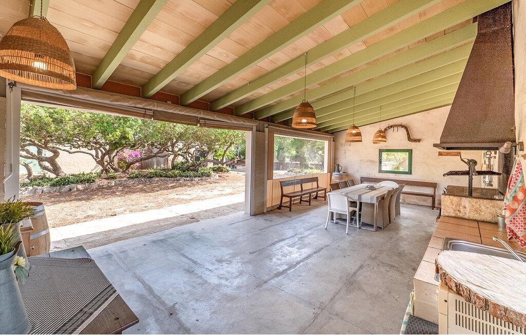 Udendørsområdet er omgivet af et idyllisk naturlandskab og lover harmoniske øjeblikke, hvor I kan nyde middelhavsklimaet fuldt ud. Snup en frisk dukkert i poolen, beundre magiske solnedgange og tænd grillen på varme sommeraftener for at fejre tiden sammen med vin og levende lys.