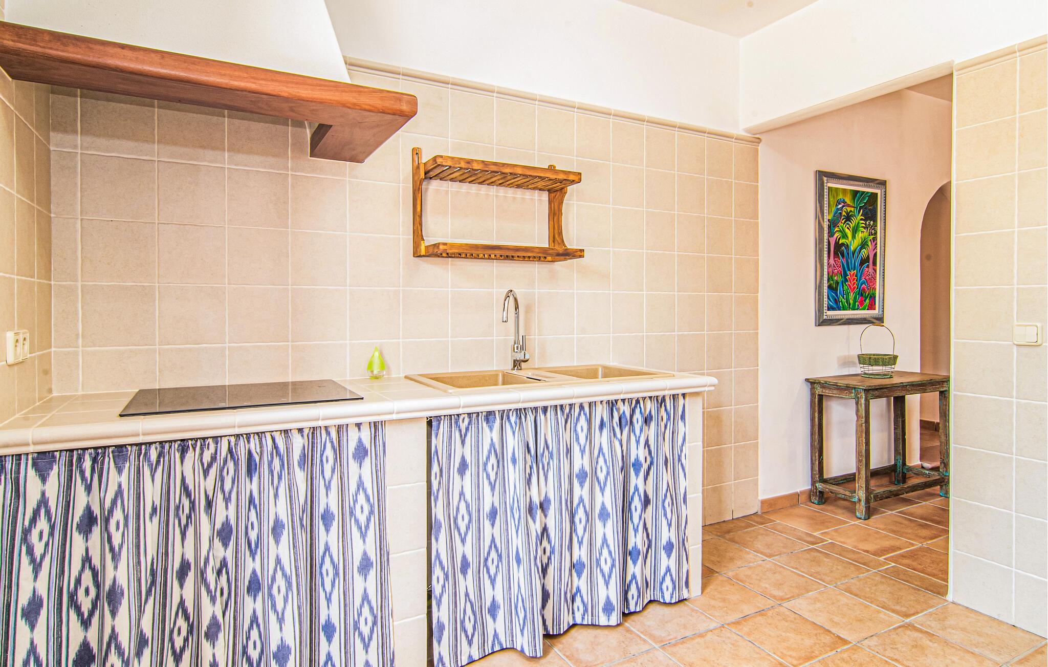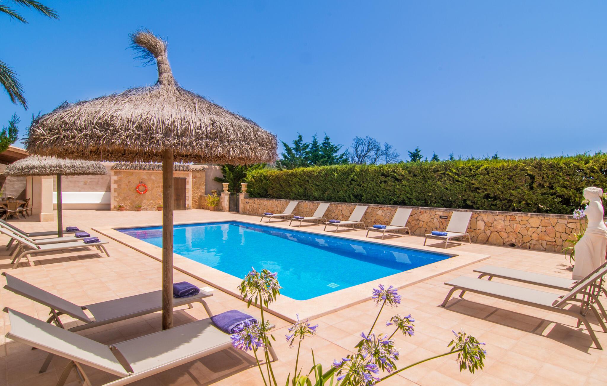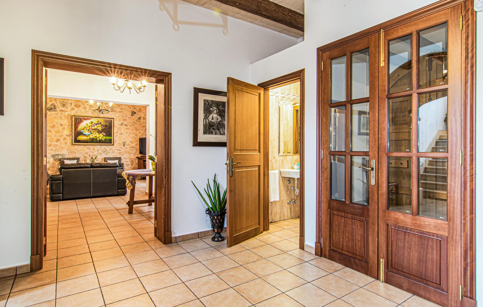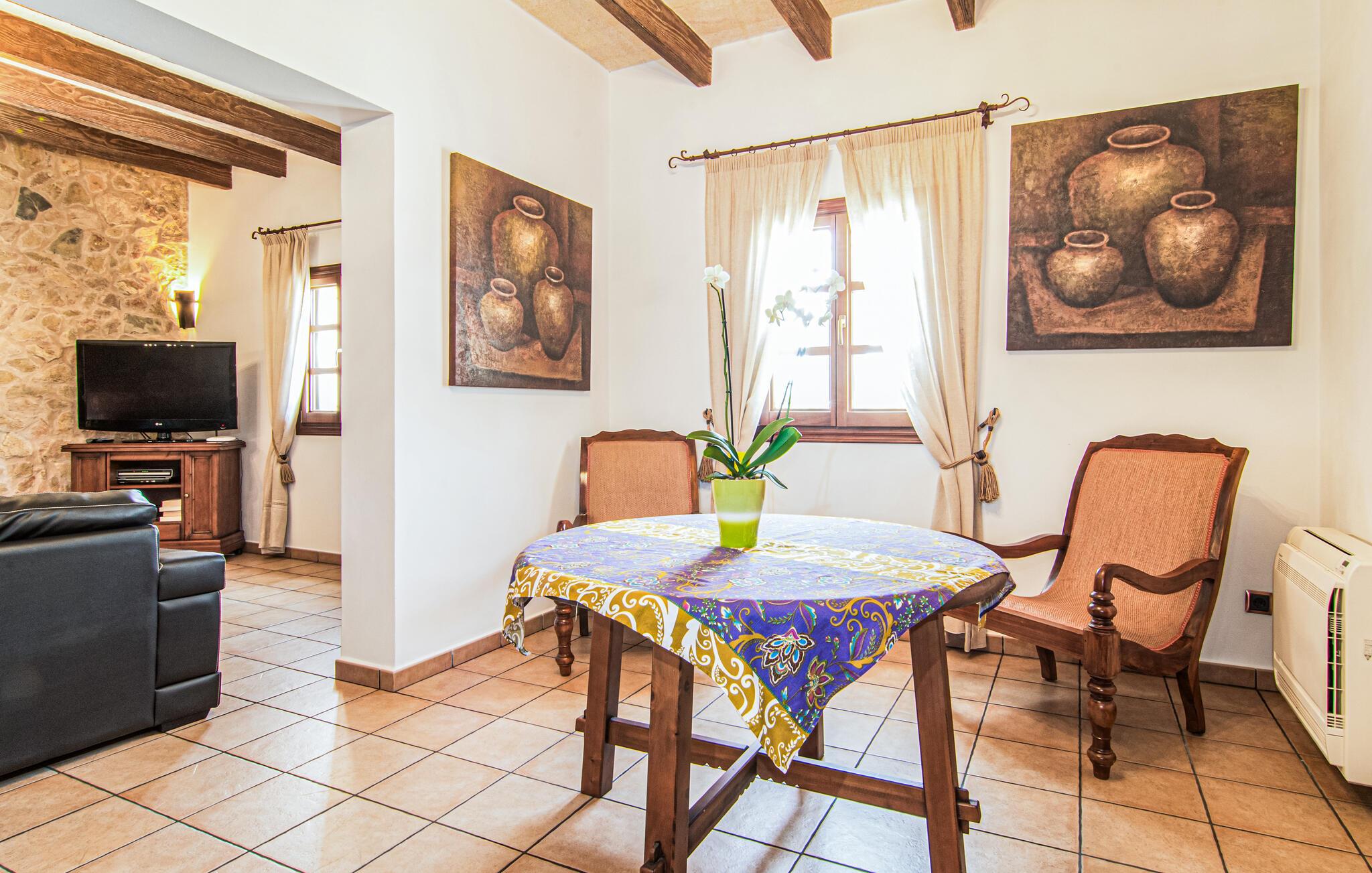 Oplev en afslappende ferie i dette autentiske feriehus med en stor pool i en idyllisk beliggenhed. Beliggende på en fredelig, rummelig grund byder denne smukke mallorcanske ejendom jer varmt velkommen. Træd indenfor og udforsk de smukt møblerede værelser, hvor velholdte træbjælker, naturstensvægge og storslåede traditionelle møbler skaber en autentisk atmosfære. Fremtryl lækre måltider i det rummelige køkken, snak i en af de mange komfortable sofaer, eller træk jer tilbage til jeres yndlingssted for at læse i ro og mag. Den storslåede, afsondrede pool tilbyder forfriskende dukkerter fra tidlig morgen til varme sommernætter. Lyt til fårekyllingernes kvidren, mens I slapper af på de behagelige liggestole, og glæd jer til stemningsfulde grillaftener med vin og stearinlys. Tag en vandretur op til Sant Salvador-klosteret, hvor I vil blive belønnet med en betagende panoramaudsigt over øen. Gå en tur gennem den charmerende gamle bydel, hvor storslåede bypaladser og små kunstgallerier er gemt bag århundredgamle facader, og prøv regionale produkter på det farverige søndagsmarked. Stop ved en hyggelig restaurant i den rolige havn i Portocolom og dyk ned i det turkisblå vand i en af de mange små bugter langs østkysten. Vinelskere vil finde deres mæthed på Bodega Ànima Negra.