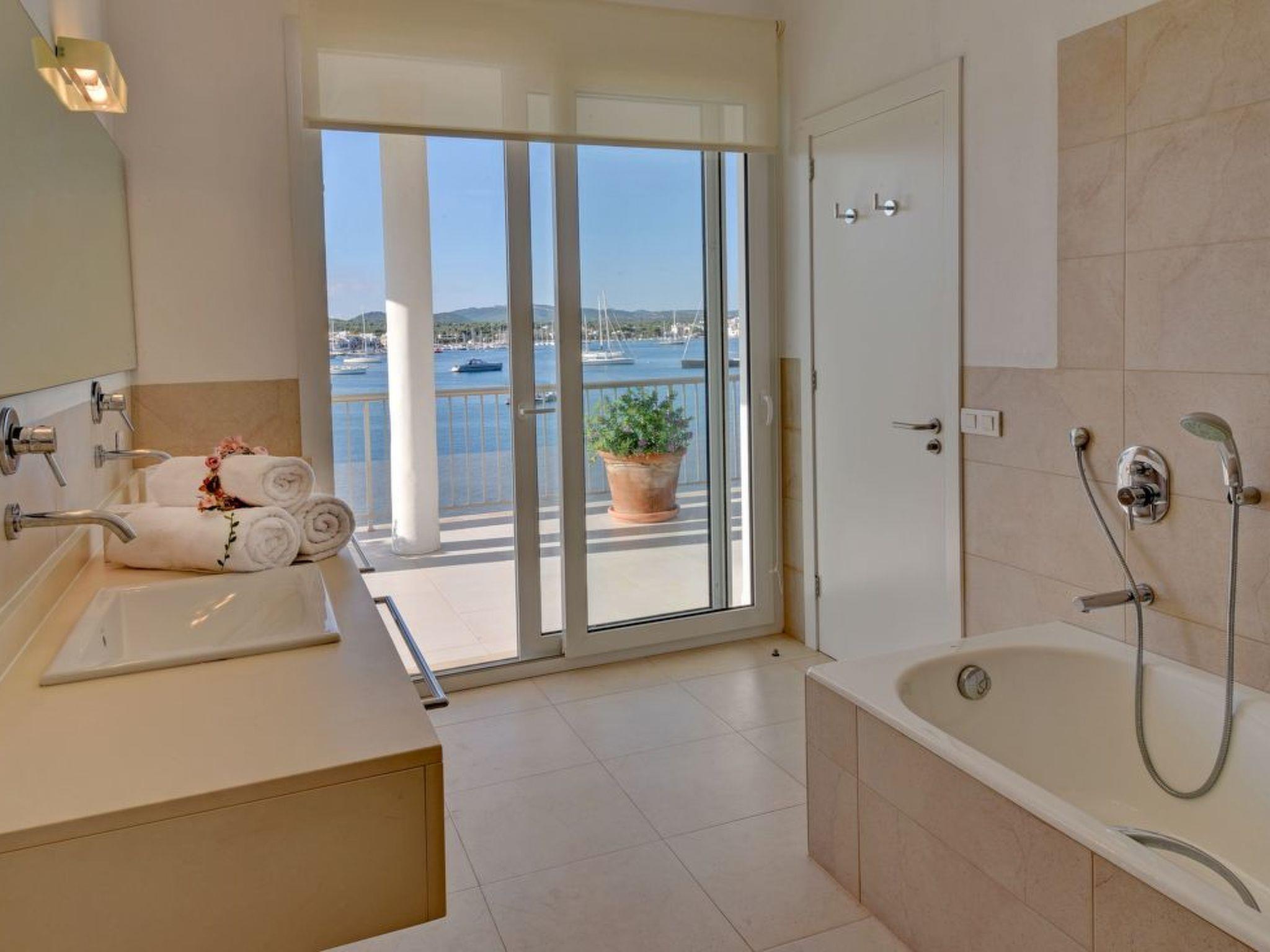 This luxury villa is situated in an unbeatable location on the seafront with fantastic views over the harbour of the picturesque fishing village of Porto Colom. The house offers a panoramic view from the harbour over the small sandy beaches of S'Arenal to the typical colourful fishermen's houses. Porto Colom is a charming, quiet fishing village, known for its unique and large natural inland harbour, where you can still watch the fishermen mending their nets on the pier. There are many excellent restaurants and bars along the harbour promenade, all with fantastic views of the harbour. Various sandy bays can be reached in a few minutes by car.