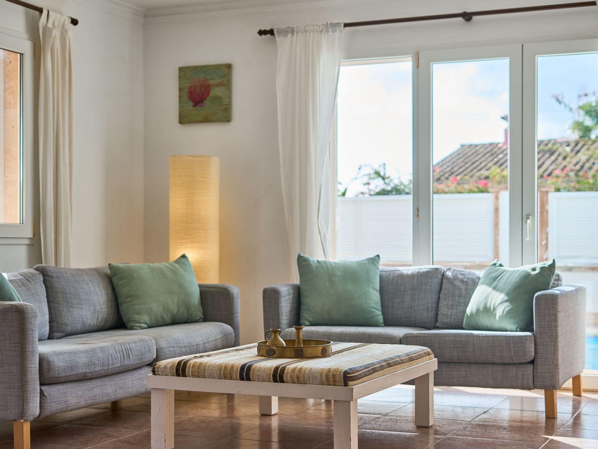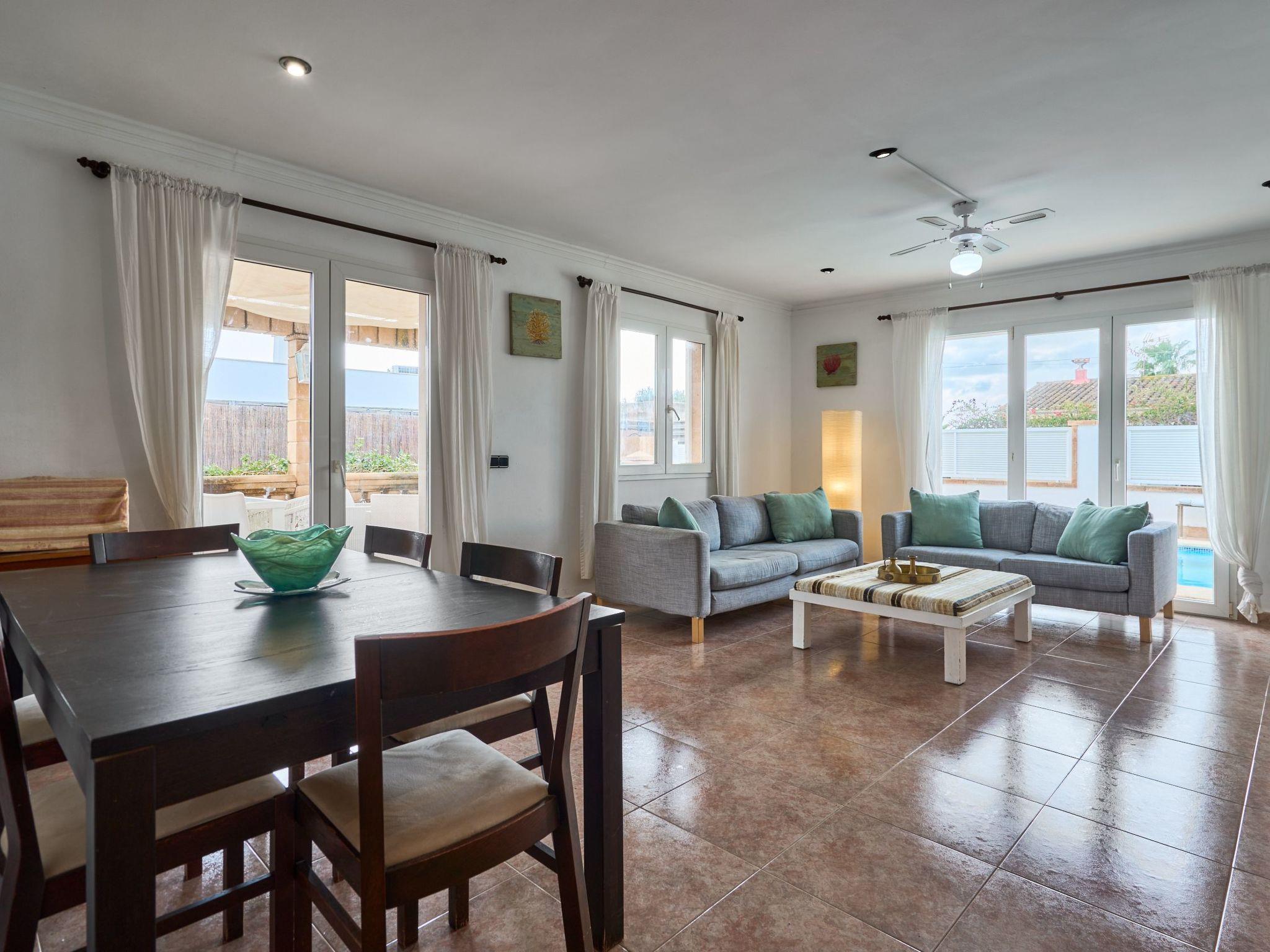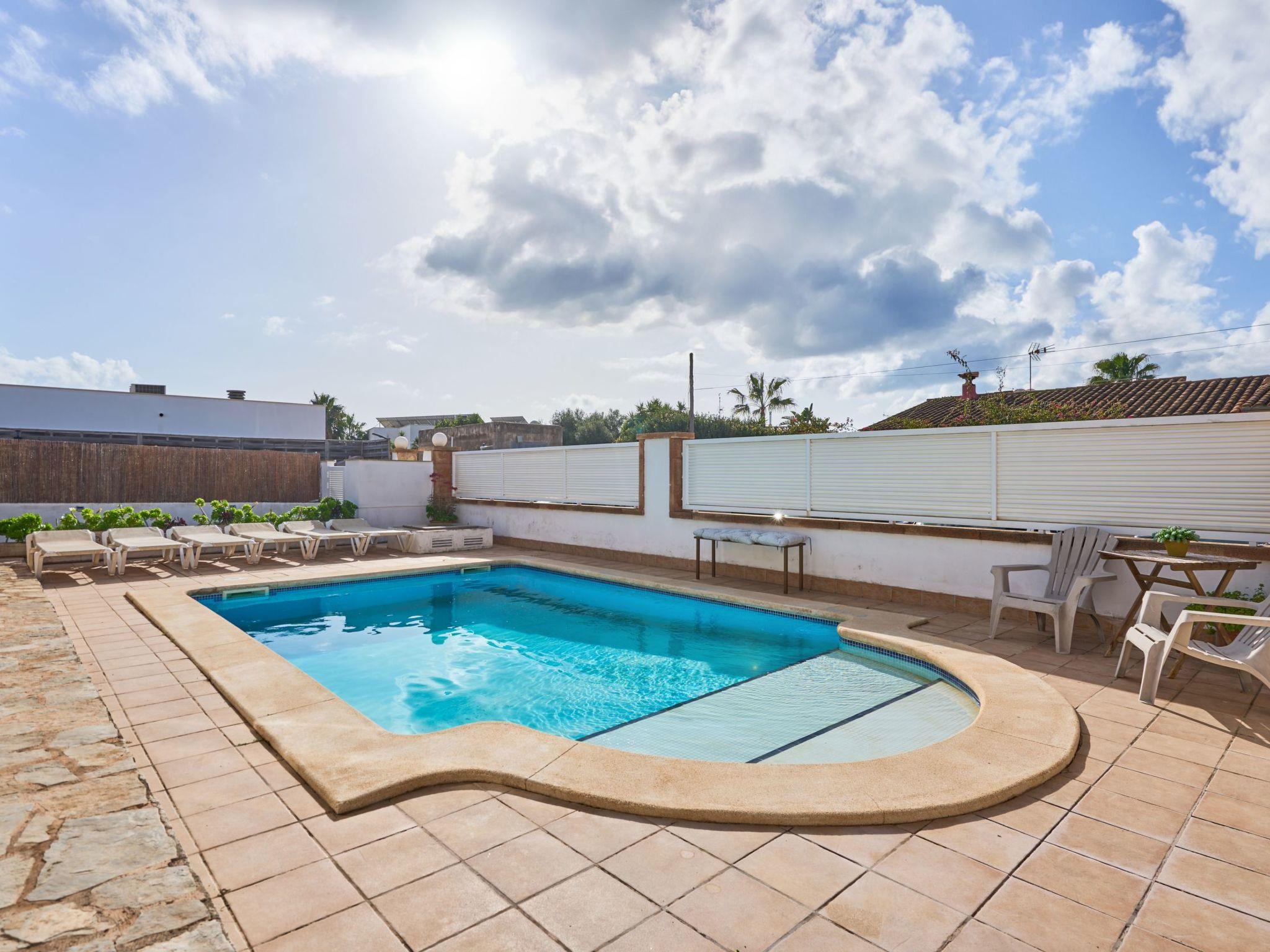 Holiday home Martín for 6 people, for rent in Portocolom, Mallorca. It is located at the end of a cul-de-sac in a residential area of the quiet coastal town of Porto Colom; one of the largest natural harbours in Mallorca. Porto Colom still retains the charm of a fishing village, where you can still see fishermen repairing their nets at the dock. There are also supermarkets, restaurants, shops and beautiful sandy coves.