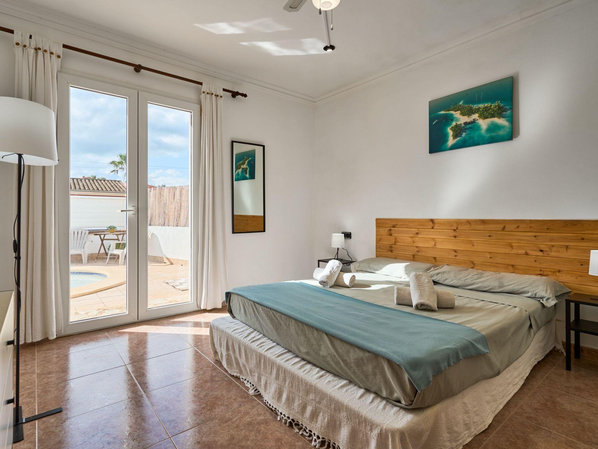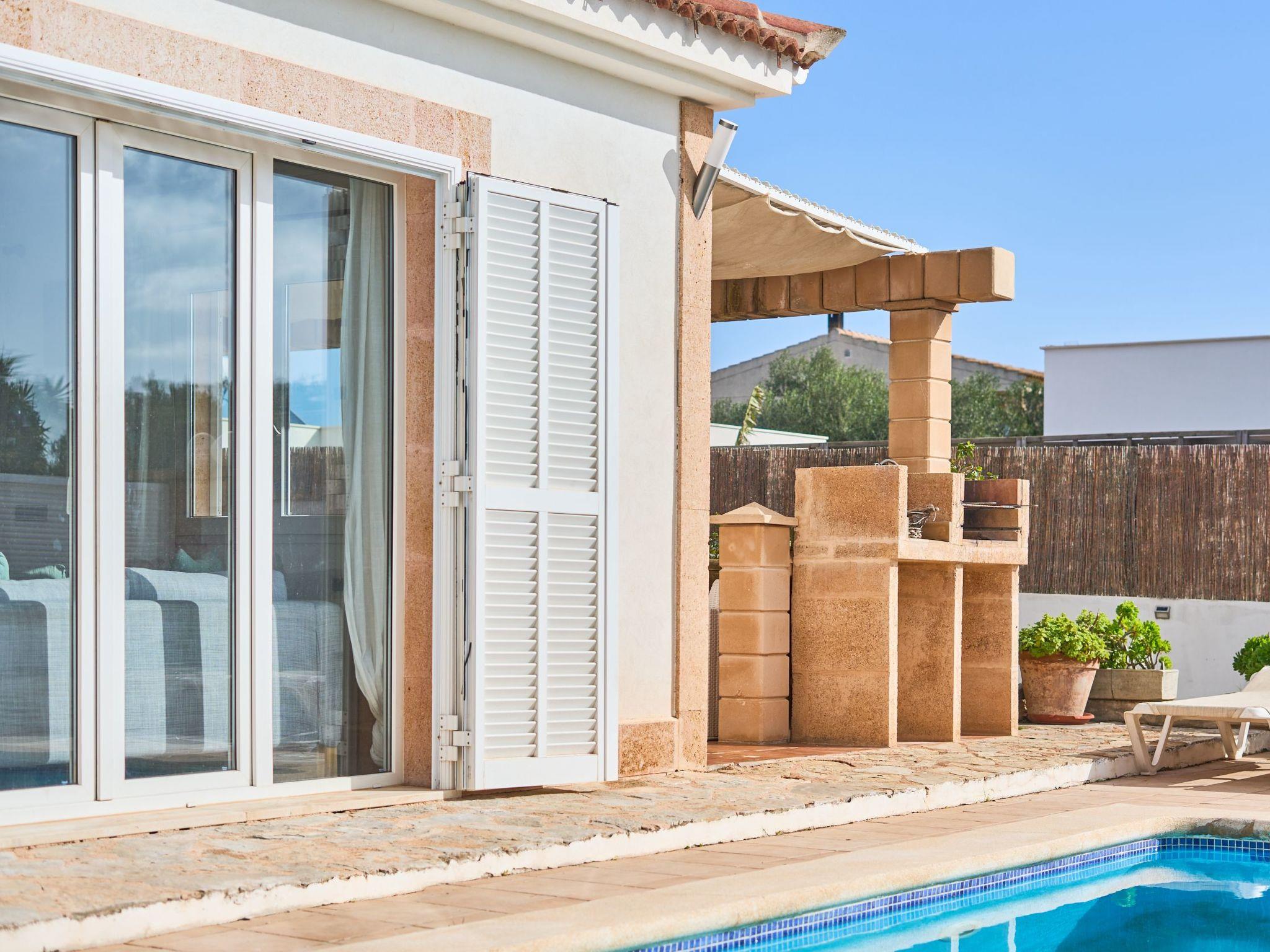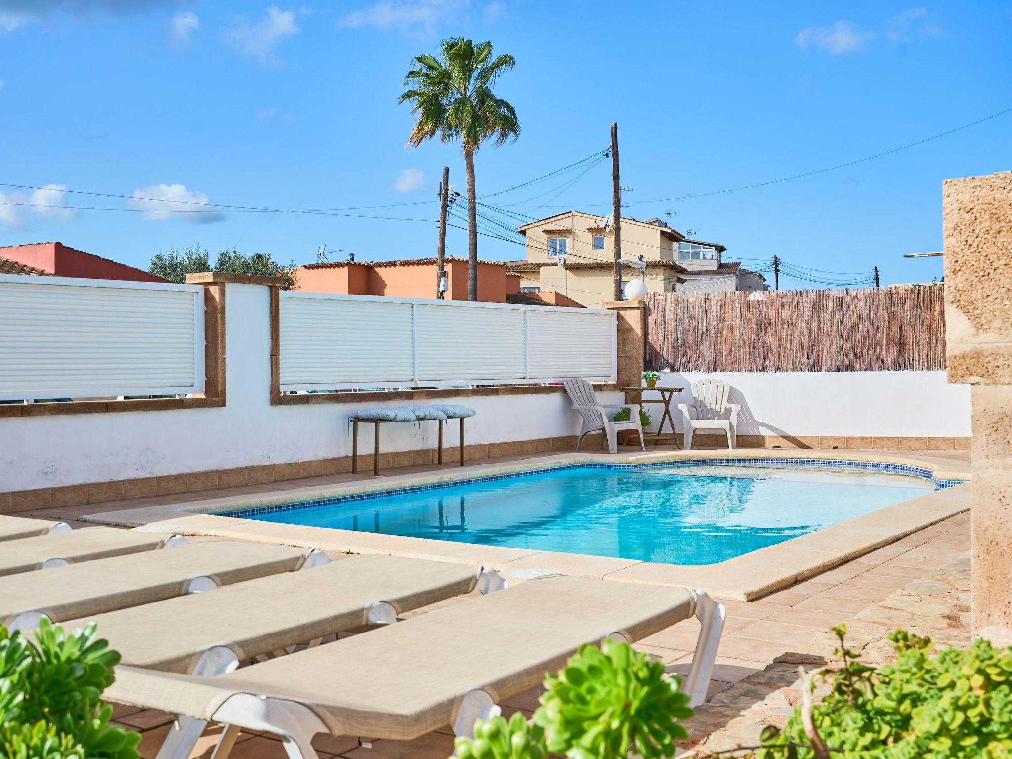 Holiday home Martín for 6 people, for rent in Portocolom, Mallorca. It is located at the end of a cul-de-sac in a residential area of the quiet coastal town of Porto Colom; one of the largest natural harbours in Mallorca. Porto Colom still retains the charm of a fishing village, where you can still see fishermen repairing their nets at the dock. There are also supermarkets, restaurants, shops and beautiful sandy coves.