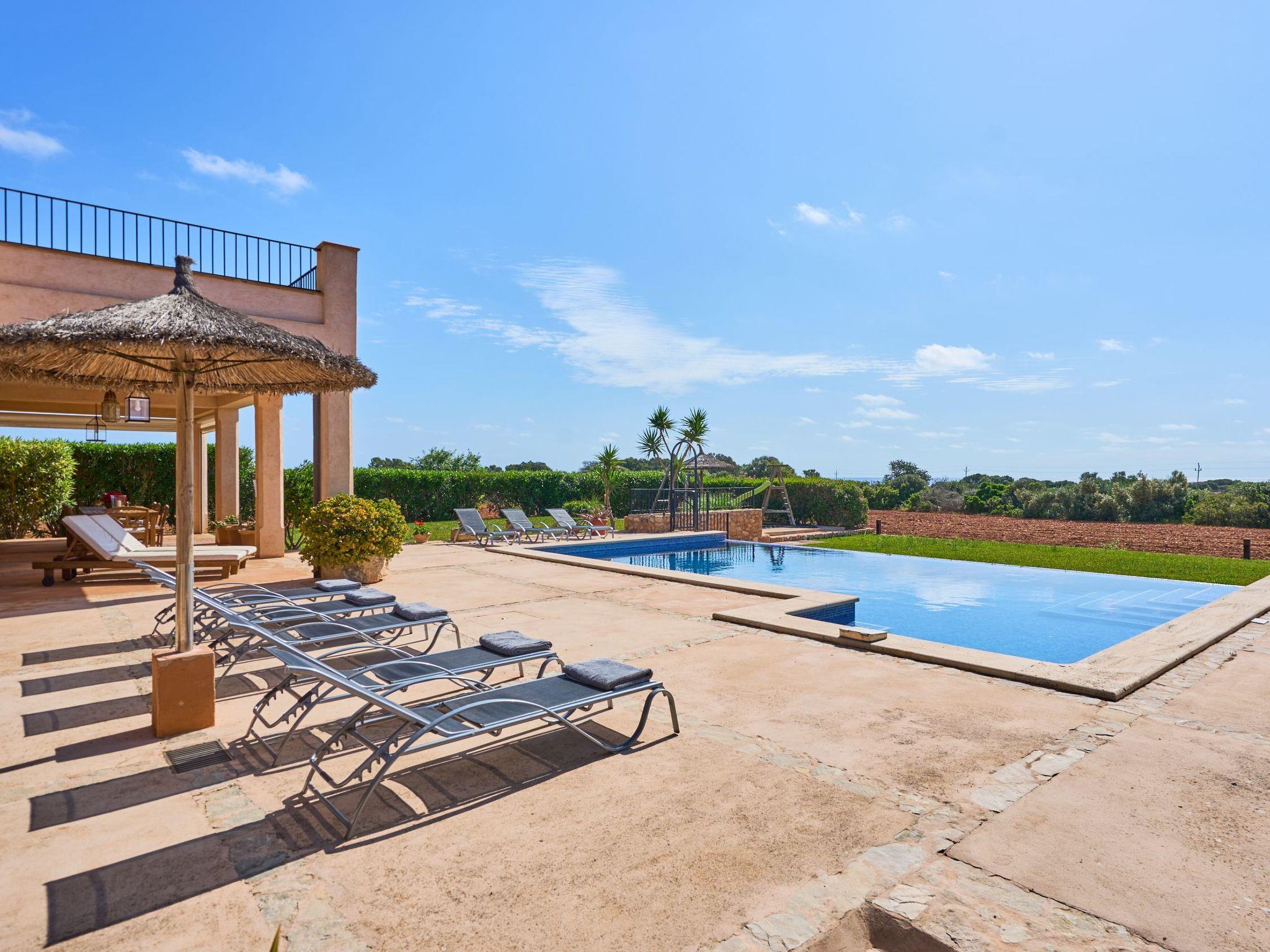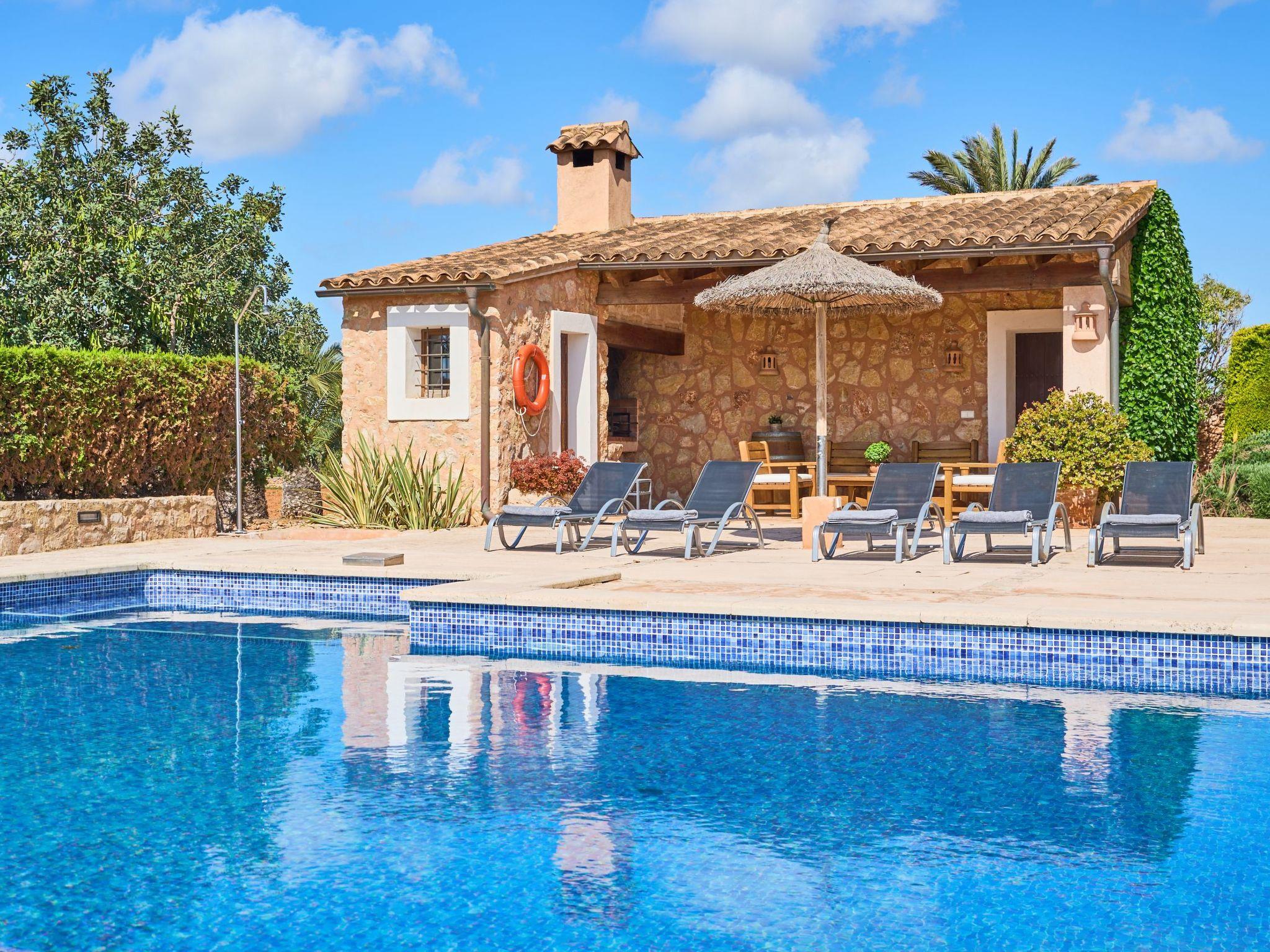 The beautiful country house is beautifully situated, with a 35,000 m² plot, and outstanding views over the sea, the Puig de Sant Salvador, and distant mountains. A 15-minute walk will take you to beautiful sandy beaches and Cala d'Or is only 5 minutes away by car. The house has a private driveway.