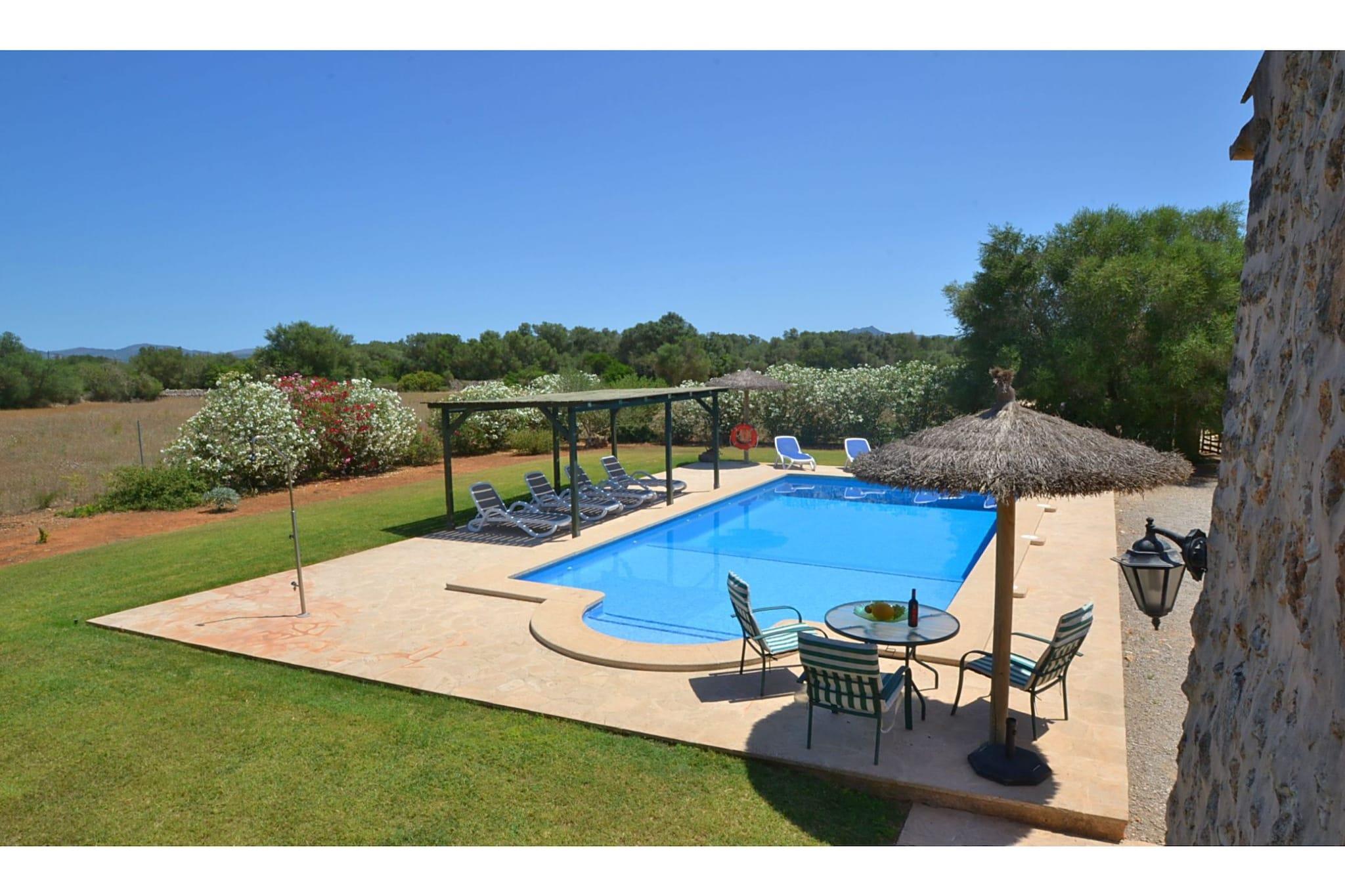 Traditionel mallorcansk charme Træd ind i et smukt restaureret 200 år gammelt palæ, der blander autentisk mallorcinsk karakter med moderne komfort. Rummeligt interiør har fire soveværelser, en indbydende opholds- og spisestue og et veludstyret køkken til fælles måltider. Udenfor finder du en privat swimmingpool med liggestole, græsplæner perfekt til leg og en skyggefuld veranda møbleret med sofaer og borde - ideel til langsomme morgener eller aftensammenkomster under øens himmel. Udforsk Felanitx & Beyond Beliggende nær den fredelige by Villafranca, tilbyder hjemmet nem adgang til autentiske caféer, cykelruter og stille landsbytorve. Kun en kort køretur væk inviterer Felanitx dig til at vandre gennem lokale markeder, butikker og dens livlige hovedplads fyldt med udendørs spisning. Eventyrere kan vandre eller køre op til det nærliggende kloster Sant Salvador, hvor panoramaudsigt over øen skaber en mindeværdig kulisse. Kæledyrsvenlige ø-ophold Rejser du med kæledyr? Denne villa gør det nemt at inkludere dem i dine planer. Den indhegnede have og åbne græsplæner giver sikker plads til at strejfe omkring, mens de nærliggende stier i landskabet er perfekte til naturskønne gåture. Villafranca og Felanitx tilbyder begge kæledyrsvenlige caféer med udendørs terrasser, hvilket sikrer, at dine firbenede ledsagere kan slutte sig til dig, mens du oplever Mallorcas afslappede livsstil. Her kan enhver gæst - menneskelig eller pelset - nyde en ferie fyldt med komfort og opdagelse.