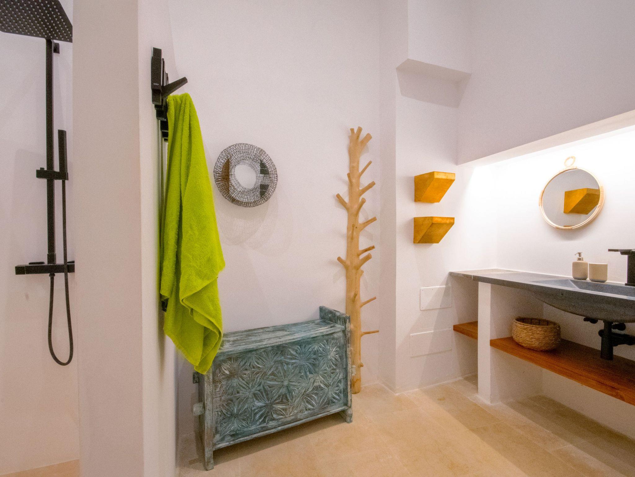 Die Unterkunft ist voll klimatisiert, so dass das ganze Jahr über eine angenehme Temperatur herrscht. Das Haus verfügt über eine voll ausgestattete Küche und 5 Schlafzimmer, die sich auf das Erdgeschoss und die erste Etage verteilen. Im Erdgeschoss befinden sich zwei Schlafzimmer, eines davon auf einem Zwischengeschoss, und im Obergeschoss gibt es drei weitere Schlafzimmer, eine zweite Küche und zwei private Bäder. Damit ist Casa Timbale ideal für Gruppen oder Familien, die Privatsphäre und Komfort suchen.