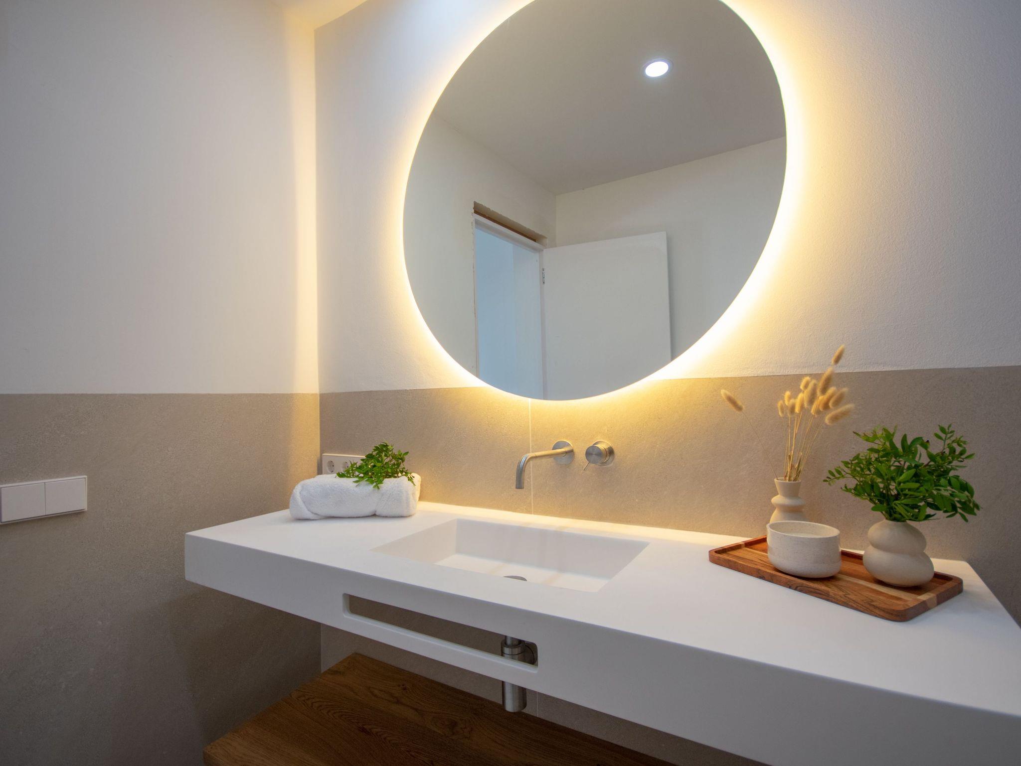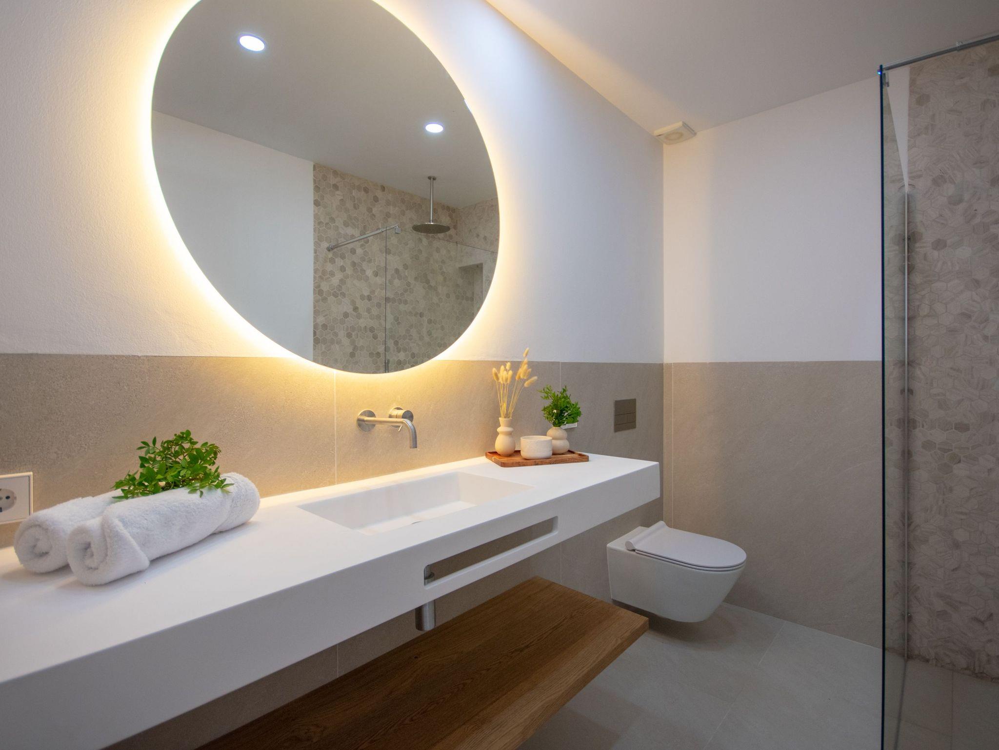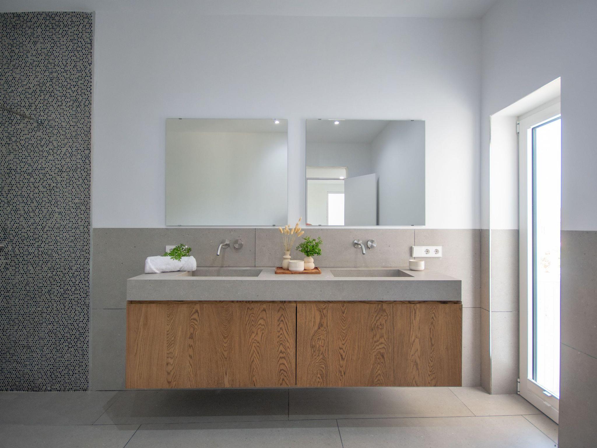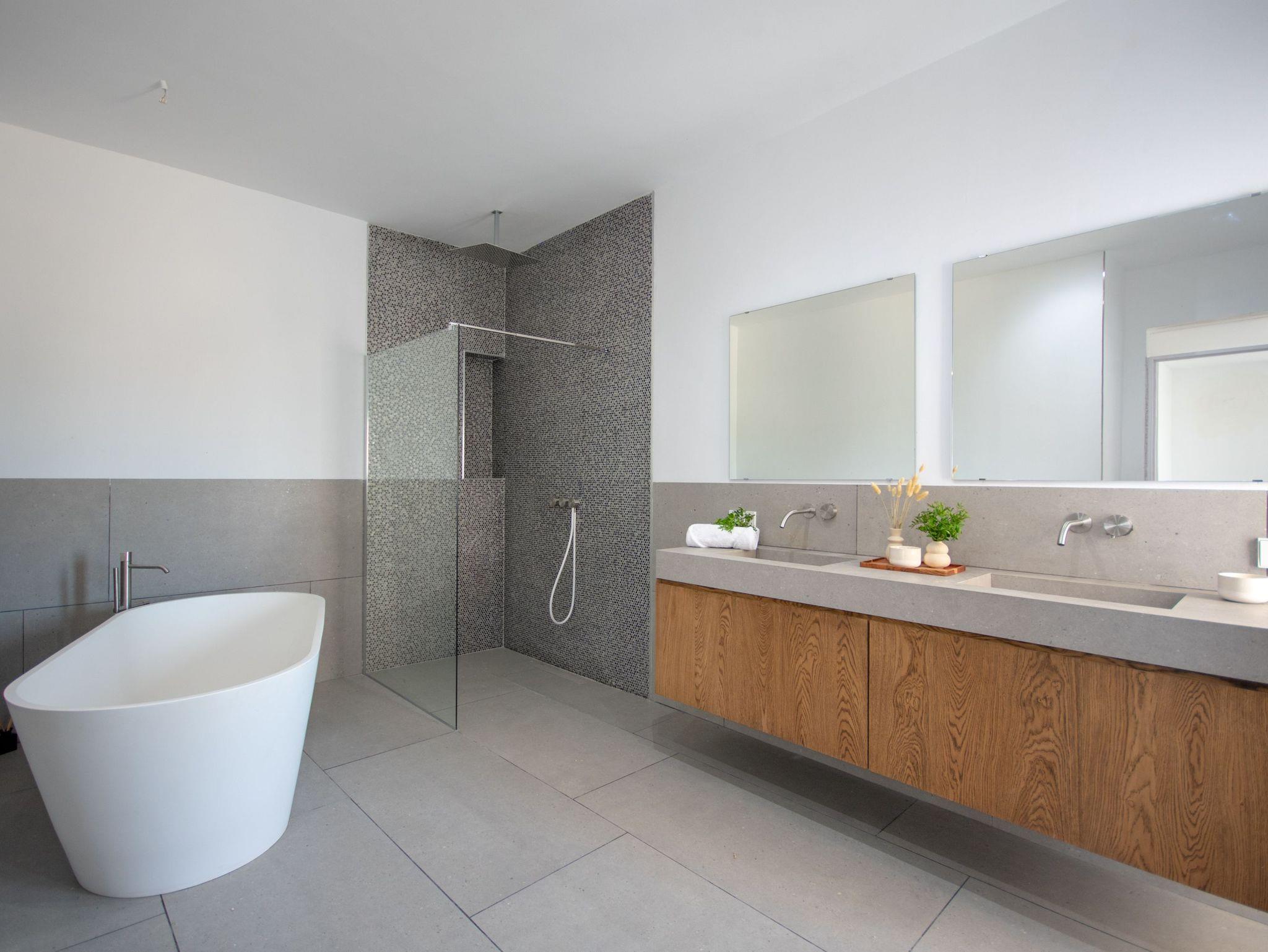 Die Villa bietet großzügige Schlafzimmer mit Klimaanlage und eingebauten Schränken. Eines der Schlafzimmer verfügt über ein eigenes Bad, während die anderen beiden Schlafzimmer jeweils ein Badezimmer in der Nähe haben. Jedes Bad ist mit einer Dusche ausgestattet, wobei das Badezimmer im ersten Stock zusätzlich mit einer Badewanne aufwartet.