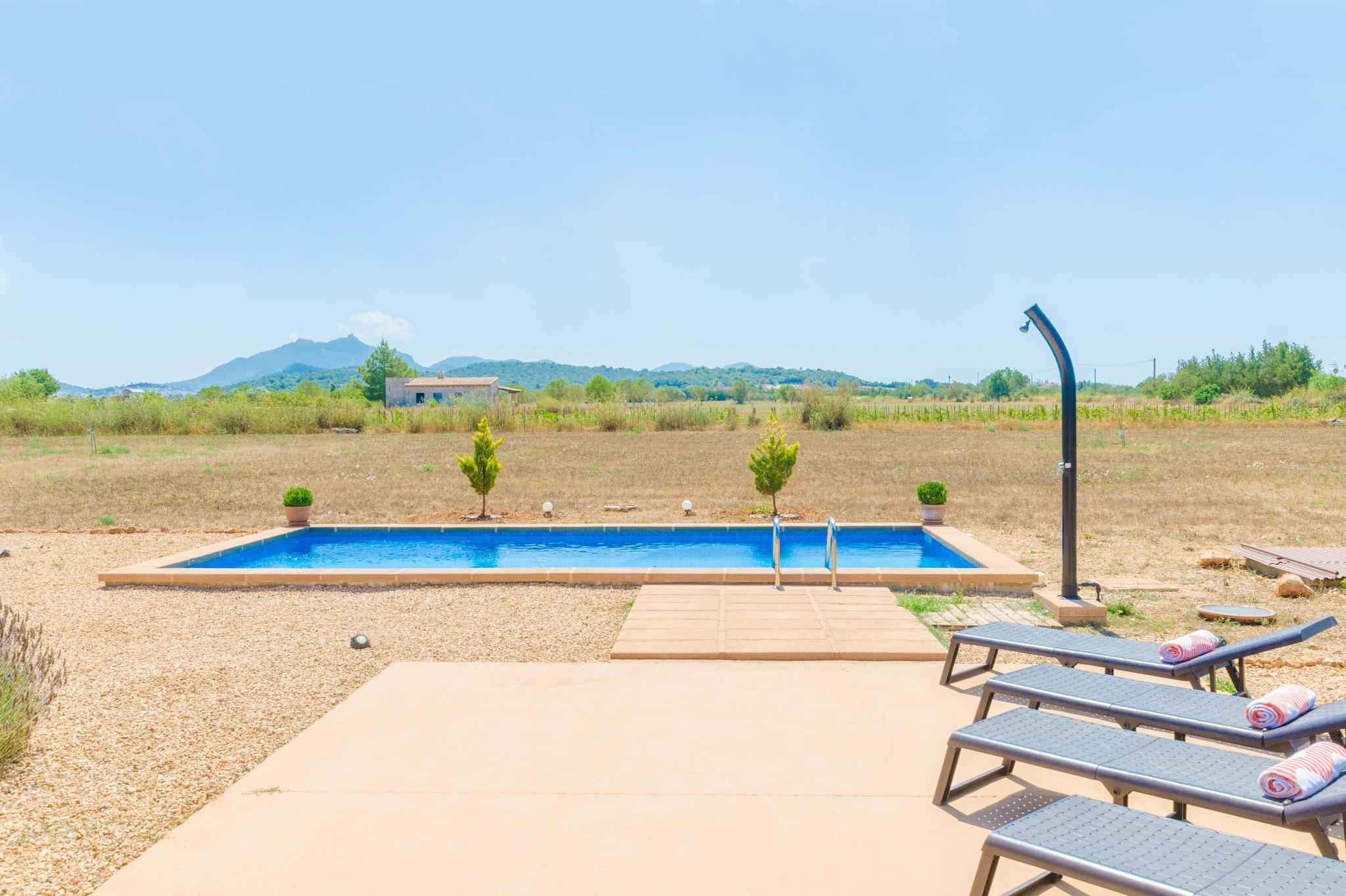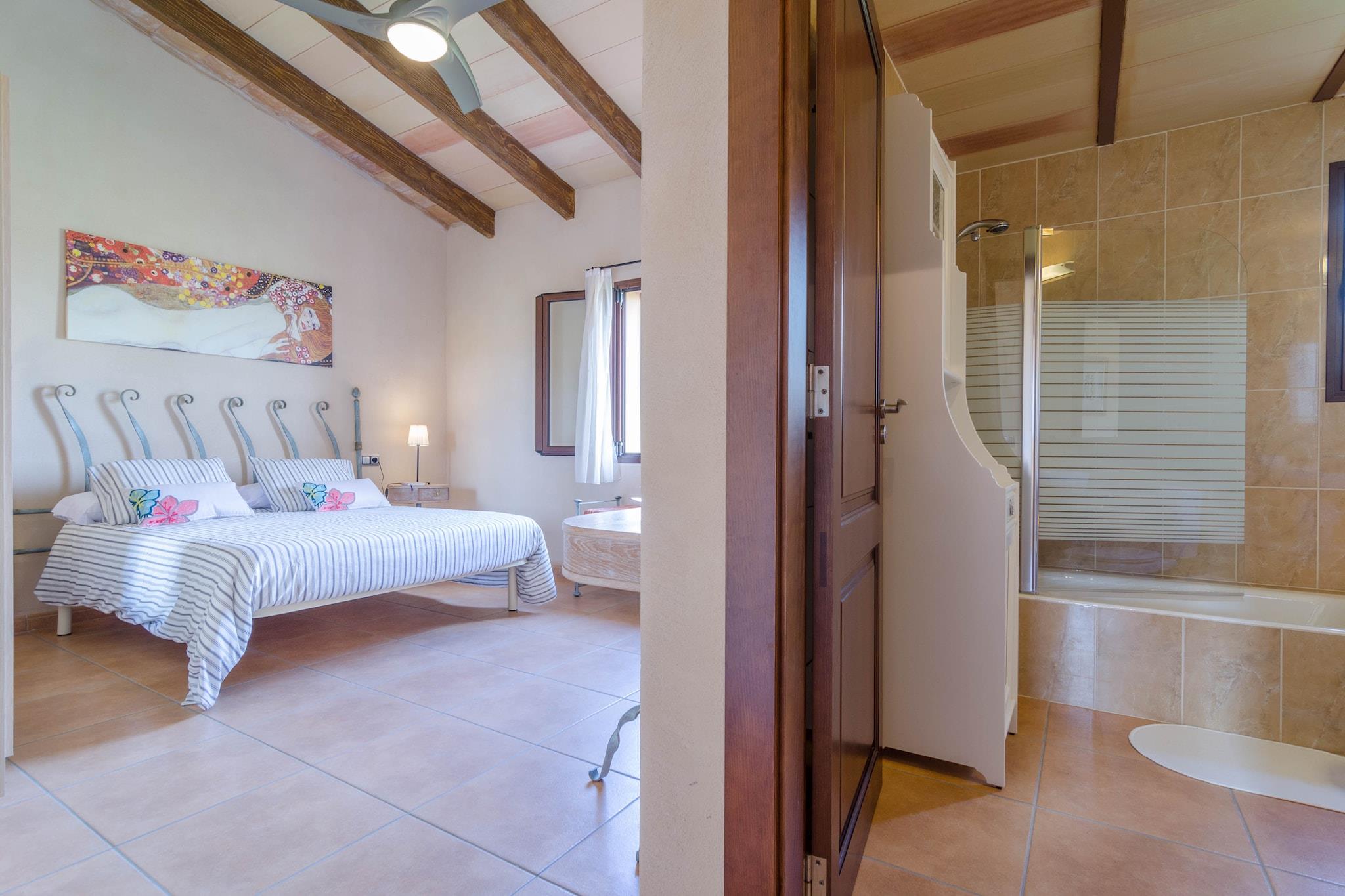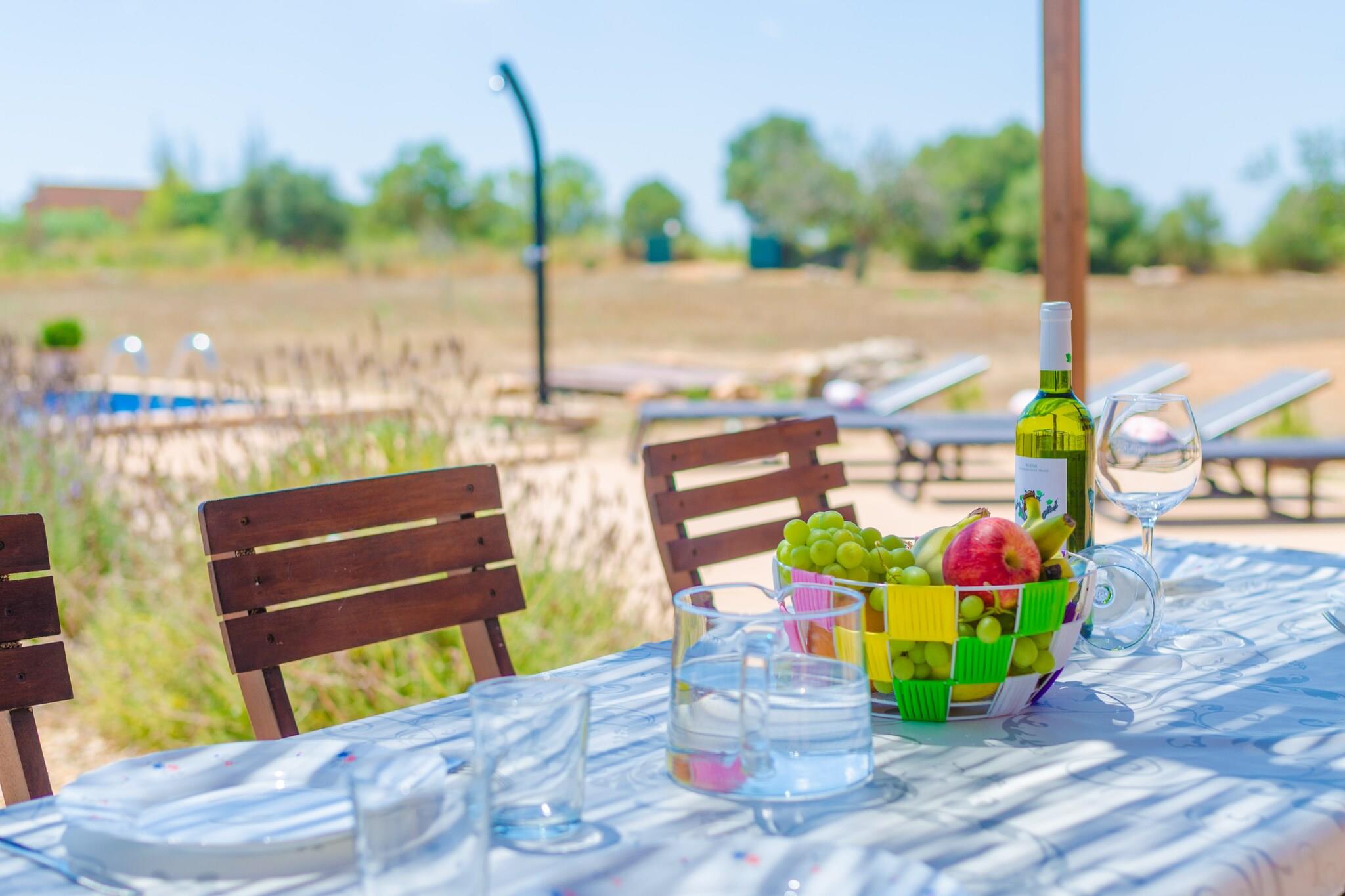 Onze gasten kunnen afkoelen in het privé chloorzwembad, met afmetingen van 8,5 m x 4 m en een diepte van 1,3 m. Omringd door een gebied met grind en zeer goed onderhouden gras, met vier hangmatten en een buitendouche, is het een prachtige plek om van de Mallorcaanse zon te genieten. Het terras wordt beschermd door een rieten luifel, waar u als koppel romantische momenten kunt doorbrengen terwijl u geniet van het heldere uitzicht op het landschap. Als u graag buiten kookt, kunt u barbecueën onder de blauwe lucht. Deze charmante villa is vrijstaand, volledig omheind en privé. Binnen wacht u een ruime en lichte woon-eetkamer, waar u met de kinderen satelliettelevisie of een dvd kunt kijken en idyllische familiemomenten kunt doorbrengen terwijl een aangenaam vuur brandt in de houtkachel. In de volledig uitgeruste keuken met keramische kookplaat kunt u elk gerecht bereiden, naast een wasmachine, een strijkijzer en een strijkplank. Vanuit de keuken heeft u direct toegang tot de tuin, waar u op elk moment even een pauze kunt nemen tijdens het koken. Deze mooie gelijkvloerse villa is ideaal voor zes gasten en beschikt over twee slaapkamers met een tweepersoonsbed en één met een uitschuifbed en een eenpersoonsbed, allemaal met plafondventilatoren en kledingkasten. Een slaapkamer met een tweepersoonsbed heeft een en-suite badkamer met ligbad en een tweede badkamer met douche bedient de rest van het huis. Voor koelere dagen zijn er twee radiatoren en op aanvraag zijn er meer beschikbaar. De eigenaren hebben veel aandacht besteed aan het milieu en hebben zonnepanelen geplaatst. Gelegen op het platteland, tussen de urbanisaties Son Mesquida en Son Valls, ligt dit prachtige pand in de buurt van Felanitx. In de stad zijn er supermarkten, bars en alles wat u nodig heeft voor uw verblijf. Eind augustus vinden de Patroonsheiligenfeesten van Felanitx plaats, waar je de beroemde Cavallets, een dansgroep, kunt zien. Om even te pauzeren is het raadzaam om naar het heiligdom van Sant Salvador te gaan, bereikbaar met de auto of fiets, met panoramisch uitzicht over het zuidoosten en centrum van het eiland. Een paar kilometer scheiden het van de kust en vele droomstranden, waaronder Cala Marcal, Cala Ferrera en Cala Mondragó, tegelijkertijd een natuurpark met wandelpaden. Het vissersdorp Portocolom is een magische plek, met kleurrijke huizen aan de kust en kleine traditionele boten, de zogenaamde llaüts. Hier kunt u zeevruchten en vis van zeer goede kwaliteit eten. Als je door de steegjes loopt, een kopje koffie drinkt in een klein barretje en met de zeebries op je neus, voel je de authentieke smaak van Mallorca. Voor degenen die willen dansen en 's avonds iets willen drinken, is Cala D'Or, vooral in de zomer, een levendige plek met eindeloze vrijetijdsmogelijkheden. Voor eventuele extra kosten kunt u contact opnemen met de adverteerder. Wij accepteren geen huisdieren. Het vieren van evenementen is niet toegestaan. Er is buiten parkeergelegenheid voor 3 auto's. Afstanden Strand: 18 km - Portocolom Luchthaven: 44,4 km - Son Sant Joan Golfbaan: 16,1 km - Vall d'Or Golf Stad: 3,3 km - Felanitx Treinstation: 17,7 km - Manacor Bushalte: 3,8 km - Felanitx Veerboot: 52,3 km - Haven van Palma Ziekenhuis: 18 km - Manacor-ziekenhuis Toeristenvergunning: ETV/6496Bij de ingang dient u de Ecotasa (toeristenbelasting van de Balearen) contant te betalen. Het bedrag varieert tussen EURO 0,55 / per nacht per persoon in het laagseizoen en EURO 2,2 / per nacht per persoon in het hoogseizoen. Vanaf de negende dag wordt het met de helft verminderd. Personen onder de 16 jaar uitgesloten. Bij de ingang dient u de borg rechtstreeks aan de eigenaar te betalen.