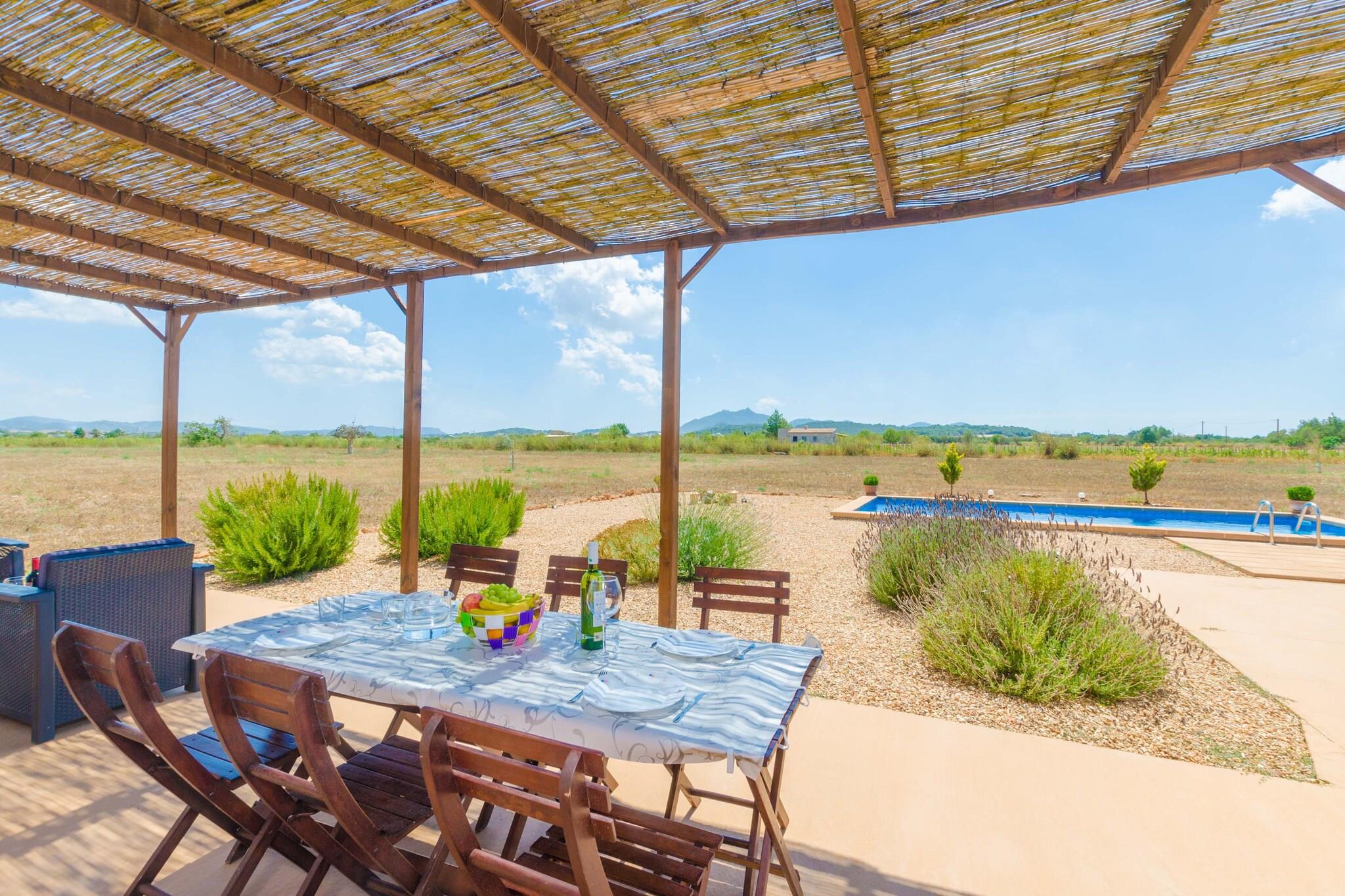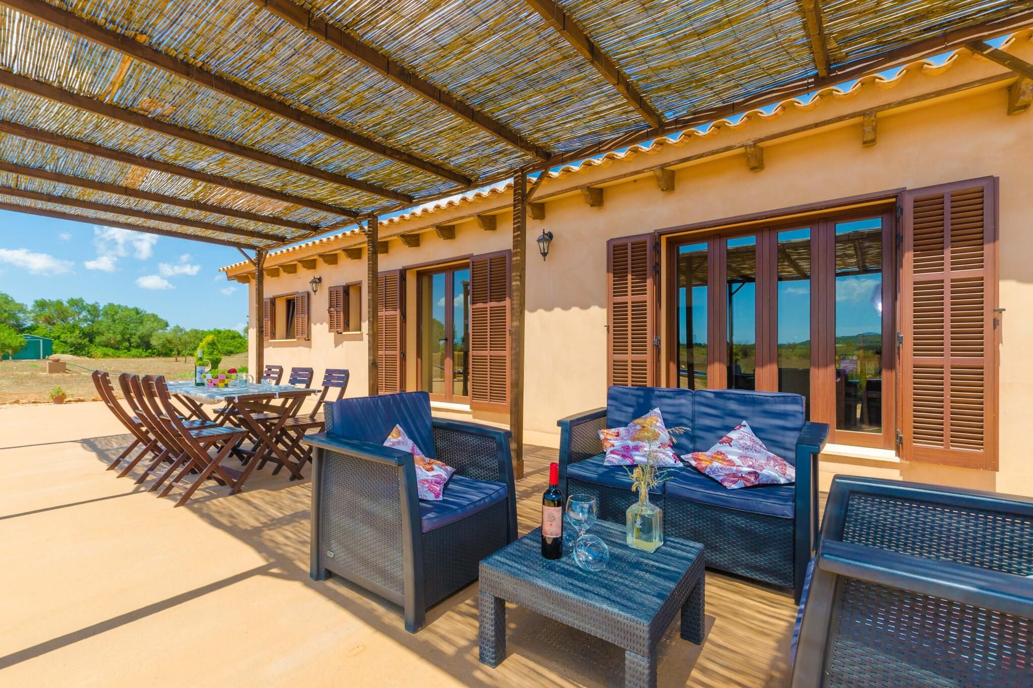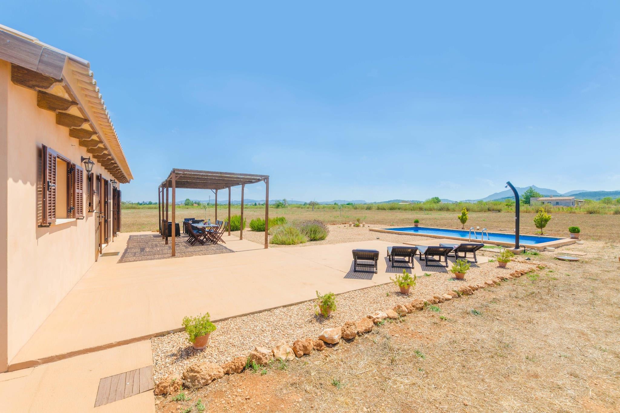 Onze gasten kunnen afkoelen in het privé chloorzwembad, met afmetingen van 8,5 m x 4 m en een diepte van 1,3 m. Omringd door een gebied met grind en zeer goed onderhouden gras, met vier hangmatten en een buitendouche, is het een prachtige plek om van de Mallorcaanse zon te genieten. Het terras wordt beschermd door een rieten luifel, waar u als koppel romantische momenten kunt doorbrengen terwijl u geniet van het heldere uitzicht op het landschap. Als u graag buiten kookt, kunt u barbecueën onder de blauwe lucht. Deze charmante villa is vrijstaand, volledig omheind en privé. Binnen wacht u een ruime en lichte woon-eetkamer, waar u met de kinderen satelliettelevisie of een dvd kunt kijken en idyllische familiemomenten kunt doorbrengen terwijl een aangenaam vuur brandt in de houtkachel. In de volledig uitgeruste keuken met keramische kookplaat kunt u elk gerecht bereiden, naast een wasmachine, een strijkijzer en een strijkplank. Vanuit de keuken heeft u direct toegang tot de tuin, waar u op elk moment even een pauze kunt nemen tijdens het koken. Deze mooie gelijkvloerse villa is ideaal voor zes gasten en beschikt over twee slaapkamers met een tweepersoonsbed en één met een uitschuifbed en een eenpersoonsbed, allemaal met plafondventilatoren en kledingkasten. Een slaapkamer met een tweepersoonsbed heeft een en-suite badkamer met ligbad en een tweede badkamer met douche bedient de rest van het huis. Voor koelere dagen zijn er twee radiatoren en op aanvraag zijn er meer beschikbaar. De eigenaren hebben veel aandacht besteed aan het milieu en hebben zonnepanelen geplaatst. Gelegen op het platteland, tussen de urbanisaties Son Mesquida en Son Valls, ligt dit prachtige pand in de buurt van Felanitx. In de stad zijn er supermarkten, bars en alles wat u nodig heeft voor uw verblijf. Eind augustus vinden de Patroonsheiligenfeesten van Felanitx plaats, waar je de beroemde Cavallets, een dansgroep, kunt zien. Om even te pauzeren is het raadzaam om naar het heiligdom van Sant Salvador te gaan, bereikbaar met de auto of fiets, met panoramisch uitzicht over het zuidoosten en centrum van het eiland. Een paar kilometer scheiden het van de kust en vele droomstranden, waaronder Cala Marcal, Cala Ferrera en Cala Mondragó, tegelijkertijd een natuurpark met wandelpaden. Het vissersdorp Portocolom is een magische plek, met kleurrijke huizen aan de kust en kleine traditionele boten, de zogenaamde llaüts. Hier kunt u zeevruchten en vis van zeer goede kwaliteit eten. Als je door de steegjes loopt, een kopje koffie drinkt in een klein barretje en met de zeebries op je neus, voel je de authentieke smaak van Mallorca. Voor degenen die willen dansen en 's avonds iets willen drinken, is Cala D'Or, vooral in de zomer, een levendige plek met eindeloze vrijetijdsmogelijkheden. Voor eventuele extra kosten kunt u contact opnemen met de adverteerder. Wij accepteren geen huisdieren. Het vieren van evenementen is niet toegestaan. Er is buiten parkeergelegenheid voor 3 auto's. Afstanden Strand: 18 km - Portocolom Luchthaven: 44,4 km - Son Sant Joan Golfbaan: 16,1 km - Vall d'Or Golf Stad: 3,3 km - Felanitx Treinstation: 17,7 km - Manacor Bushalte: 3,8 km - Felanitx Veerboot: 52,3 km - Haven van Palma Ziekenhuis: 18 km - Manacor-ziekenhuis Toeristenvergunning: ETV/6496Bij de ingang dient u de Ecotasa (toeristenbelasting van de Balearen) contant te betalen. Het bedrag varieert tussen EURO 0,55 / per nacht per persoon in het laagseizoen en EURO 2,2 / per nacht per persoon in het hoogseizoen. Vanaf de negende dag wordt het met de helft verminderd. Personen onder de 16 jaar uitgesloten. Bij de ingang dient u de borg rechtstreeks aan de eigenaar te betalen.